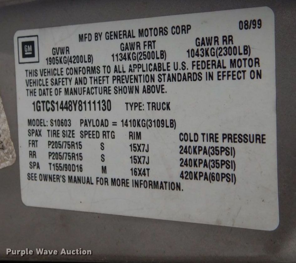 Purple Wave is selling a used Compact Pickup or Van in Minnesota. This item is a 2000 GMC Sonoma SLS pickup truck with the following: Miles: 288,772 on odometer, VIN: 1GTCS1448Y8111130