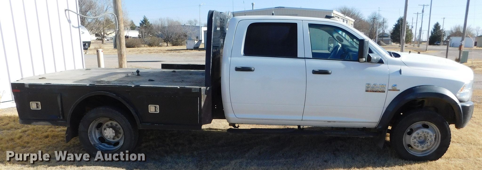 Purple Wave is selling a used Flat Bed Truck in Kansas. This item is a 2013 Dodge Ram 5500 Crew Cab flatbed truck with the following: Miles: 225,043 on odometer, VIN: 3C7WRNELXDG521683