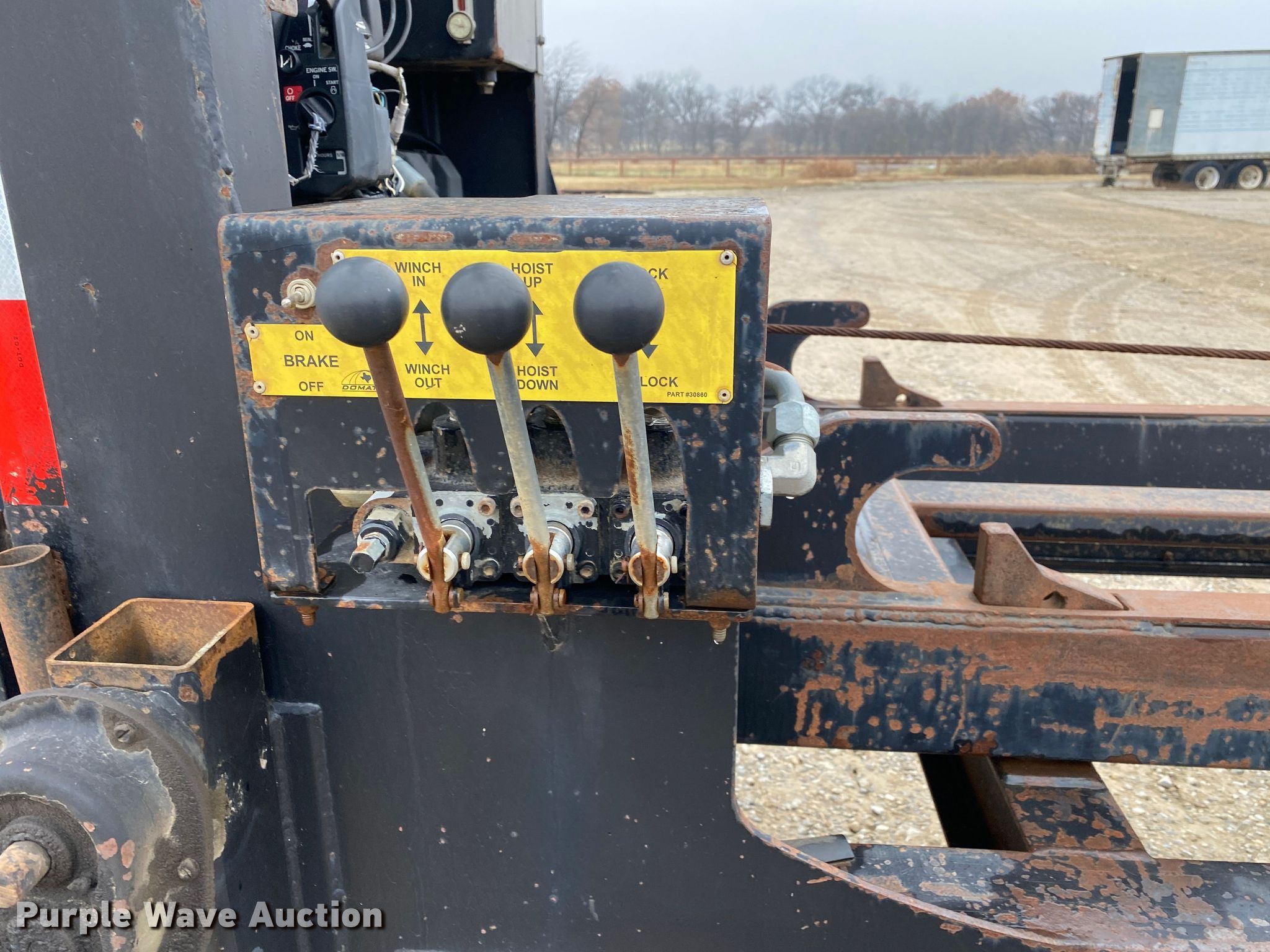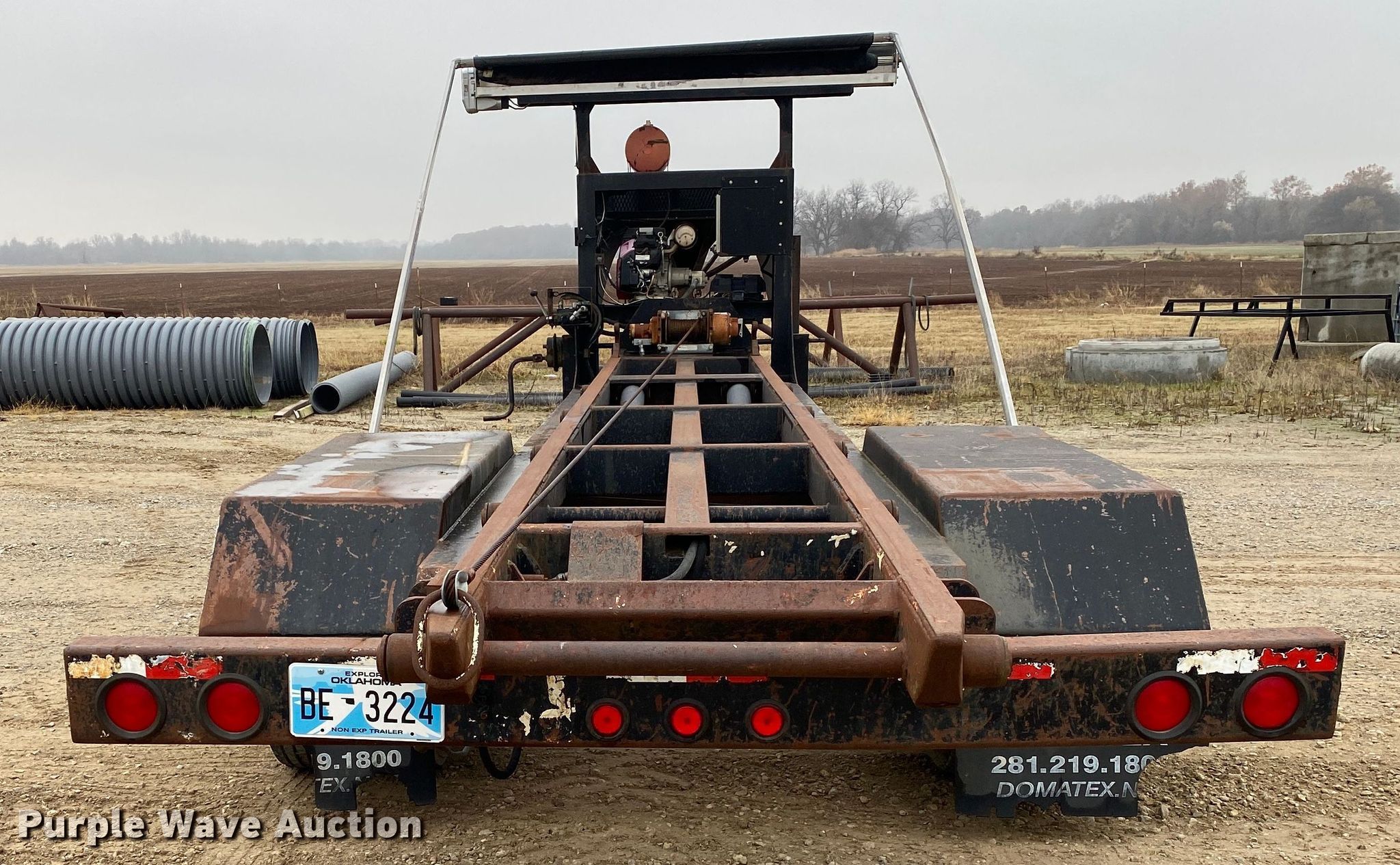 2011 Domatex GN-20 roll-off container trailer. VIN: 1D9GR3420BH443220. Dimensions Overall: 34' L x 99" W, Deck: 25' L x 51" W. Features Deck type: Steel, Self contained hydraulics, Winch, Roll tarp, Honda GX690 gas engine Cylinders: 2, Displacement: 688 cc. Chassis Hitch: Gooseneck, Landing gear: Dual, Two speed, Suspension: Spring, Brakes: Electric, Axles: Tandem, GVWR: 27,100 lbs. Tires Steel wheels, Size: ST235/85R16. Oklahoma title. Title distribution may be delayed up to 14 days from verification of funds. Yocham Trucking, Inc.. 19257 Oklahoma 72. Haskell, OK 74436