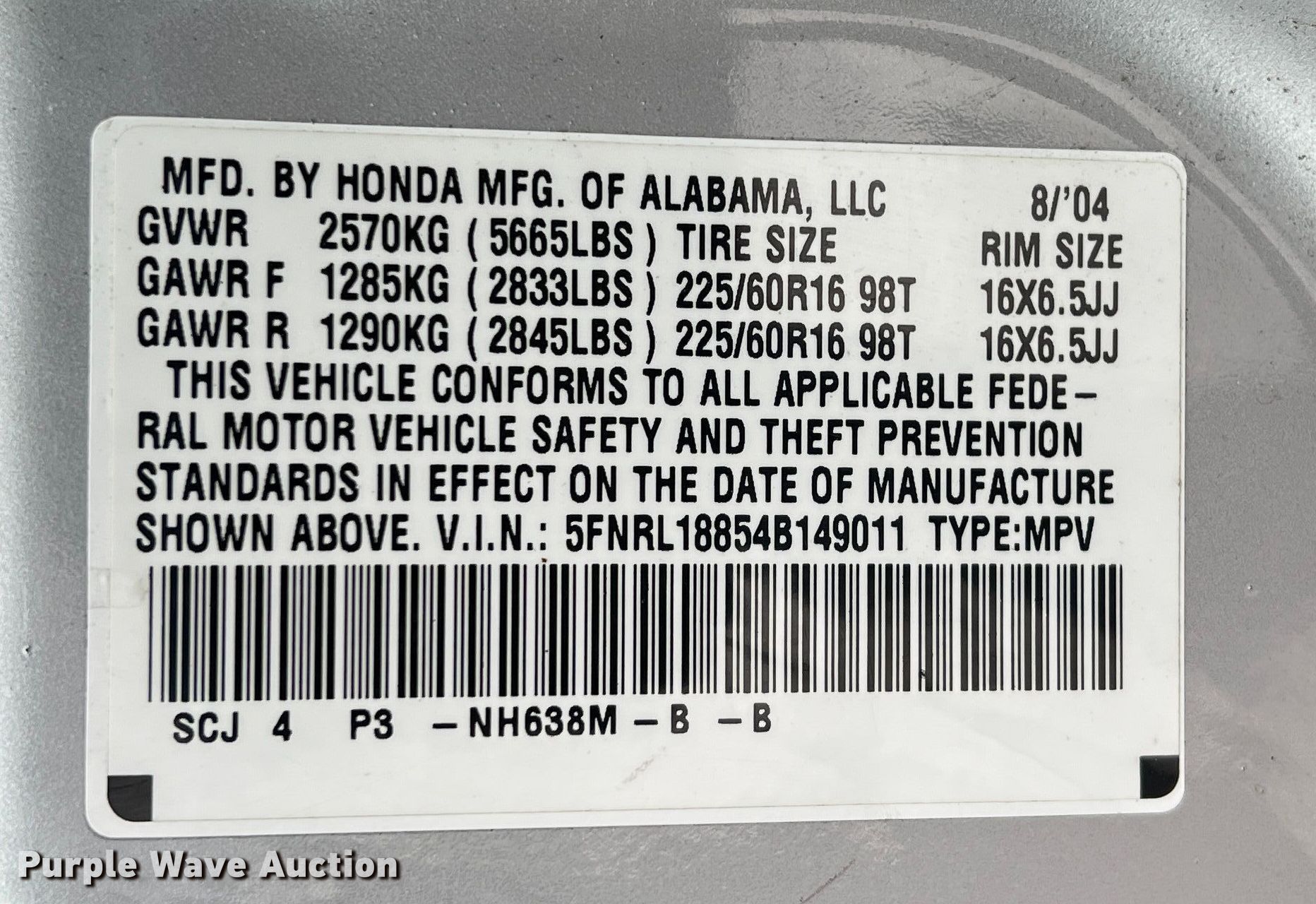 Purple Wave is selling a used Passenger Vehicle in Texas. This item is a 2004 Honda Odyssey van with the following: Miles: 213,655 on odometer, VIN: 5FNRL18854B149011