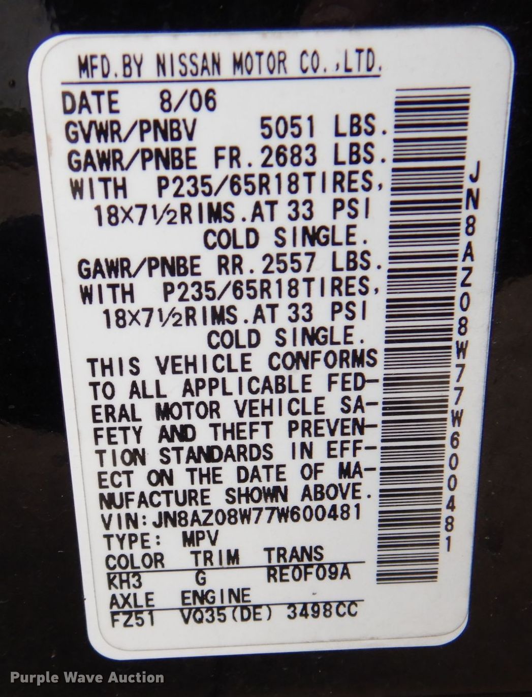 Take a look at this used 2007 Nissan Murano SL SUV being sold on December 28th, 2022 in the SOLD! December 28 Vehicles and Equipment Auction made by Nissan. Take a look at all of the item information below or take a look at similar auctions for Passenger Vehicles.