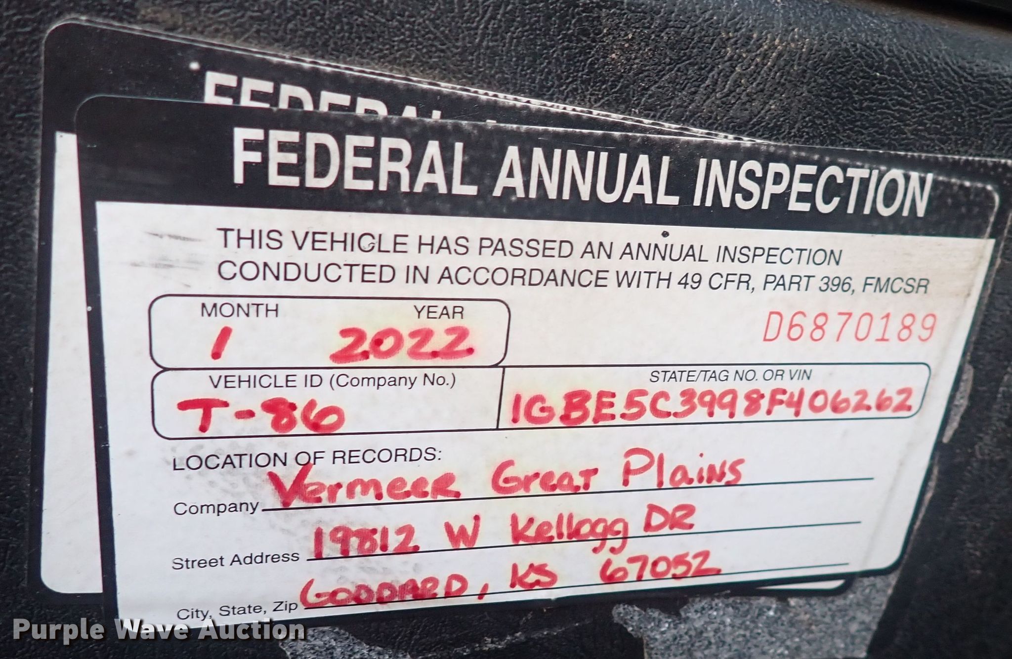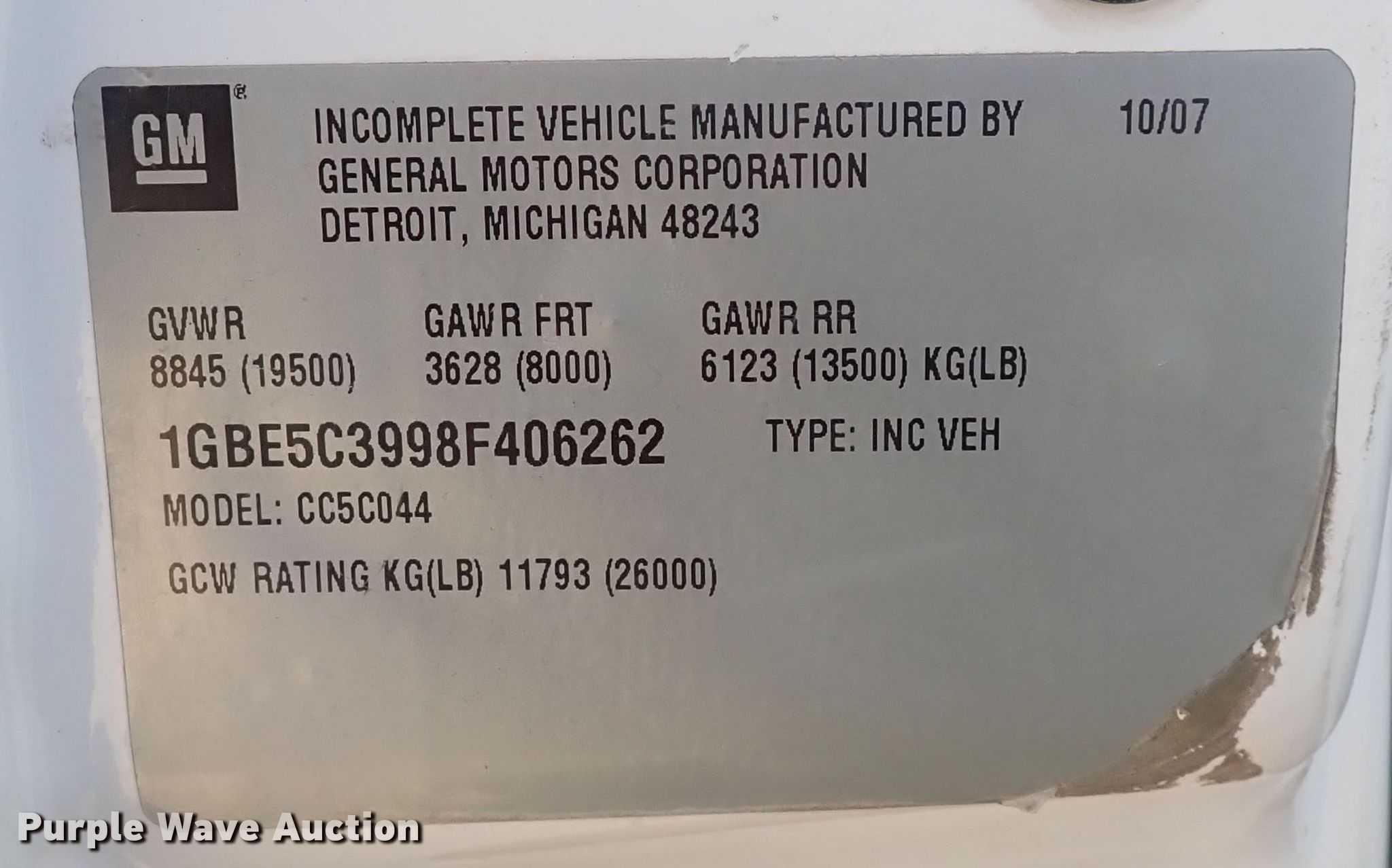 - VIN: 1GBE5C3998F406262