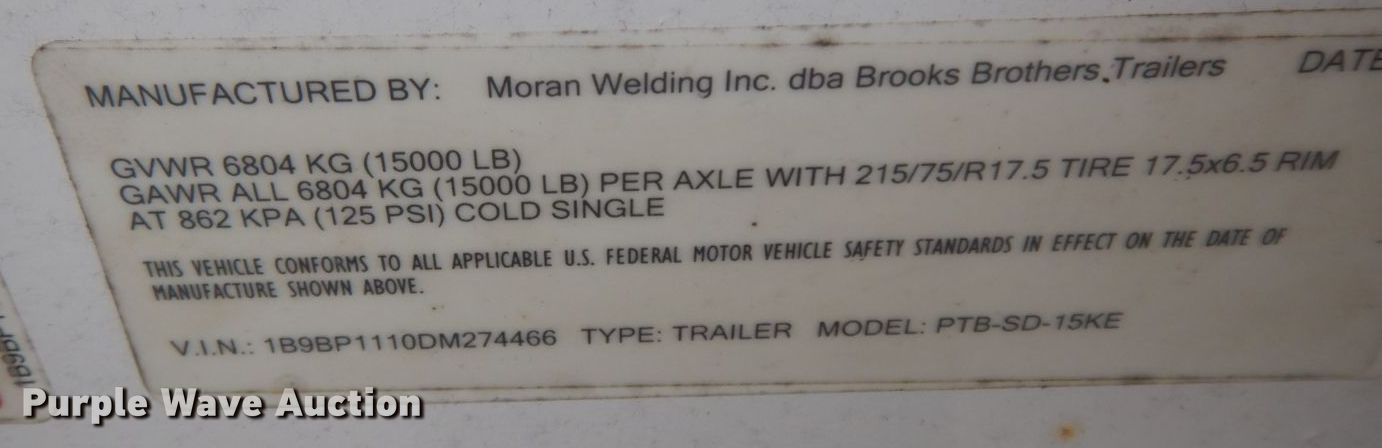 Purple Wave is selling a used Trailer Other in Oklahoma. This item is a 2013 Brooks Brothers pole trailer with the following: VIN: 1B9BP1110DM274466