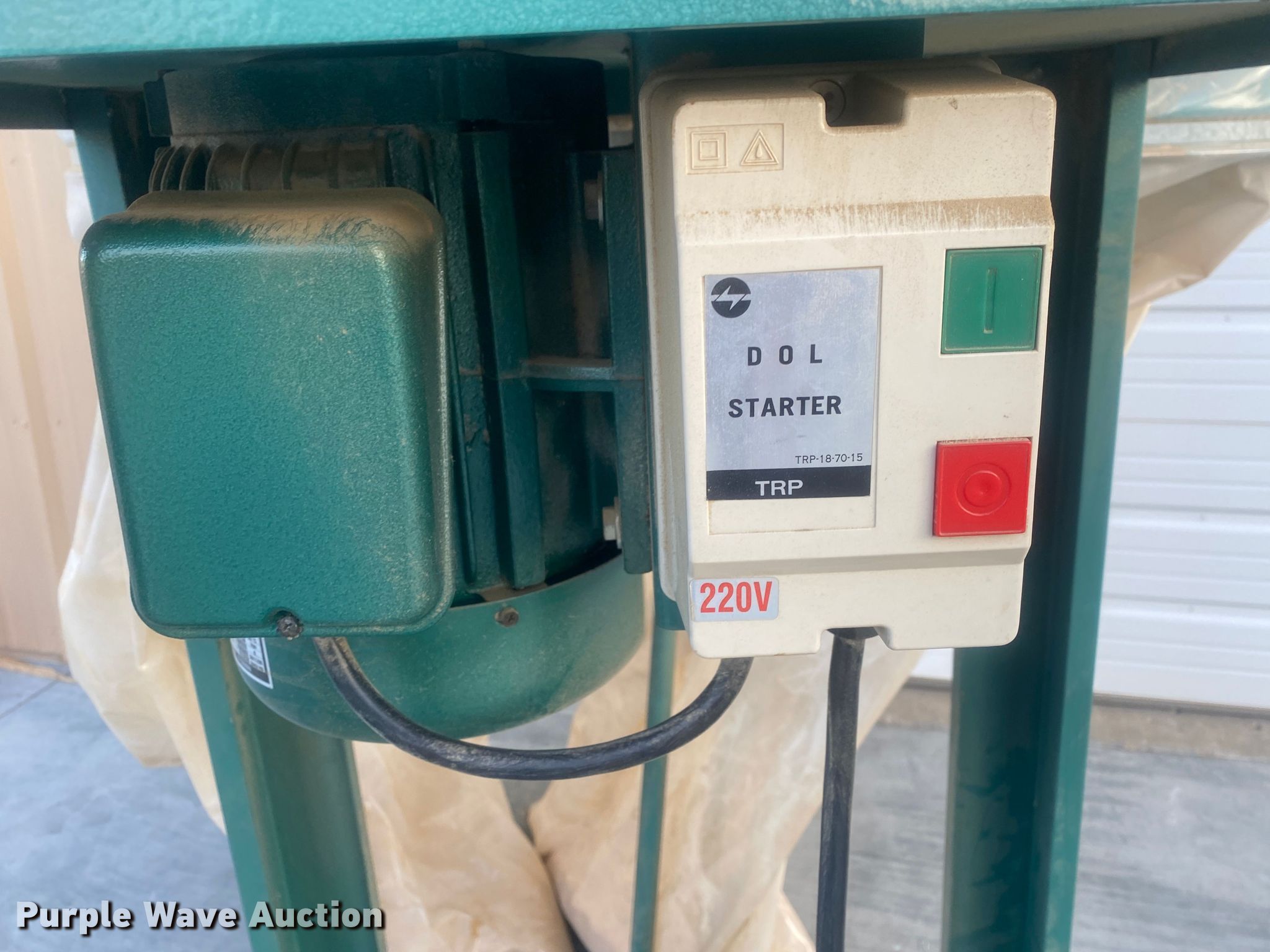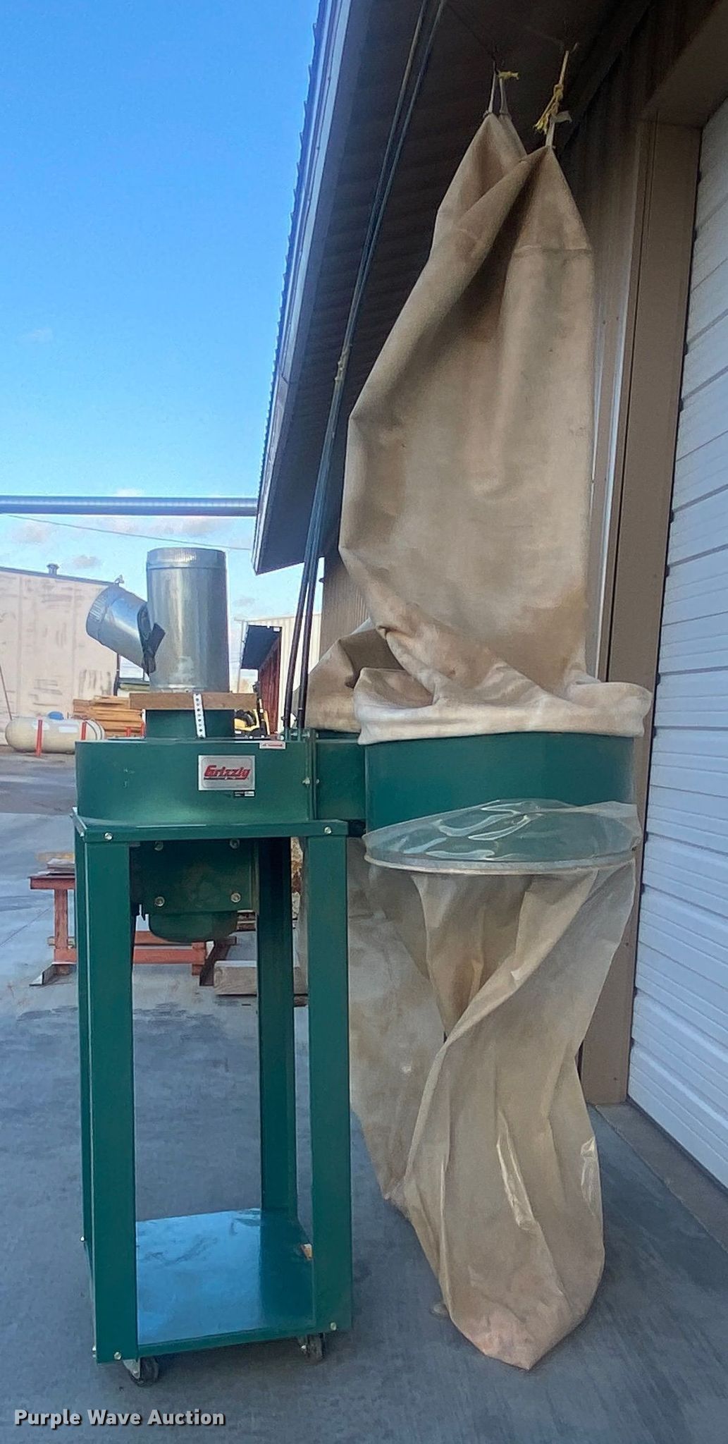 Purple Wave is selling a used Tools in Oklahoma. This item is a Grizzly Industrial Inc. dust collector with the following: Single phase, 220V, 60 Hz, 5 HP, Serial: 8854409