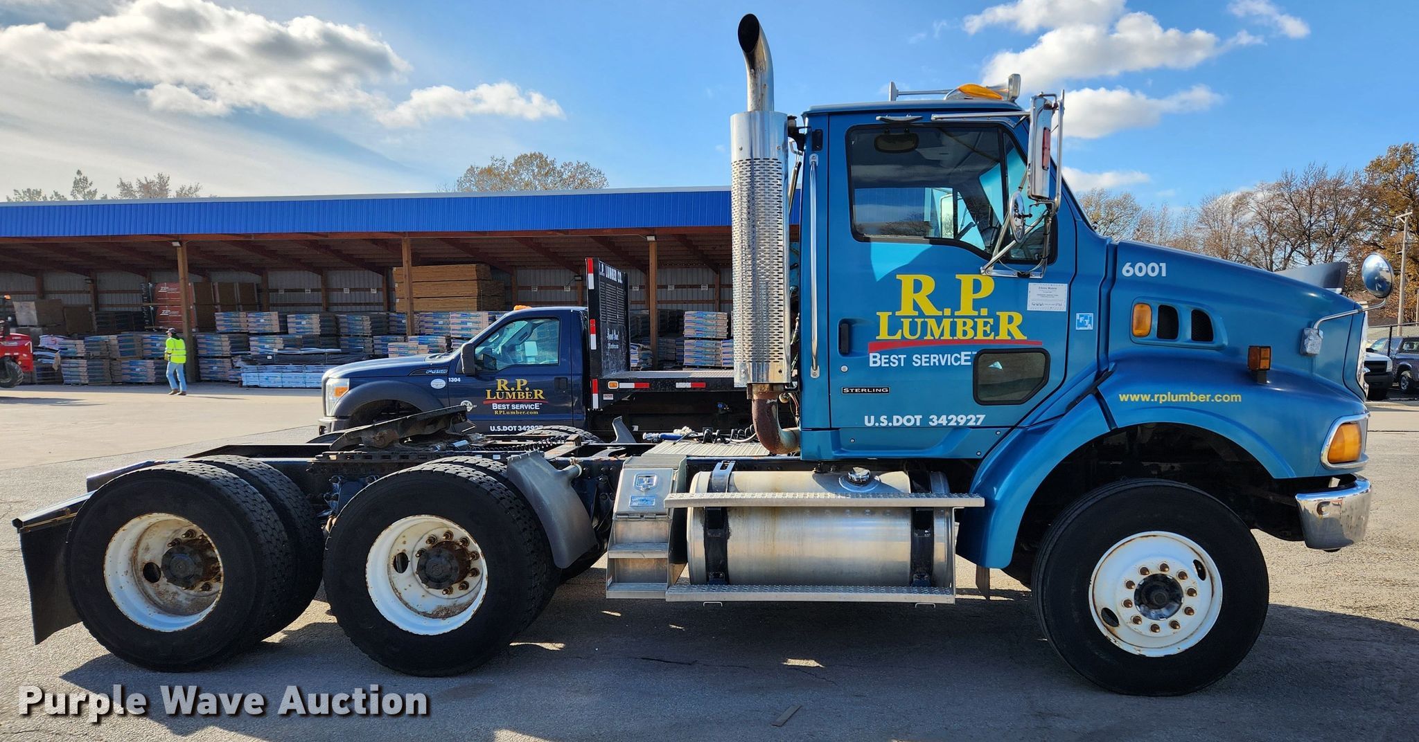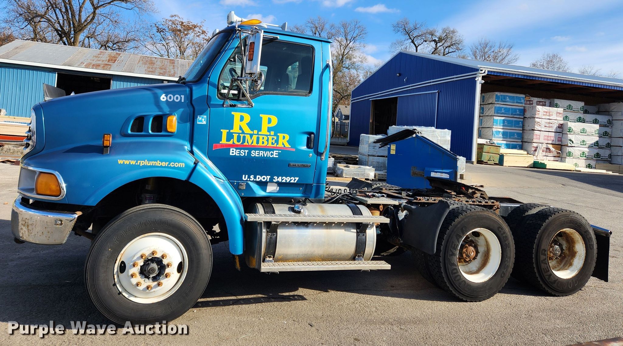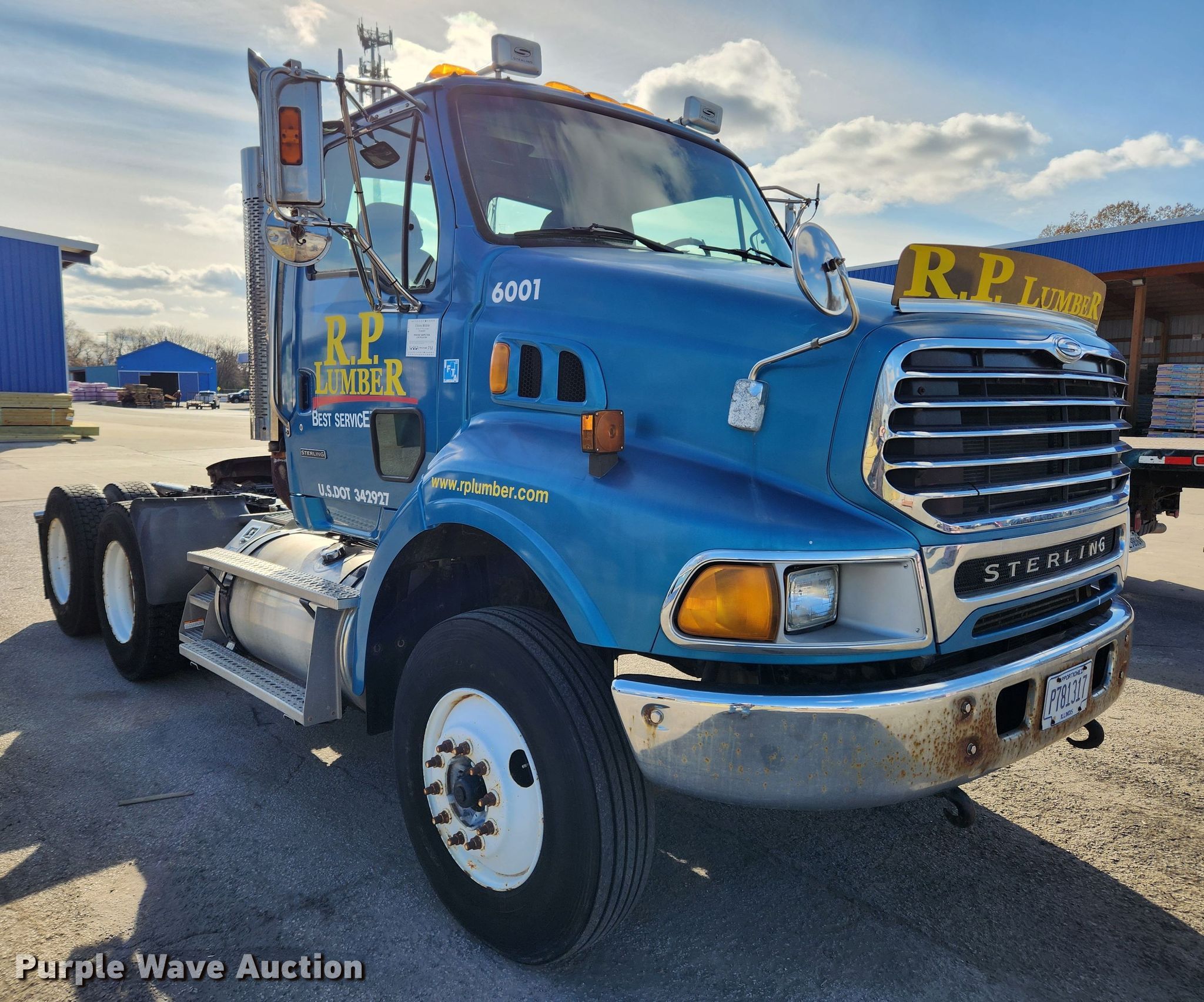 2005 Sterling LT9500 semi truck. Miles: 11,167 on odometer, Hours: 12,074 on meter, VIN: 2FWJAZCV75AN74880, Unit #: 6001. Engine Mercedes Benz, Displacement: 12.0L, Cylinders: 6, Fuel type: Diesel, Engine brake. Transmission Manual, Speed: 10. Chassis Axles: Tandem, Differential lock: Inter-axle, Suspension: Air, Brakes: Air, Truck chassis: 13' 6", GVWR: 52,350 lbs FAWR: 12,350 lbs, IAWR: 20,000 lbs, RAWR: 20,000 lbs. Interior AC, Heat, Heated mirrors, Power windows, Power locks, Cruise control. Features Deck plate: Aluminum, Fifth wheel type: Air operated, Sliding, Fuel tank: Dual. Tires Size: 11R22.5. Illinois title. Title distribution may be delayed up to 14 days from verification of funds. Mileage has not been verified. Exempt will be written in the odometer disclosure on the title. R.P. Lumber Co., Inc.. Edwardsville, IL 62025