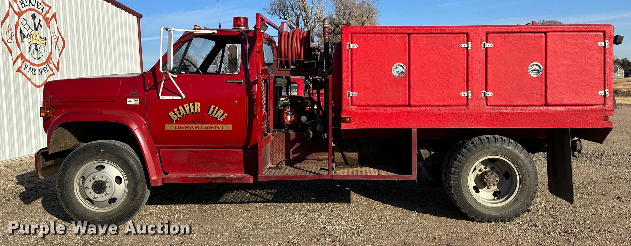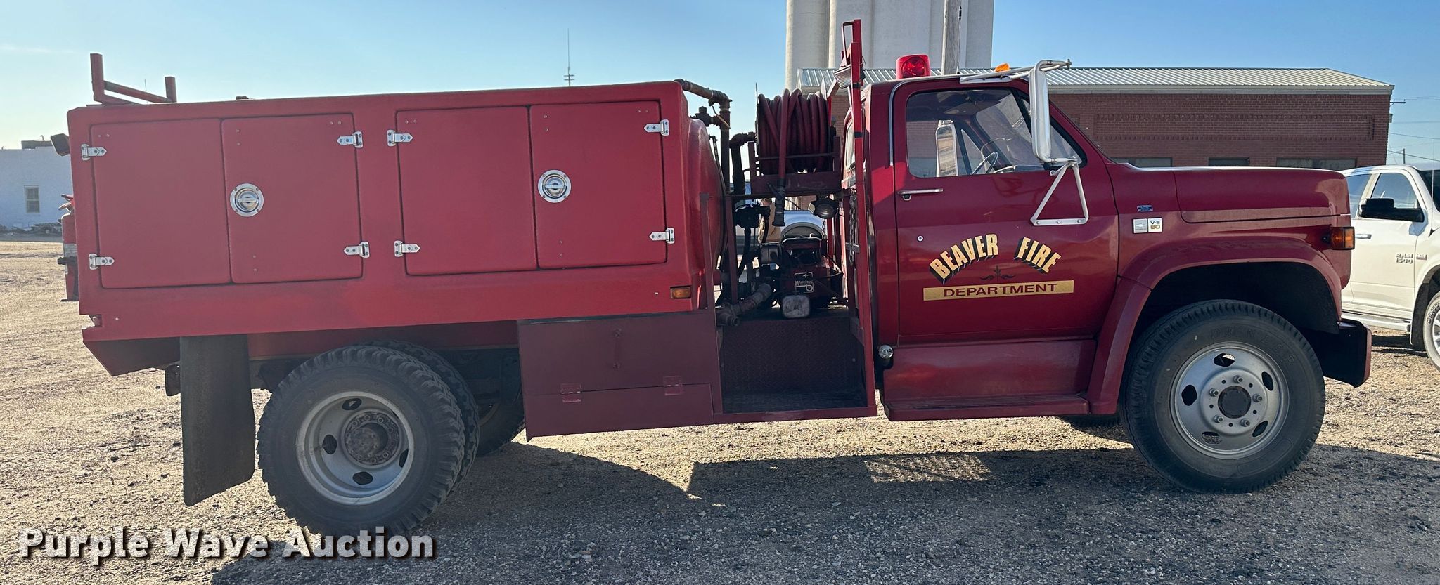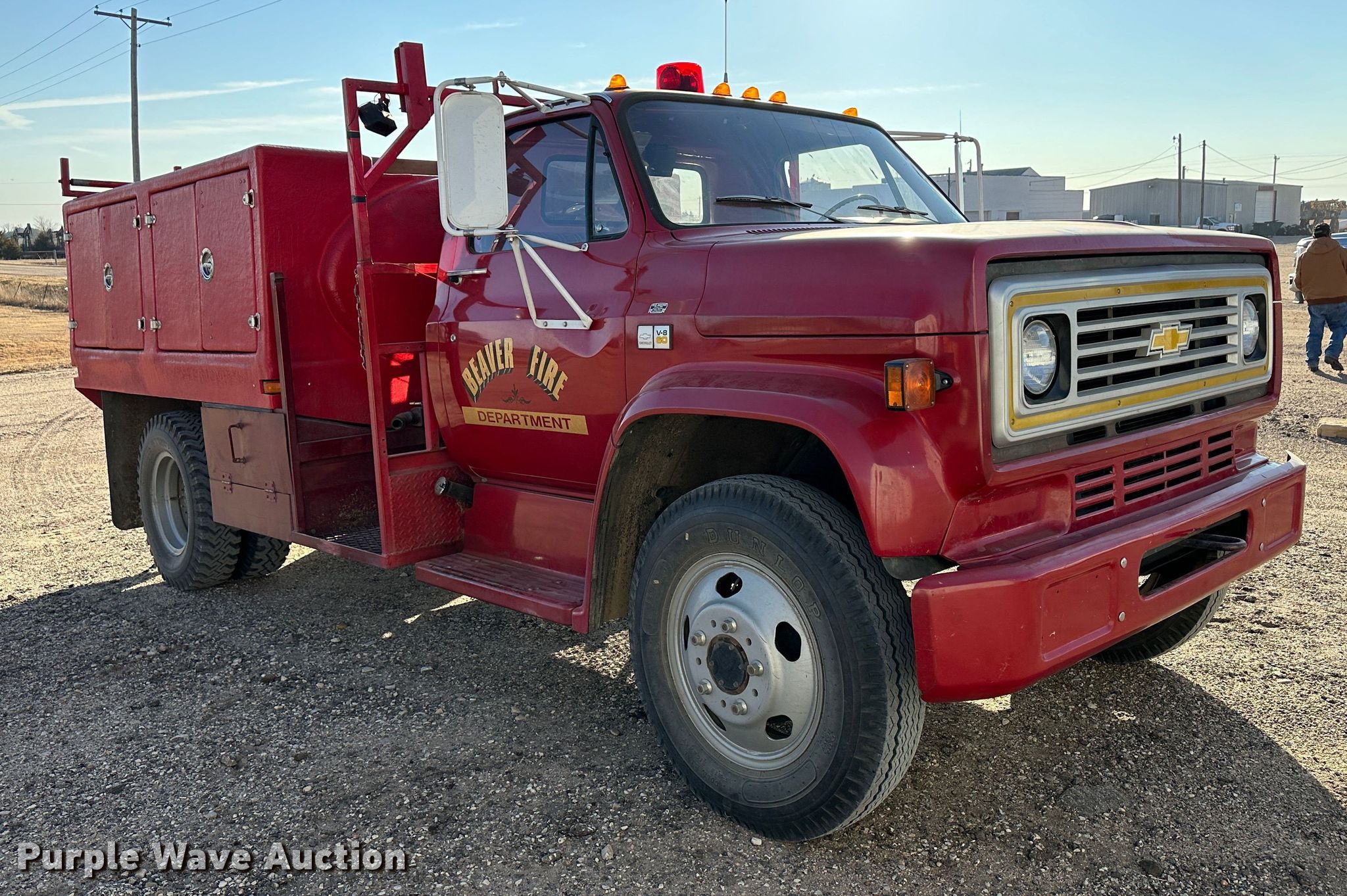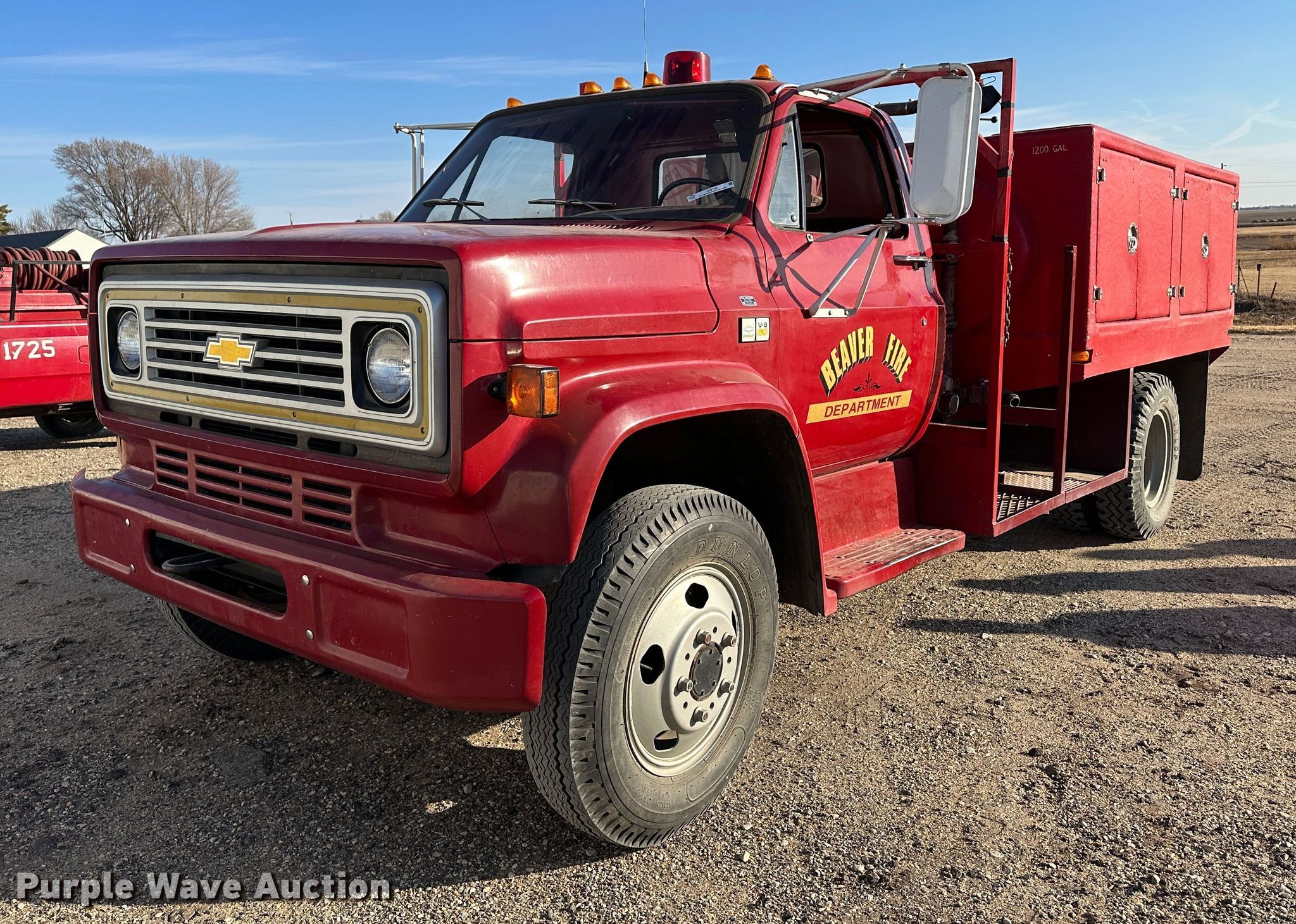 1982 Chevrolet C60 fire truck. Miles: 2,939 on odometer, VIN: 1GBE6D1A8CV125231. Engine Displacement: 350 C.I.D, Cylinders: 8, Fuel type: Gas. Transmission Manual, Speed: 4, plus 2. Chassis Axles: Single, Suspension: Spring, Brakes: Hydraulic, GVWR: 19,200 lbs. Interior Heat. Features Fire truck body Pump, Hose, 1200 gallon capacity. Tires Size: 8.25-20. Kansas title. Title distribution may be delayed up to 14 days from verification of funds. Beaver Volunteer Fire Department. Beaver , KS 67525
