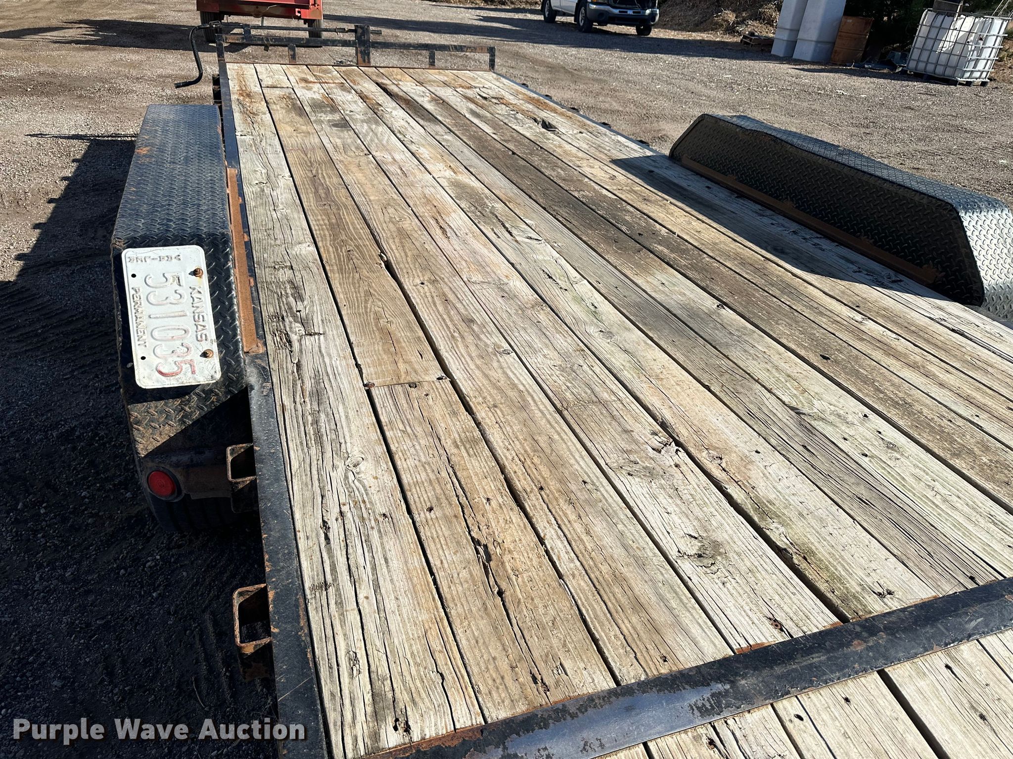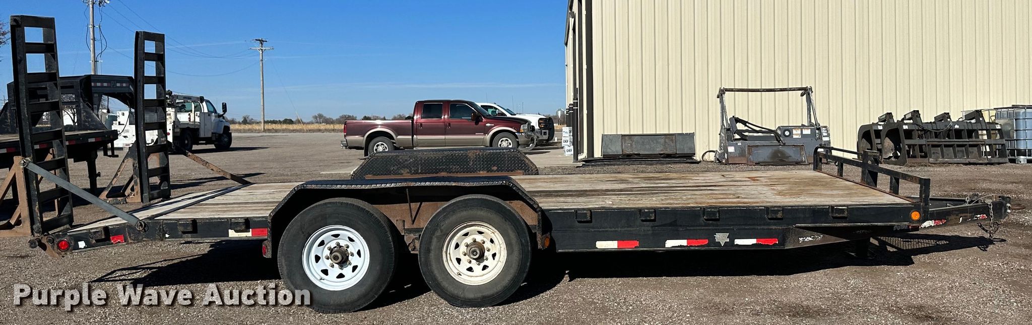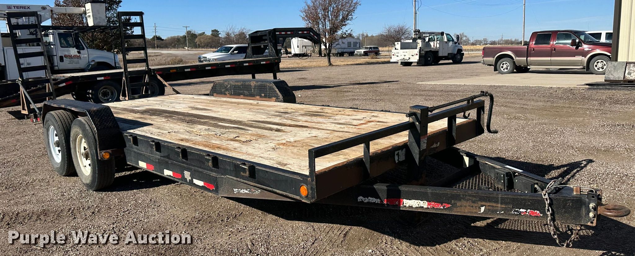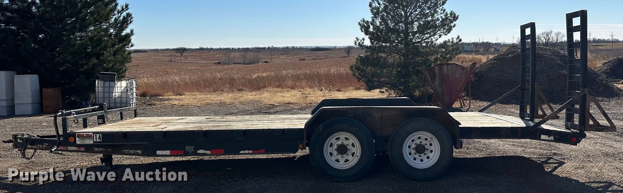 2012 PJ flatbed trailer. VIN: 4P5CC2025C1172126. Dimensions Overall: 26' 6" L x 102" W, Deck: 18' L x 83" W, Deck height: 24", Tail length: 2', Ramps: Manual Length: 5'. Features Deck type: Wood. Chassis Hitch: Pintle, Landing gear: Single, Suspension: Walking beam, Brakes: Electric, Axles: Tandem. Tires Steel wheels, Size: 235/80R16. Kansas title. Title distribution may be delayed up to 14 days from verification of funds. Solida Tree Service Inc. Phillipsburg, KS 67661
