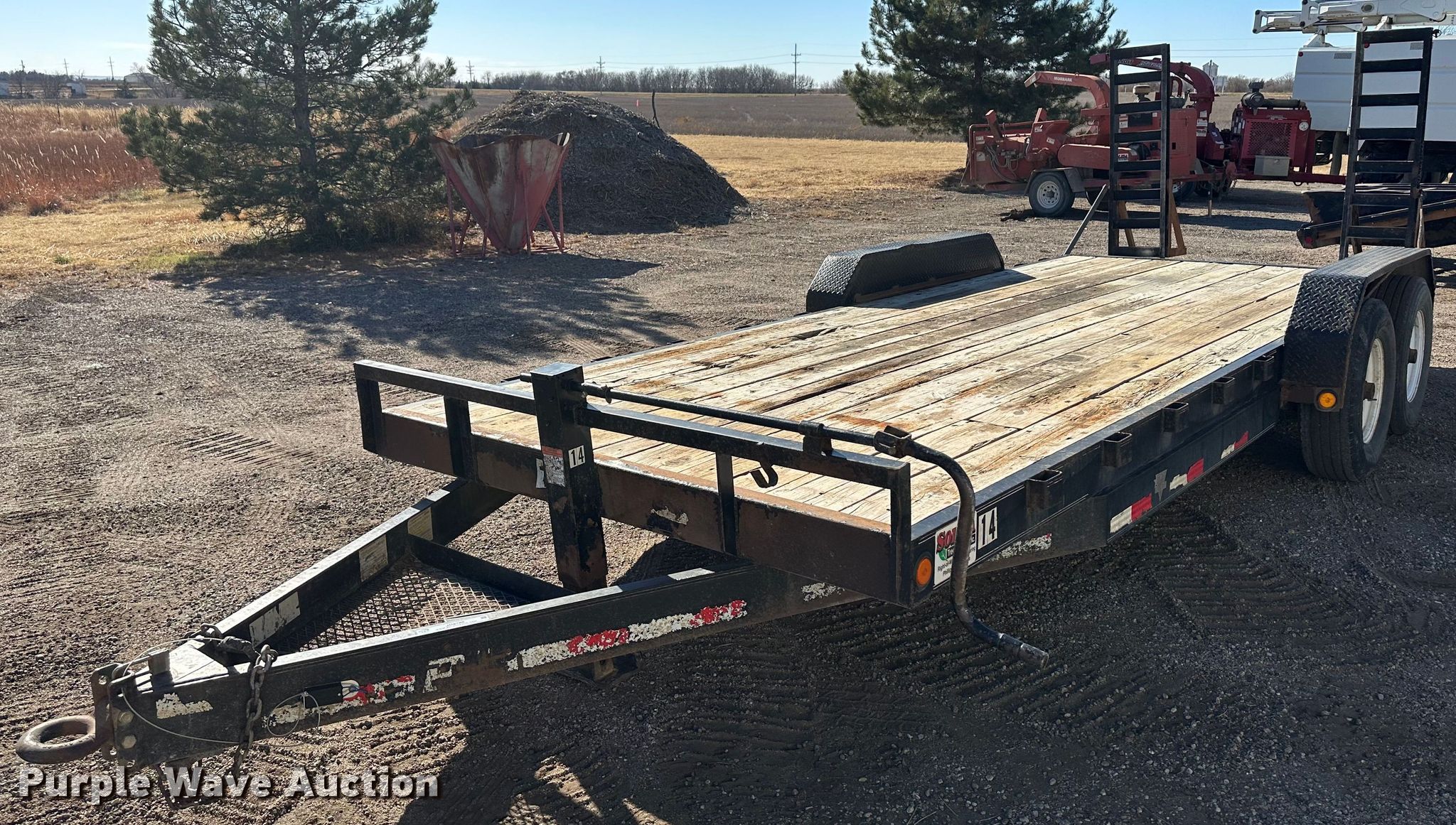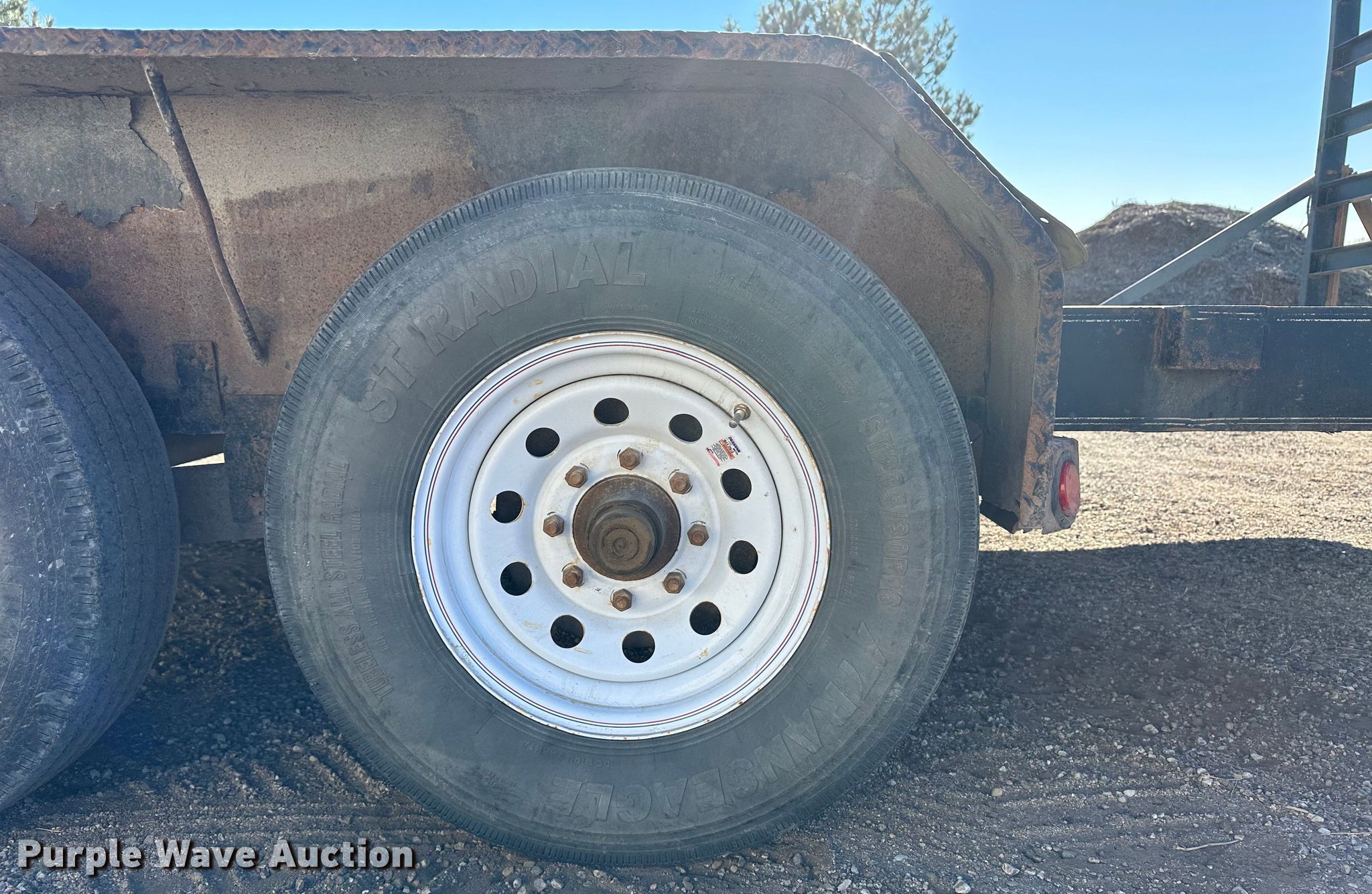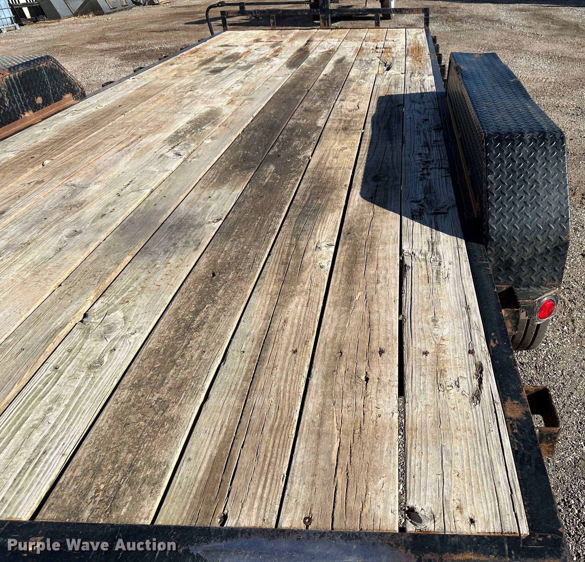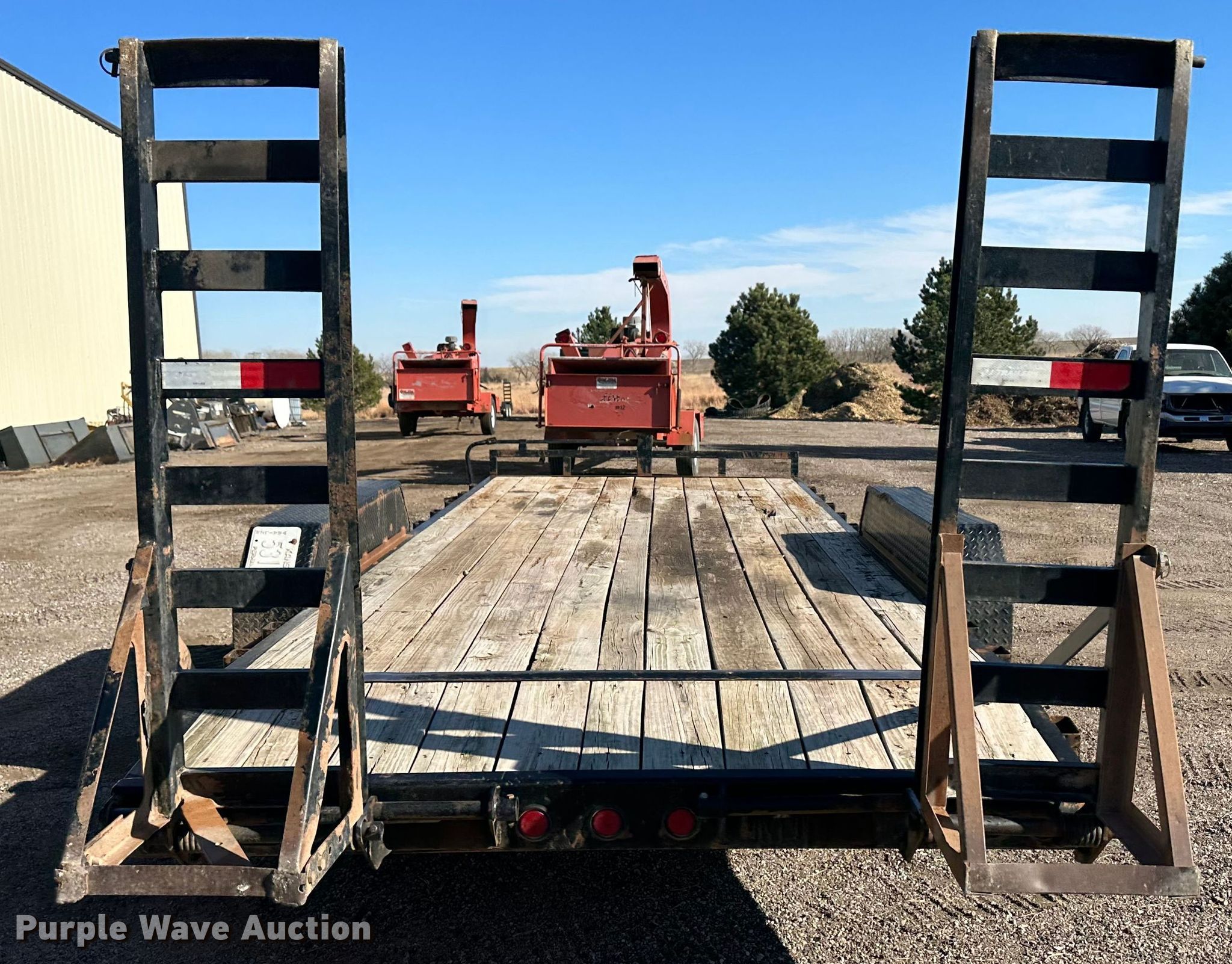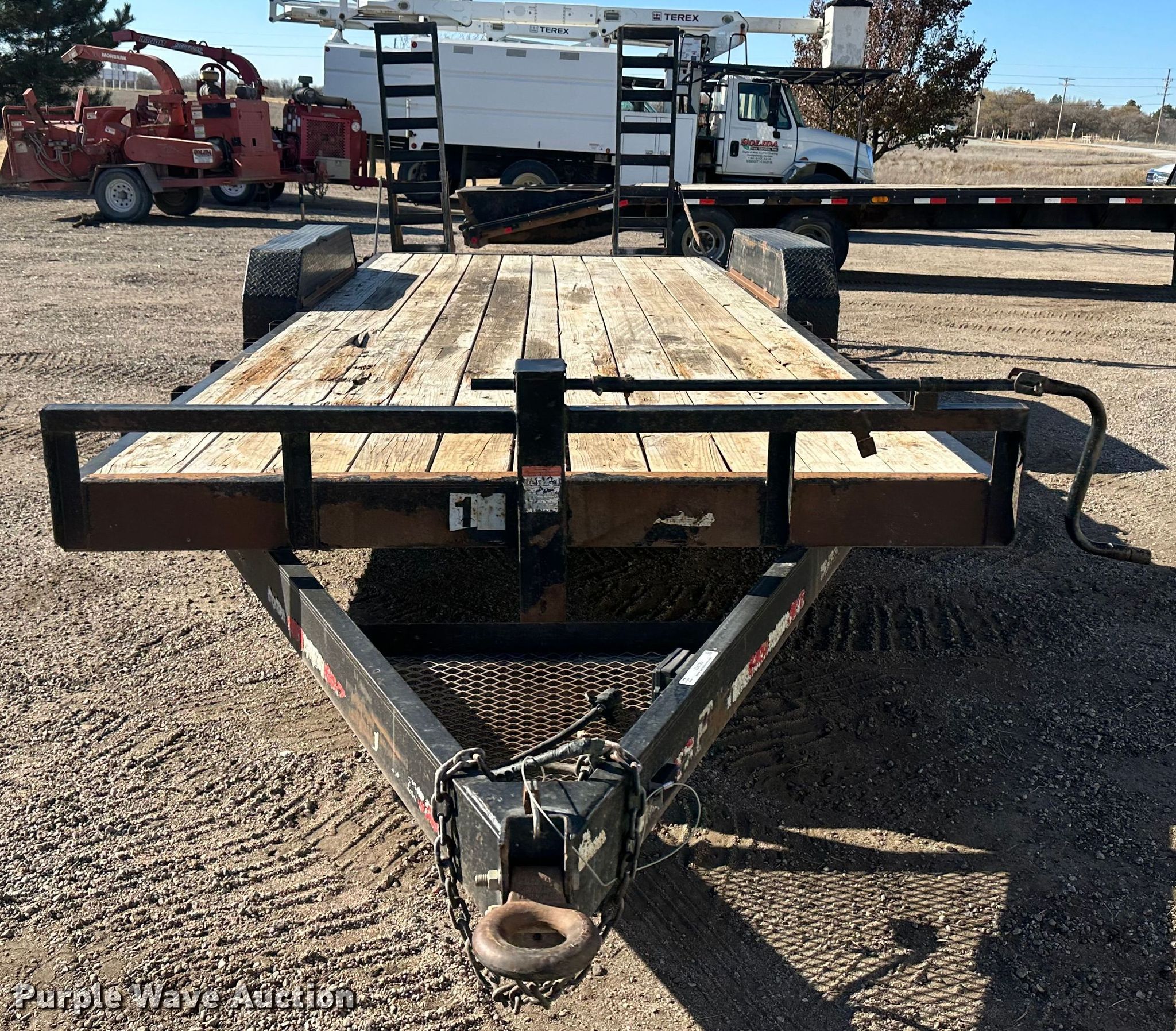 2012 PJ flatbed trailer. VIN: 4P5CC2025C1172126. Dimensions Overall: 26' 6" L x 102" W, Deck: 18' L x 83" W, Deck height: 24", Tail length: 2', Ramps: Manual Length: 5'. Features Deck type: Wood. Chassis Hitch: Pintle, Landing gear: Single, Suspension: Walking beam, Brakes: Electric, Axles: Tandem. Tires Steel wheels, Size: 235/80R16. Kansas title. Title distribution may be delayed up to 14 days from verification of funds. Solida Tree Service Inc. Phillipsburg, KS 67661