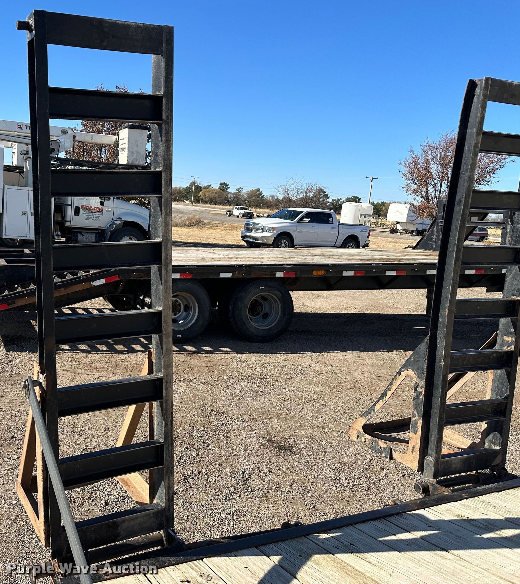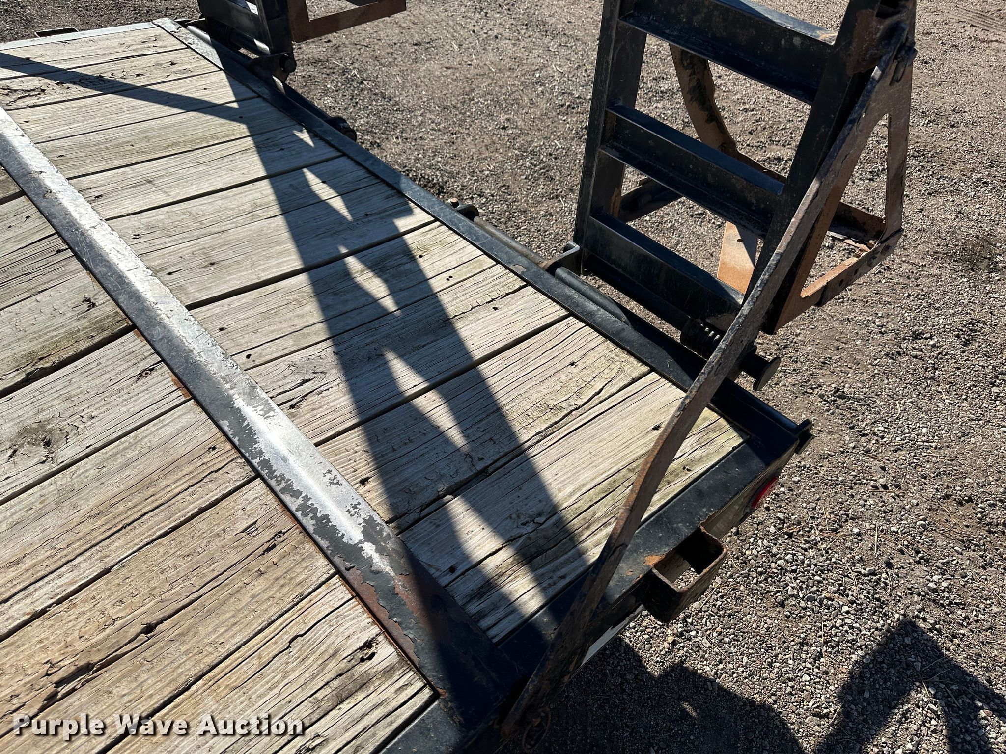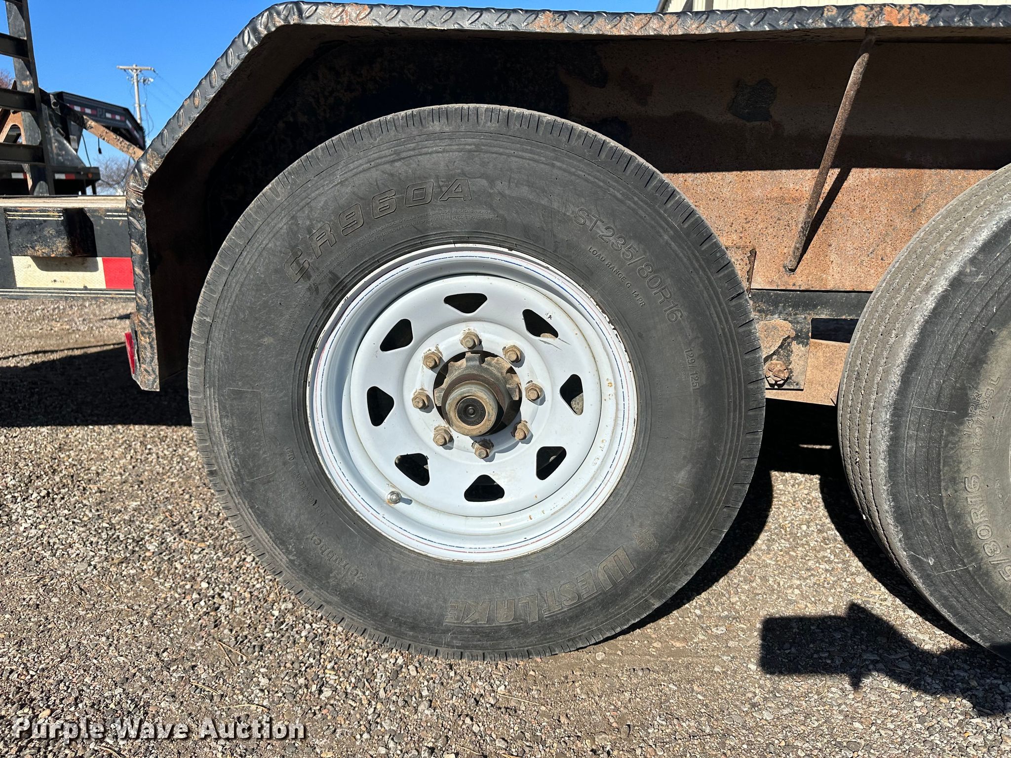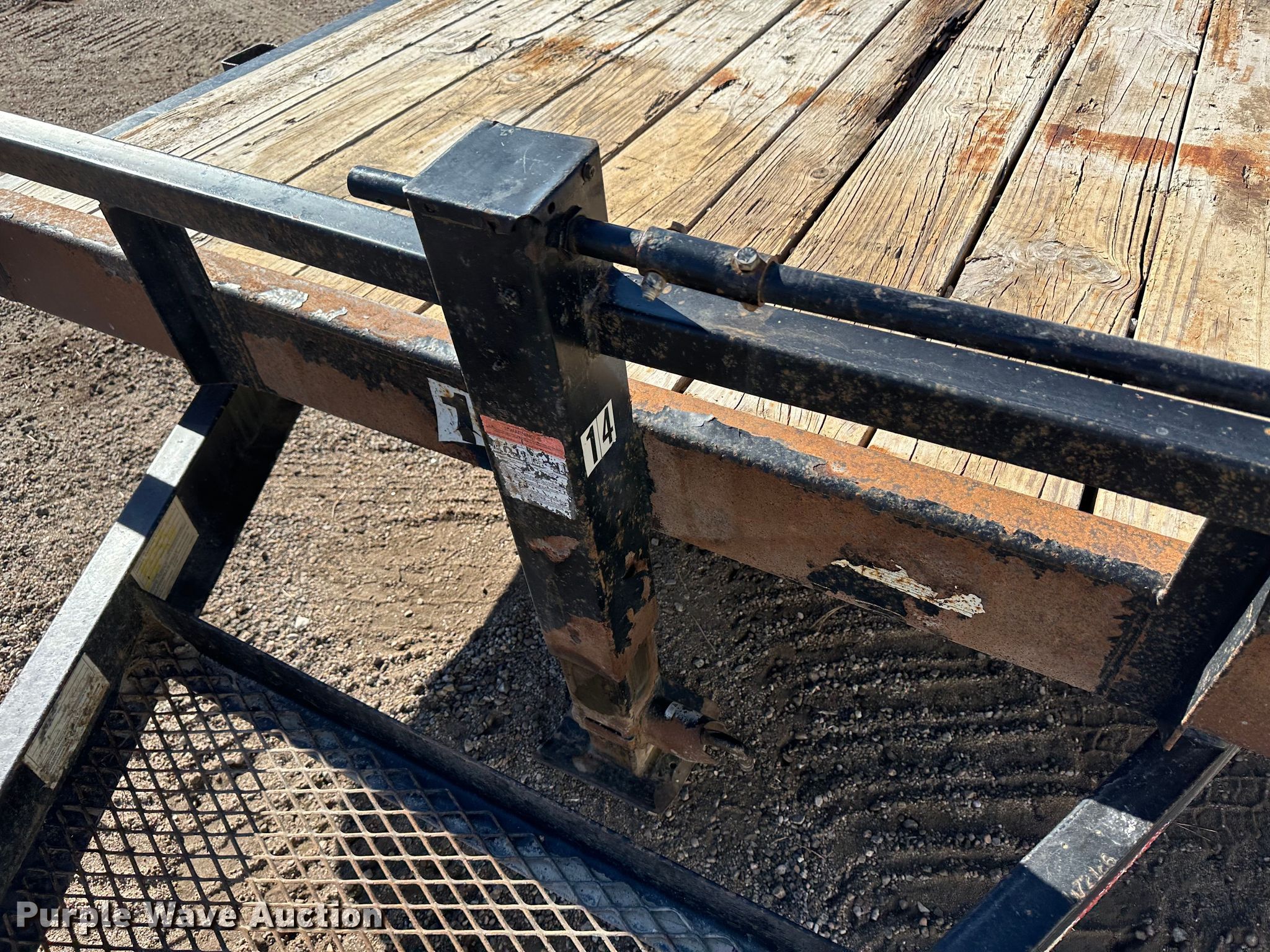 2012 PJ flatbed trailer. VIN: 4P5CC2025C1172126. Dimensions Overall: 26' 6" L x 102" W, Deck: 18' L x 83" W, Deck height: 24", Tail length: 2', Ramps: Manual Length: 5'. Features Deck type: Wood. Chassis Hitch: Pintle, Landing gear: Single, Suspension: Walking beam, Brakes: Electric, Axles: Tandem. Tires Steel wheels, Size: 235/80R16. Kansas title. Title distribution may be delayed up to 14 days from verification of funds. Solida Tree Service Inc. Phillipsburg, KS 67661