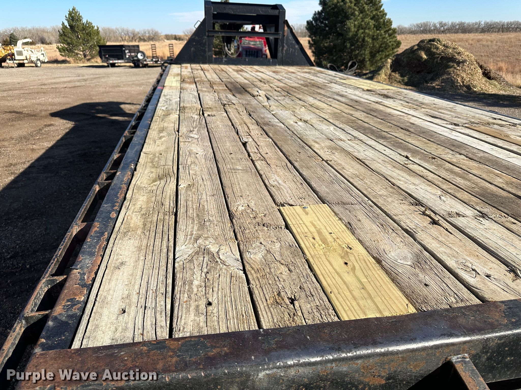 2009 PJ FD252 flatbed trailer. VIN: 4P5FD252691127482. Dimensions Overall: 34' L x 102" W, Deck: 19' 6" L x 97" W, Deck height: 36", Tail length: 6', Ramps: Manual Length: 5'. Features Deck type: Wood. Chassis Hitch: Gooseneck, Landing gear: Dual, Suspension: Spring, Brakes: Electric, Axles: Tandem. Tires Steel wheels, Size: 235/85R16. Kansas title. Title distribution may be delayed up to 14 days from verification of funds. Solida Tree Service Inc. Phillipsburg, KS 67661