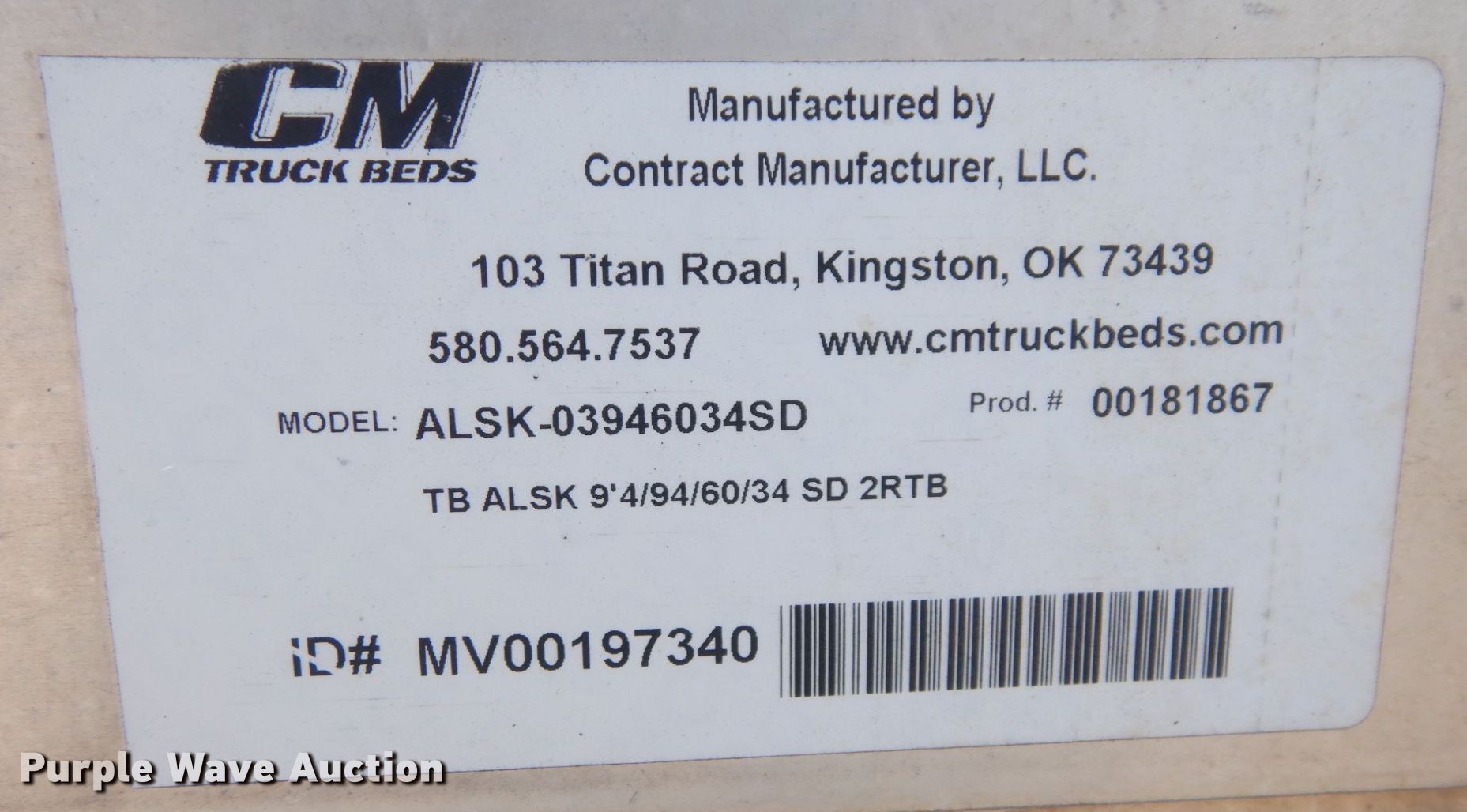 Purple Wave is selling a used Automotive Parts or Acces. in Kansas. This item is a Cm Truck Beds ALSK-30946034SD flatbed with the following: Serial: 00181867, 9' 4" L x 7' 10" W, Hitch: Gooseneck
