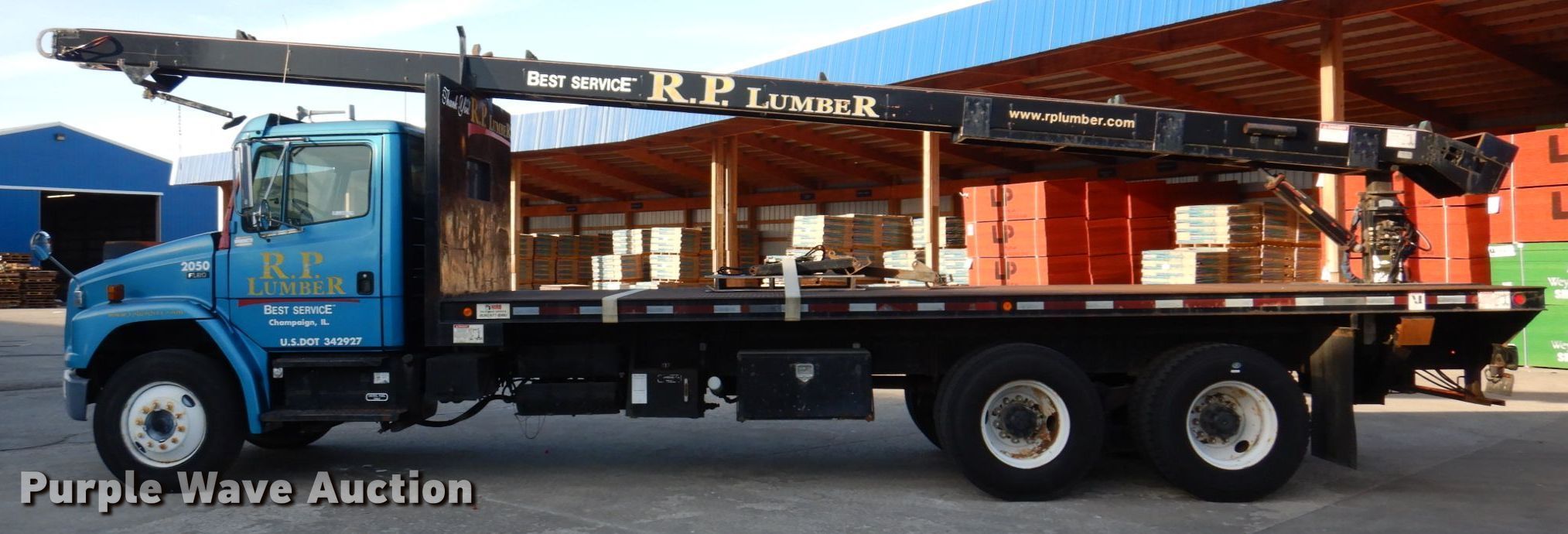 2004 Freightliner FL80 flatbed truck. Miles: 92,457 on odometer, Hours: 8,350 on meter, VIN: 1FVHBXCS84HM24511, Unit #: 2050. Engine Mercedes Benz OM906 LA, Cylinders: 6, Fuel type: Diesel. Transmission Eaton Fuller, Manual, Speed: 10. Chassis Axles: Tandem, Suspension: Spring over walking beam, Brakes: Air, PTO, GVWR: 54,000 lbs. Interior AC, Heat, Heated mirrors, Cruise control. Features Flatbed 24' 4" L x 95" W, 2003 Cleasby RTH 6000 conveyor Serial: CL050341603-6, 2000 FBR 6-36 belt conveyor Serial: AC100030700-1, 36' L x 15.75" W belt. Tires Front: 295/75R22.5, Rear: 11R22.5. Notes Stabilizer removed, extra parts included. View repairs. Illinois title. Title distribution may be delayed up to 14 days from verification of funds. R.P. Lumber Co., Inc.. Morton, IL 61550