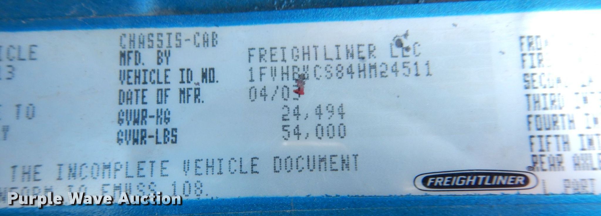 • VIN: 1FVHBXCS84HM24511