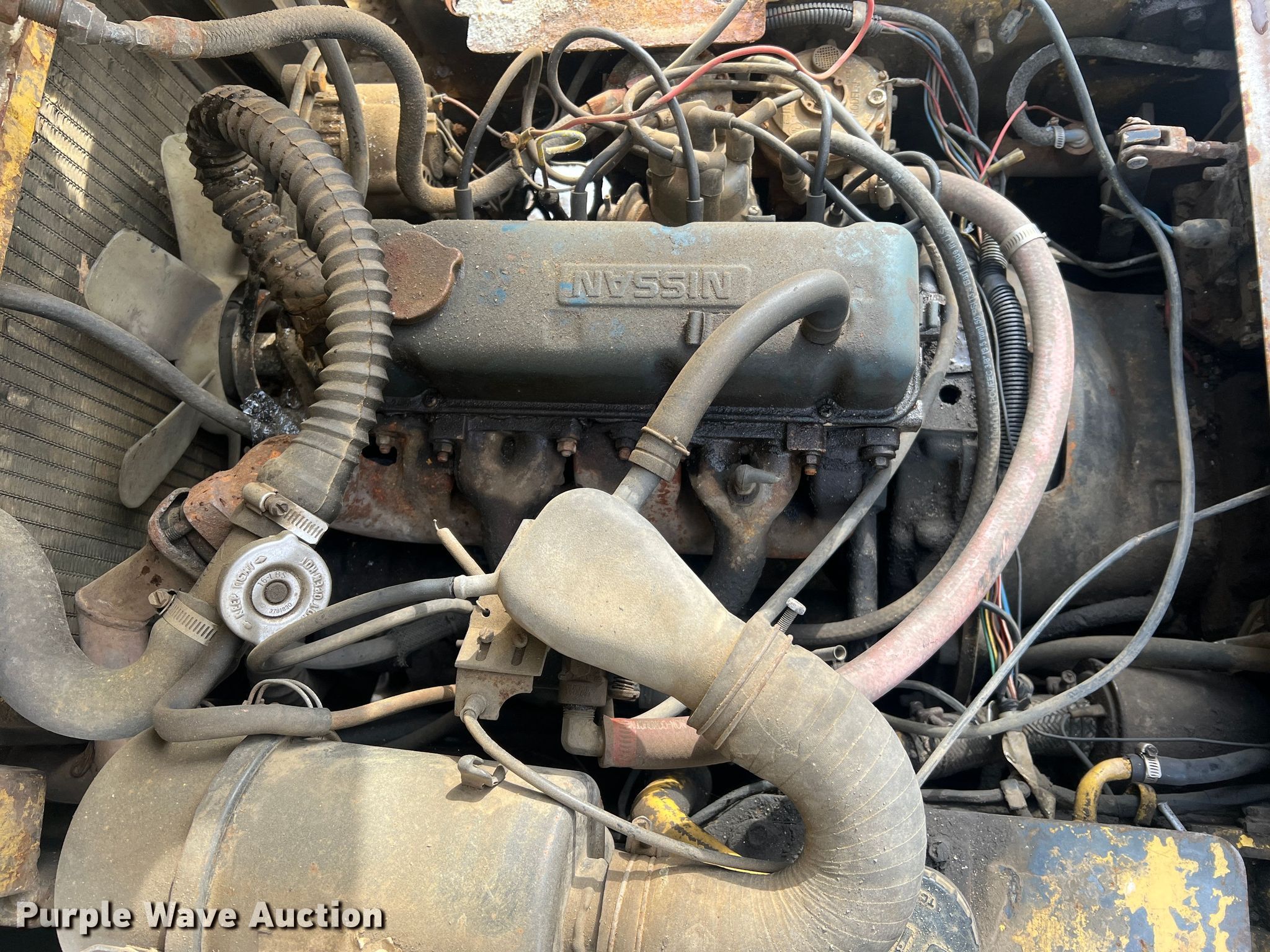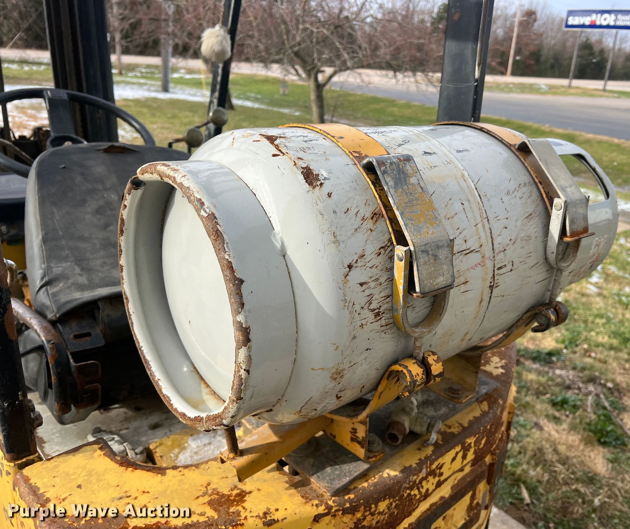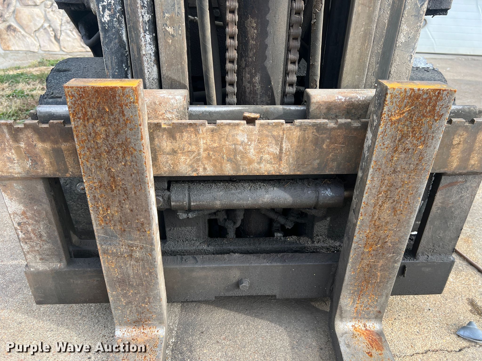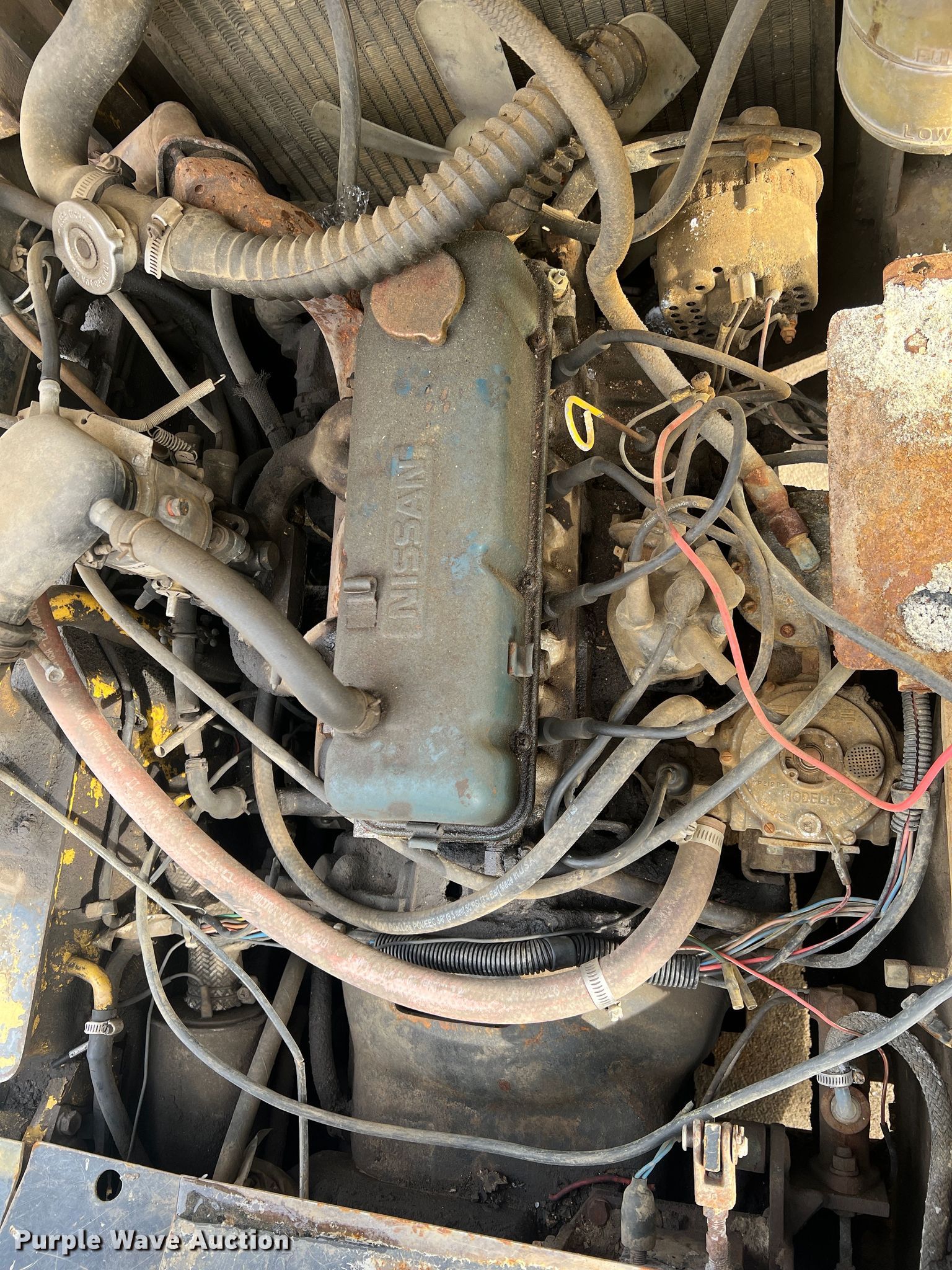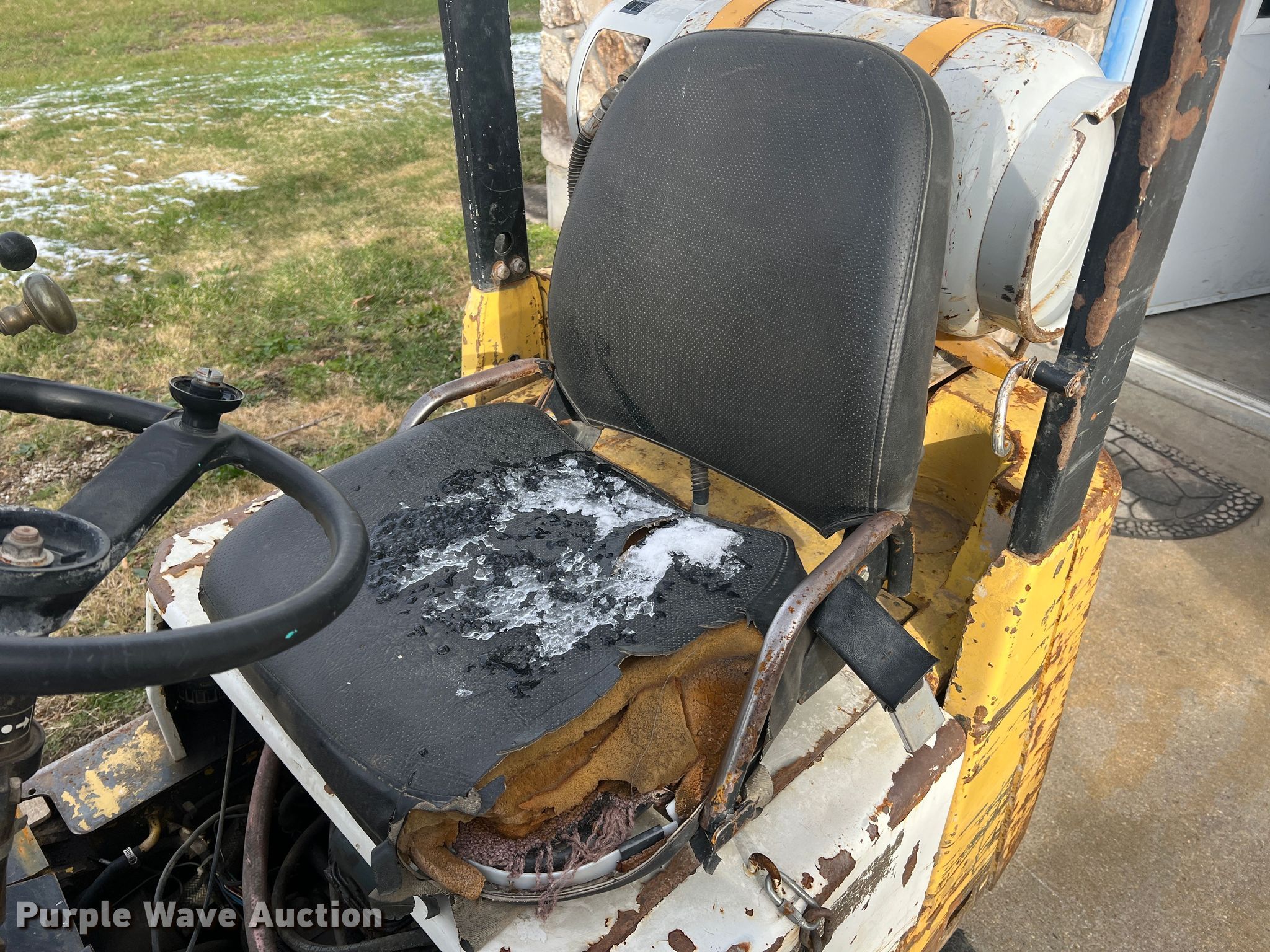 TCM FCG15N7T forklift. Hours: 1,318 on meter, Serial: A44700579. Engine Nissan, Cylinders: 4, Fuel type: LPG LP bottle: Included. Transmission Shuttle shift. Operators station OROPS. Features Maximum lift capacity: 2,500 lbs, Maximum lift height: 189", Mast stages: 3, Side shift, Mast tilt, Fork length: 42". Tires Size: 21x7x15, Solid, Non marking. Notes Non-operational engine, Non-operational unit. 14829 MO-52. Versailles, MO 65084