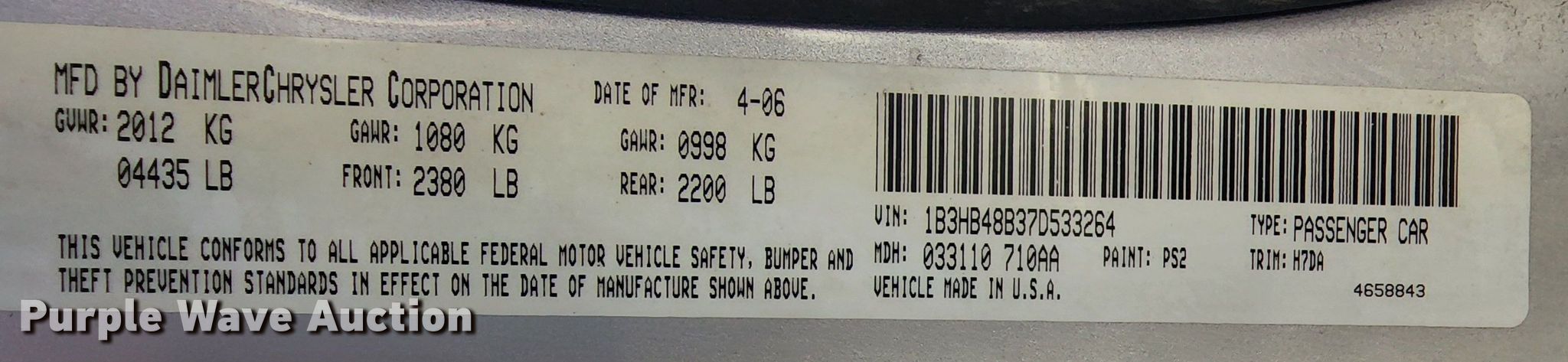 Purple Wave is selling a used Passenger Vehicle in Missouri. This item is a 2007 Dodge Caliber SXT with the following: Miles: 220,751 on odometer, VIN: 1B3HB48B37D533264