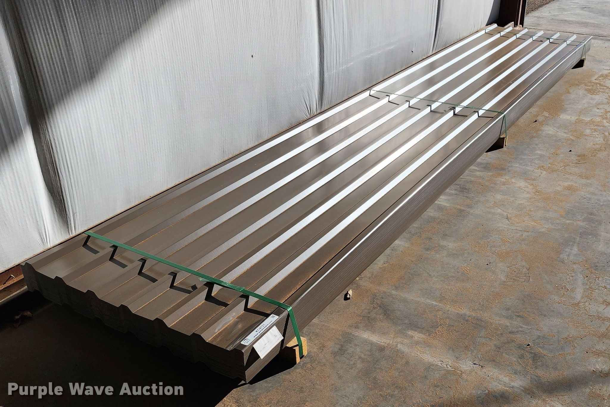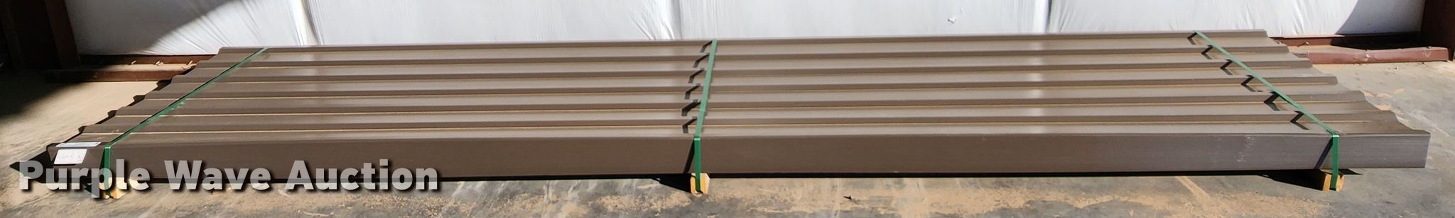 Purple Wave is selling a used Building Materials in Texas. This item is a (170) sheets of Doerkson Metal Components metal siding/roofing with the following: 16' L x 36" W overlap coverage, PBU panel profile, 29 gauge, Color: Burnished Slate, Possible blemishes