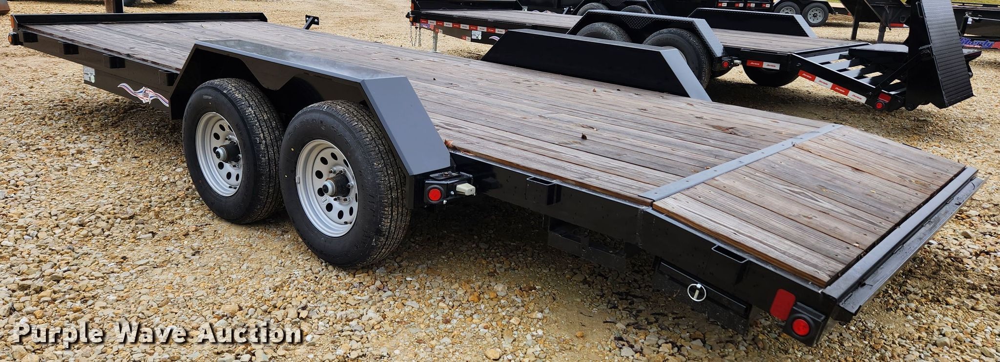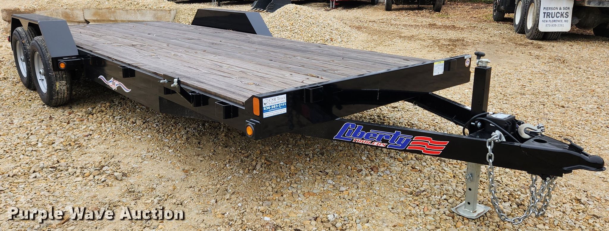 2022 Liberty equipment trailer. VIN: 5M4LC2021NF035292. Dimensions Overall: 24' L x 102" W, Deck: 18' L x 81" W, Tail length: 2', Ramps: Manual Length: 5'. Features Deck type: Wood. Chassis Landing gear: Single, Suspension: Spring, Brakes: Electric, Axles: Tandem, GVWR: 9,990 lbs, GAWR: 5,200 lbs. Tires Steel wheels, Size: 225/75R15. Notes Unused. Seller is an Missouri licensed motor vehicle dealer. Transfer of ownership documentation will be a manufacturer's certificate of origin that will be assigned and distributed by the dealer. Please contact the seller for distribution questions. CSR Truck and Equipment Sales. Marthasville, MO 63357