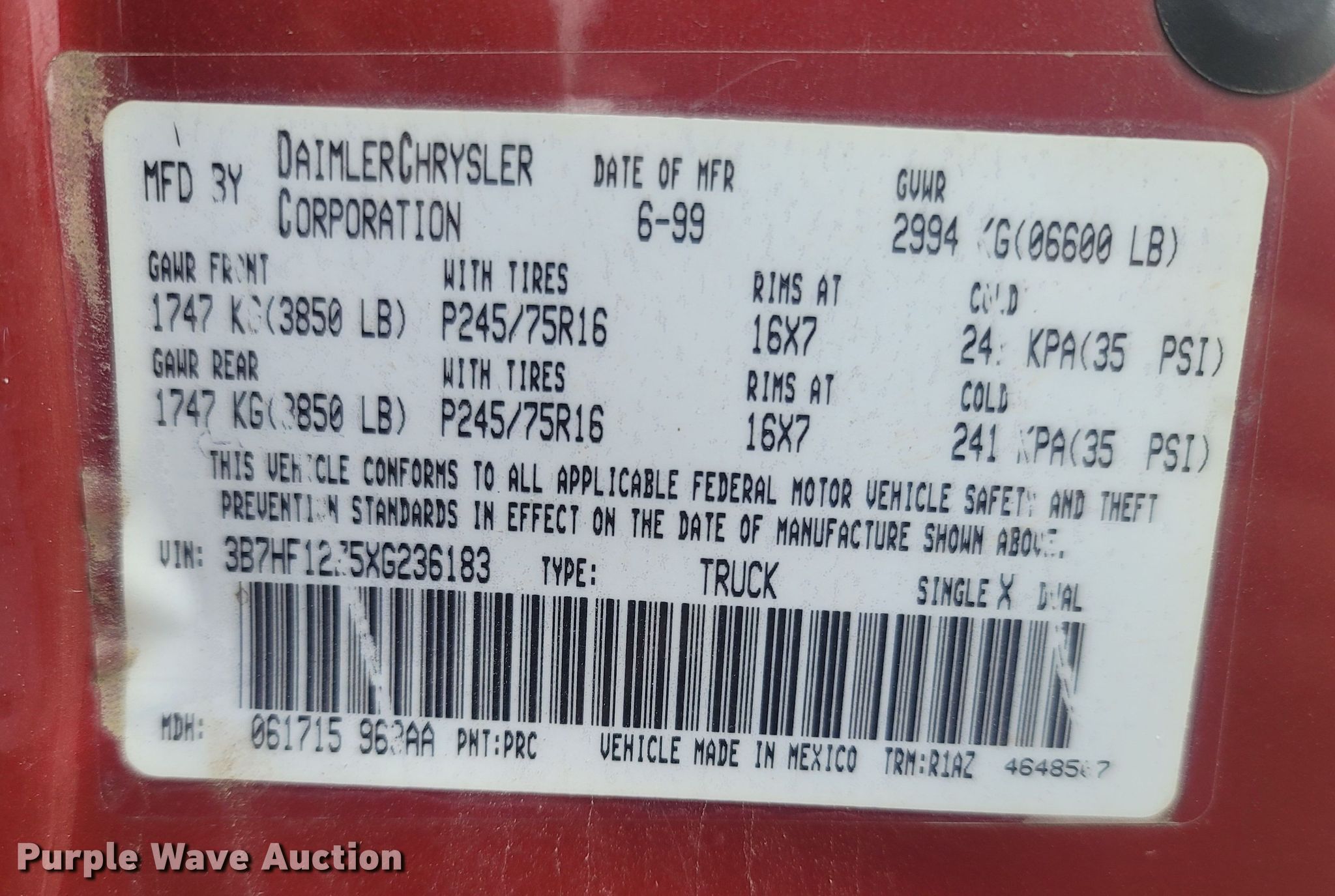 Purple Wave is selling a used 1/2 Ton Pickup or Van in Missouri. This item is a 1999 Dodge Ram 1500 Club Cab pickup truck with the following: Miles: 114,242 on odometer, VIN: 3B7HF12Z5XG236183