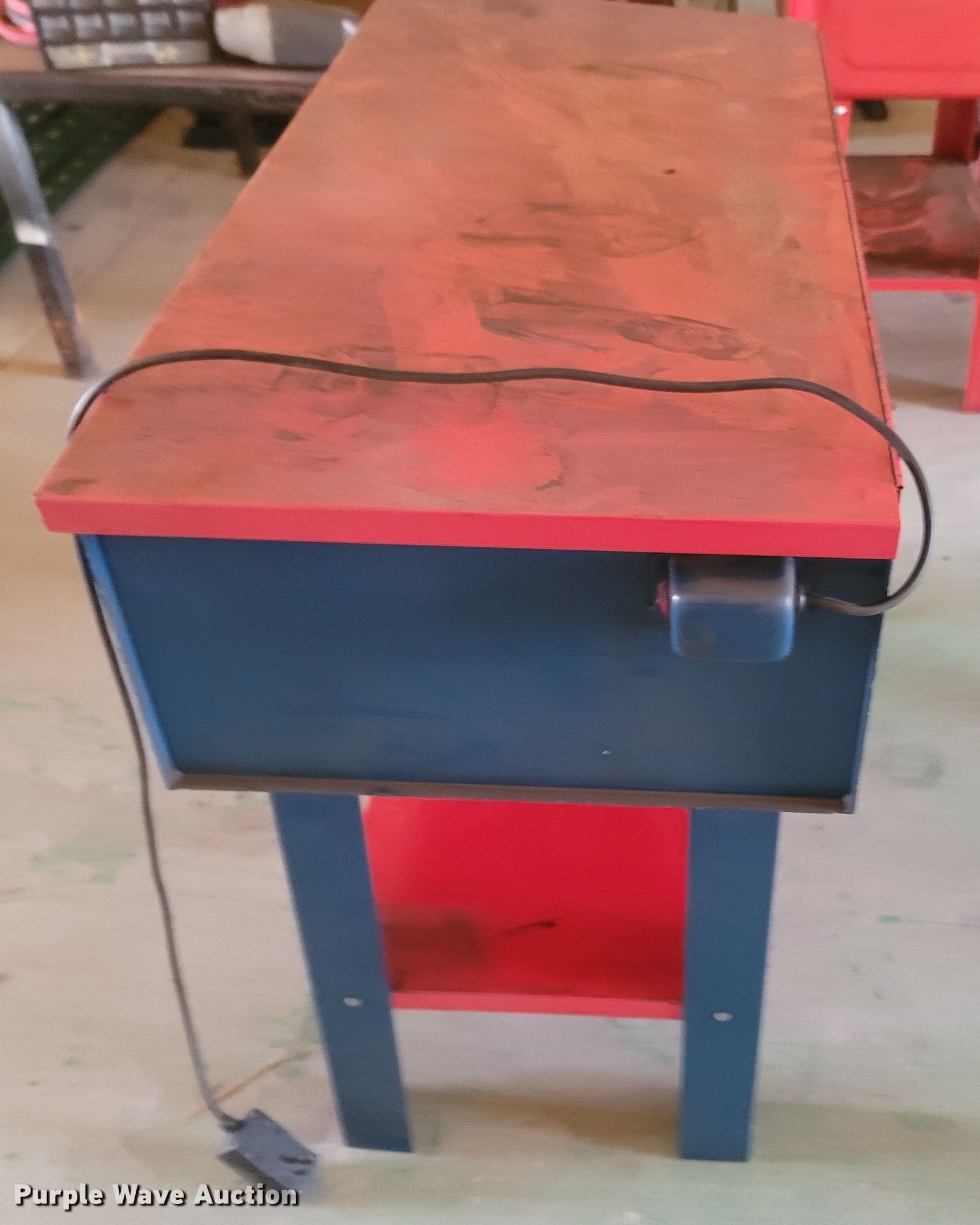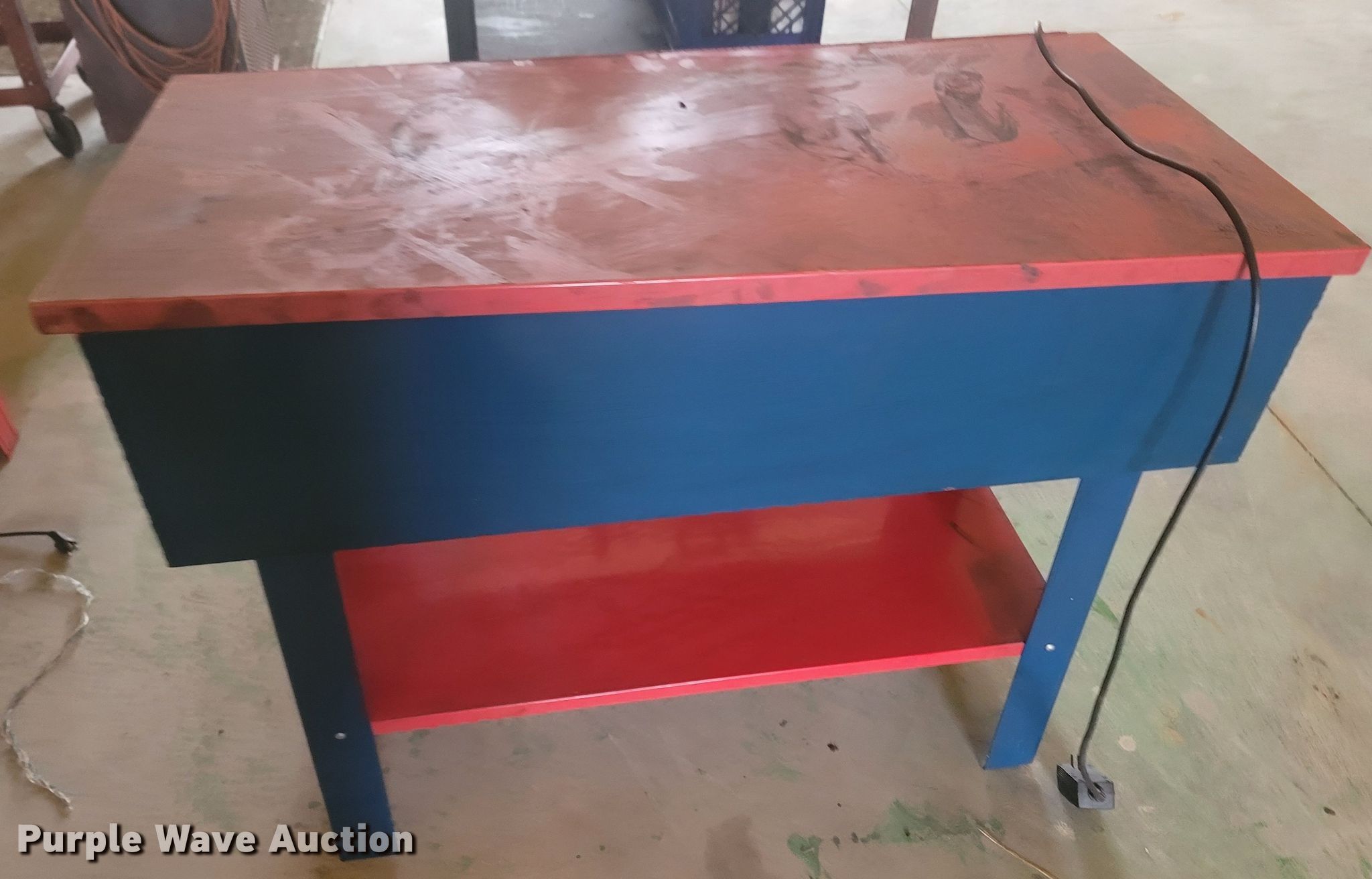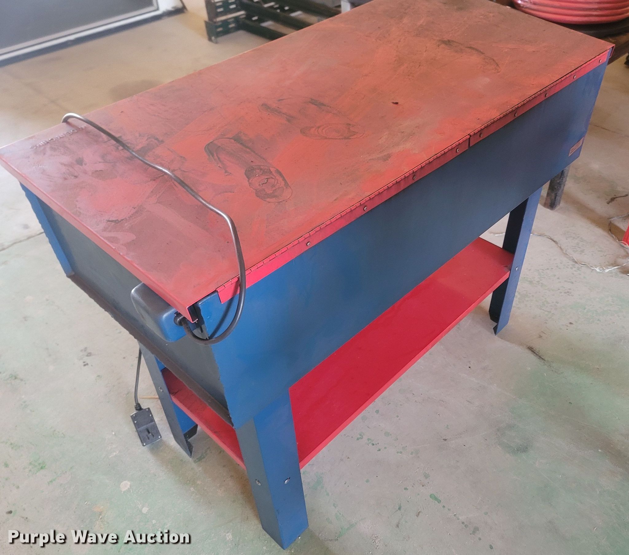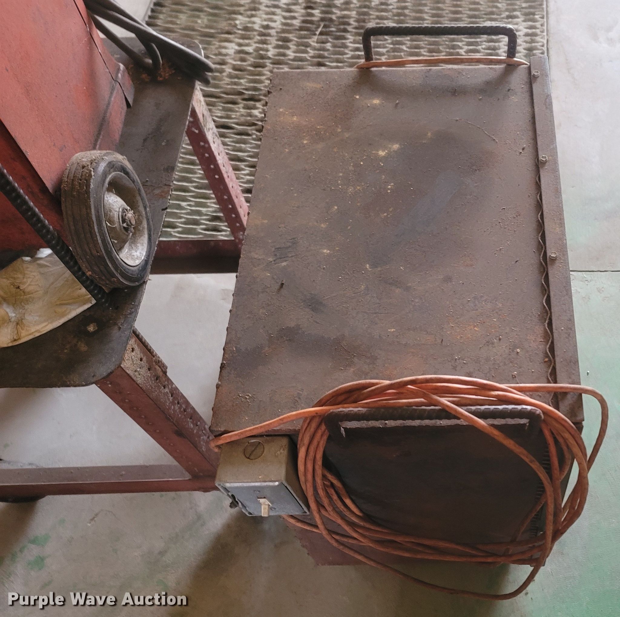 Purple Wave is selling a used Tools in Missouri. This item is a Tools with the following: Welding table, Lincoln AC180A, Welding supplies, Box fan, Hydraulic car lift with pump, Vise, (3) crates of hydraulic fluid, Multiquip 3600 generator, 30 gallon grease barrel, Shop made metal shelf, Air hoses, (2) parts washers, (2) cut off saws, (5) spools of air hose, Approx. 44 boxes of fittings, Pneumatic air nibbler, Shop built metal table, Exhaust fume fan with ducting