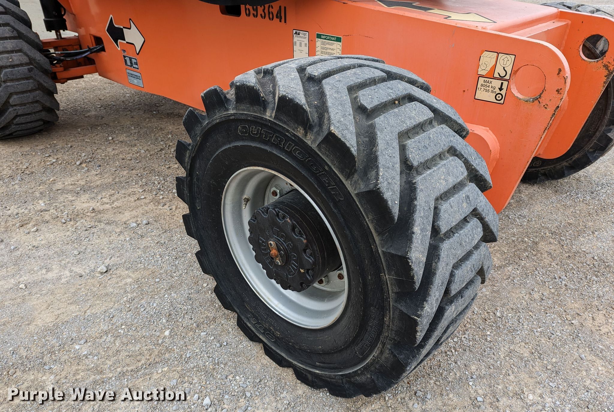 2004 JLG 800AJ boom lift. Hours: 1,799 on meter, Serial: 0300082404, Unit #: 1472-1. Engine Deutz F4M2011, Serial: 21504332, Displacement: 3.1L, Cylinders: 4, Fuel type: Diesel, HP: 48.5, kW: 65. Chassis Four wheel drive. Features Maximum lift capacity: 500 lbs, Maximum reach length: 51.83', Maximum lift height: 80', Hydraulic extendable jib, Hydraulic leveling, Platform: 98" L x 36" W, AC power outlet, Air outlet, Controls: Platform, Ground, Platform rotation: Hydraulic, Safety alarm. Tires Tire size: IN445/55D19.5. Noble Research Institute - Open inspection Dec 21. 2510 Sam Noble Parkway. Ardmore, OK 73401