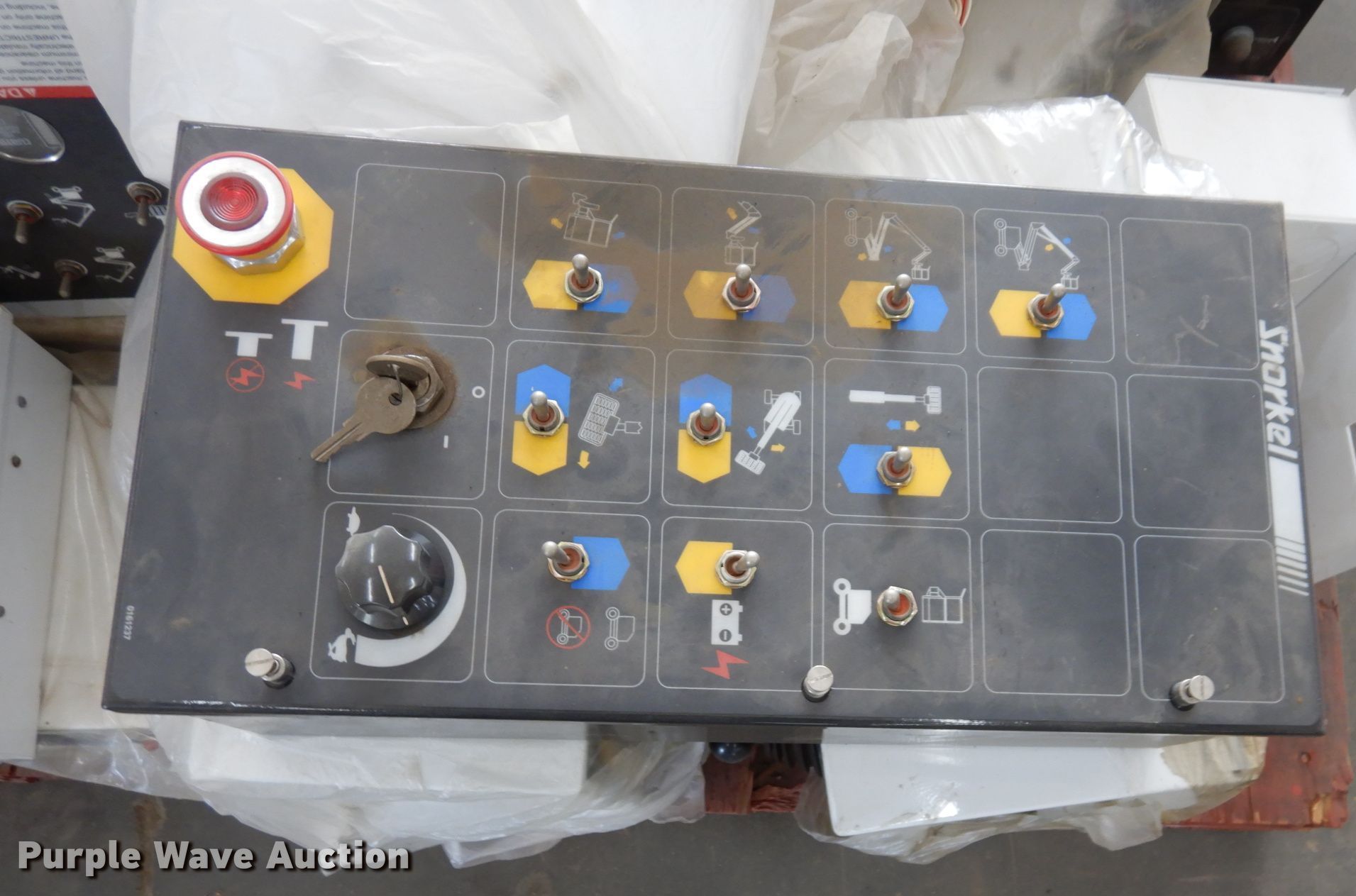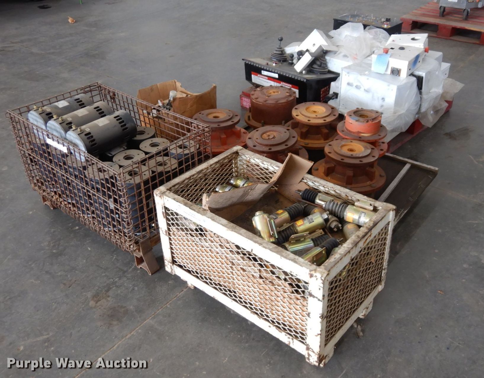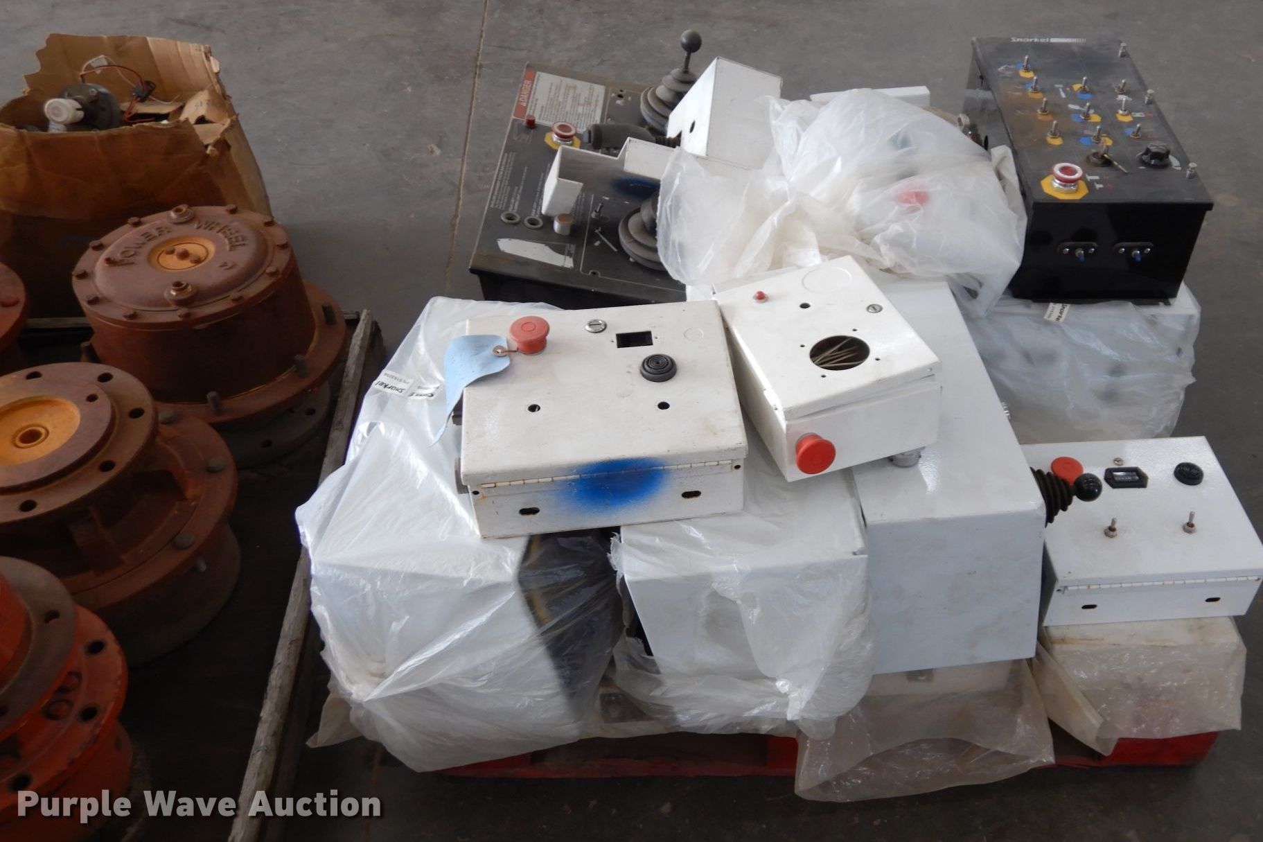 Purple Wave is selling a used Aerial Lift Attach. in Kansas. This item is a Snorkelift lift parts with the following: Electric solenoids, (18) electric motors, (6) drive motors, Auto level sensors, Control boxes