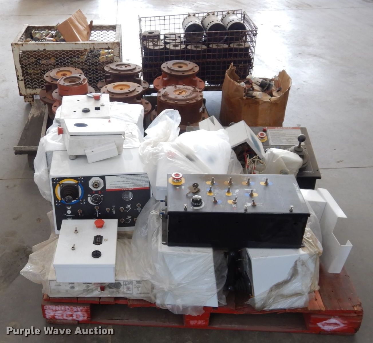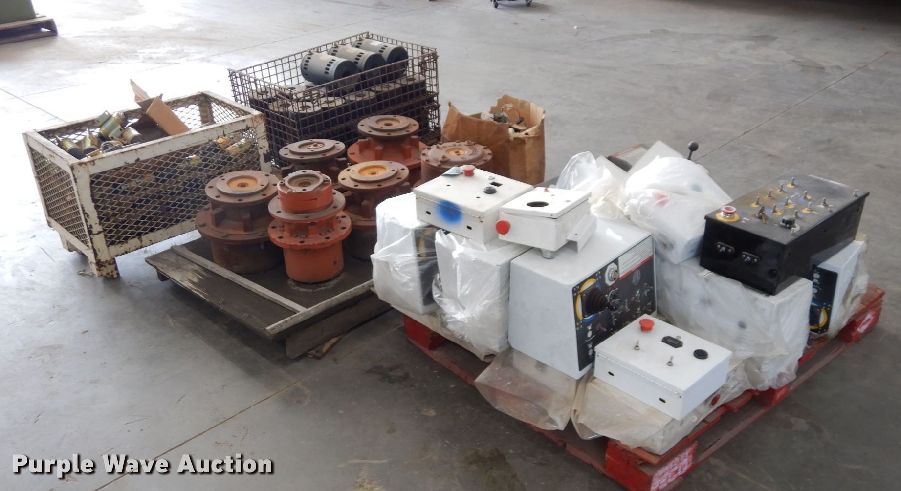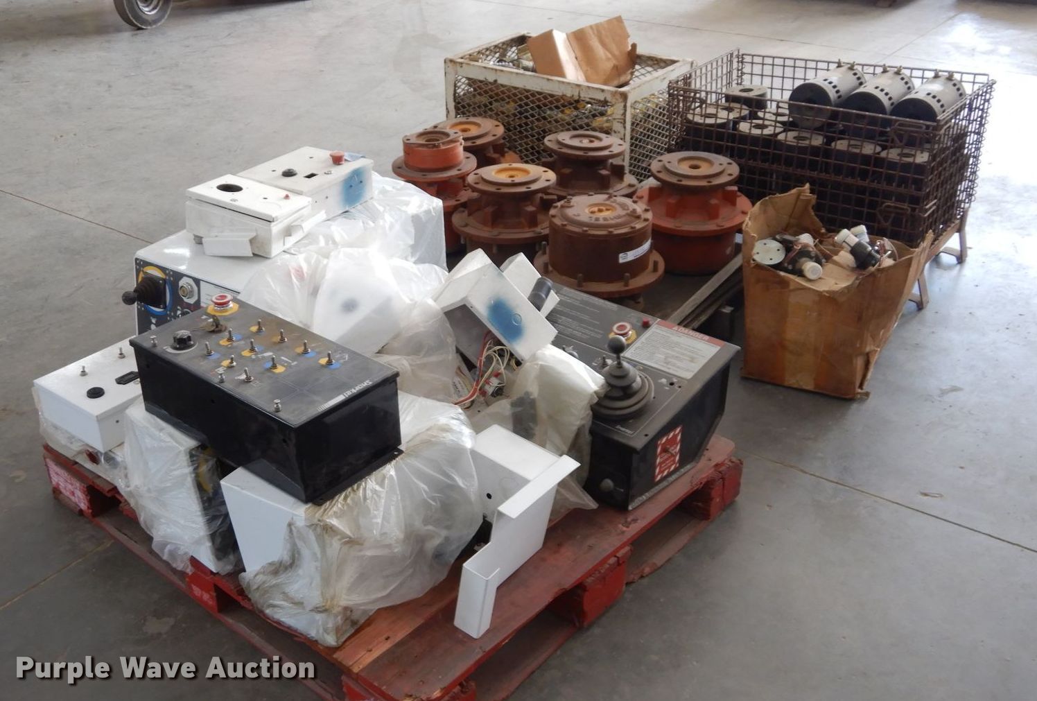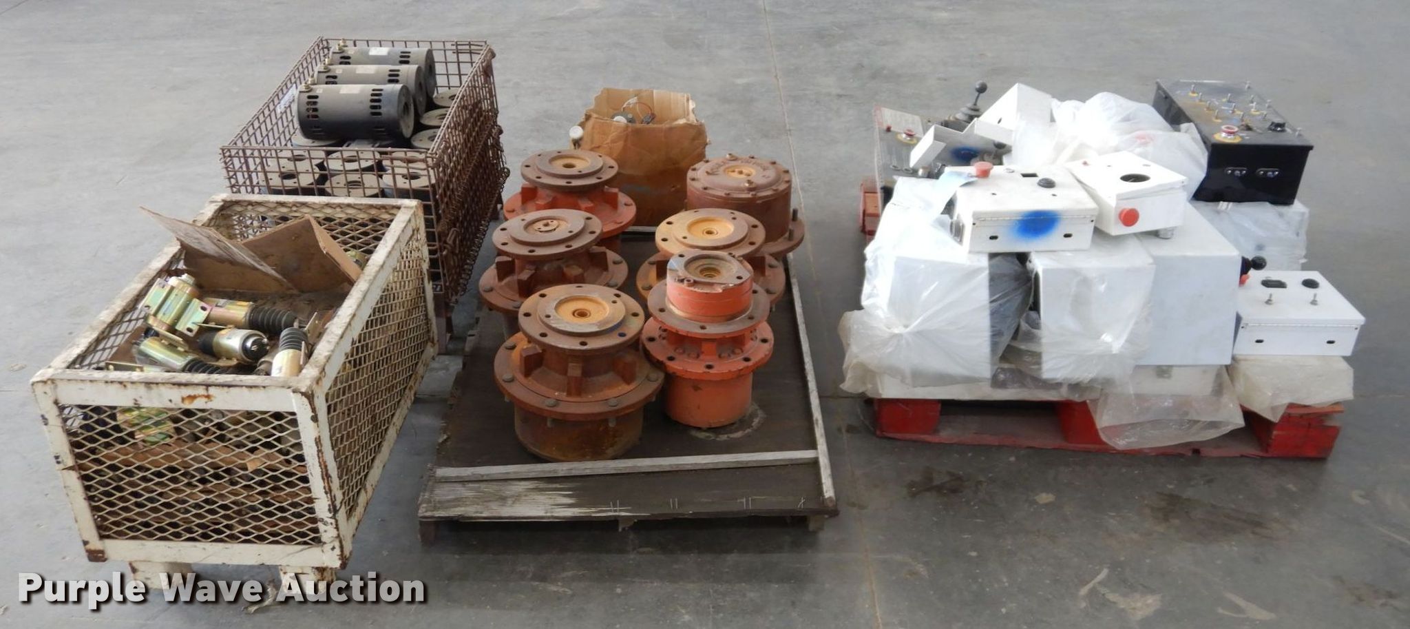 Purple Wave is selling a used Aerial Lift Attach. in Kansas. This item is a Snorkelift lift parts with the following: Electric solenoids, (18) electric motors, (6) drive motors, Auto level sensors, Control boxes