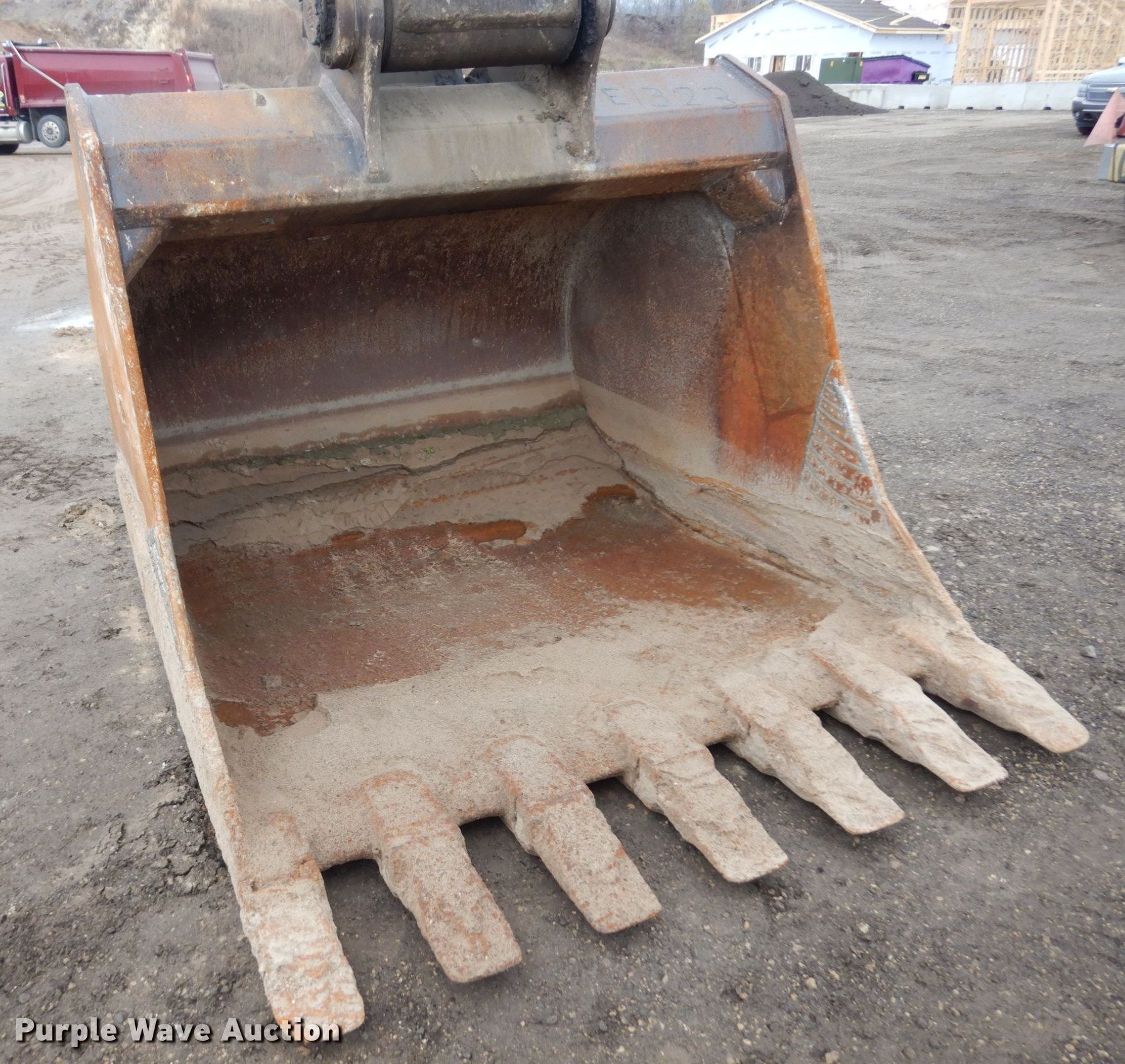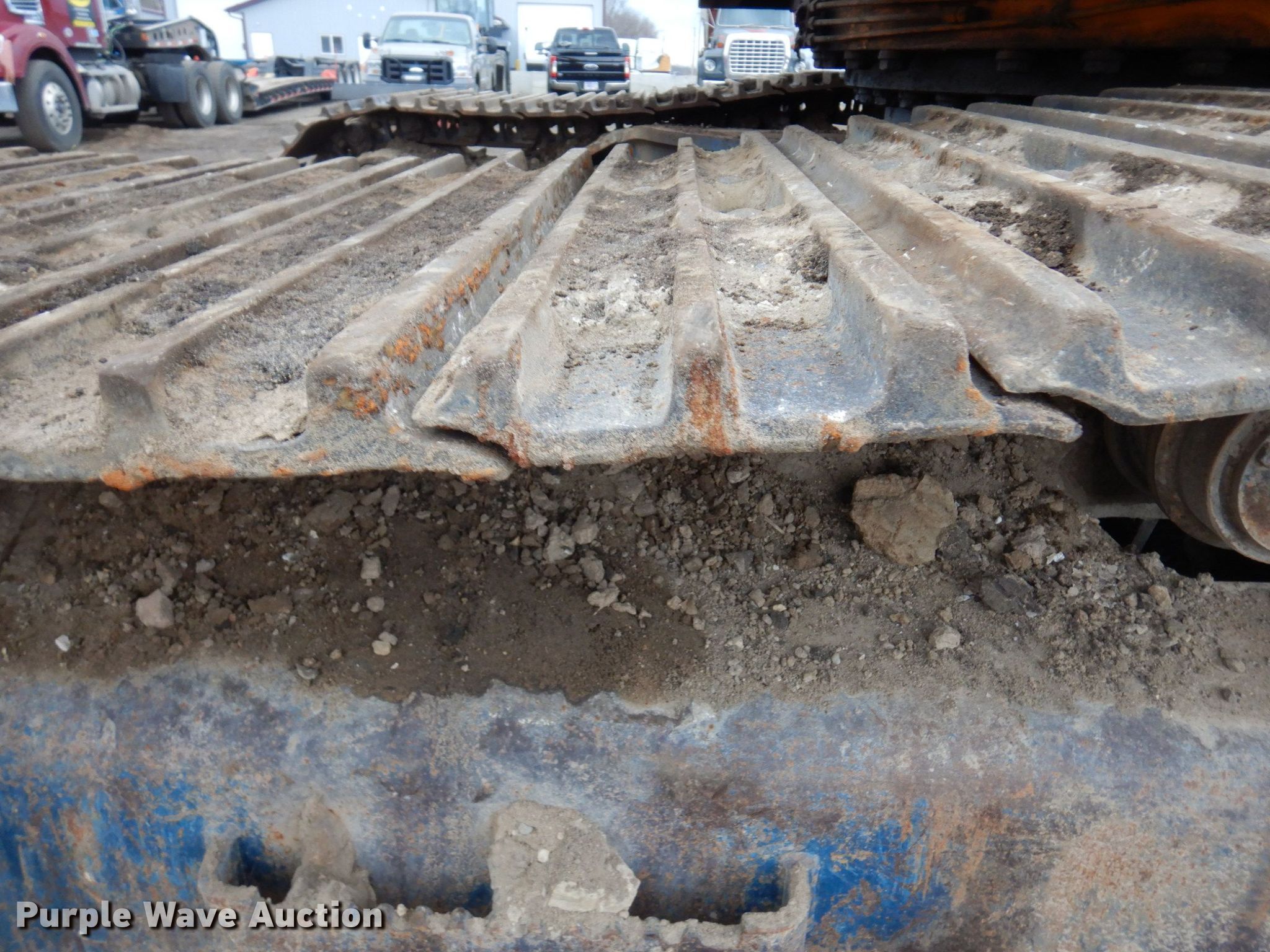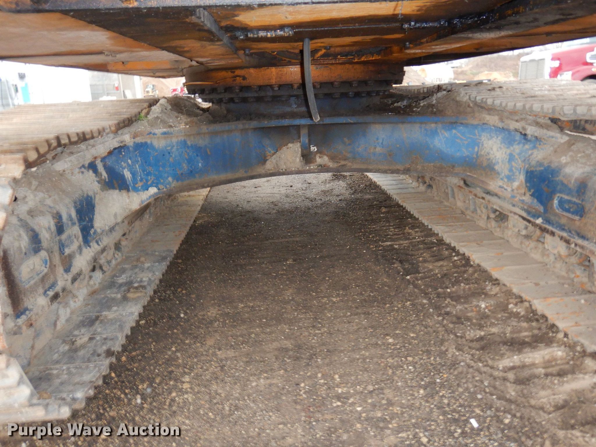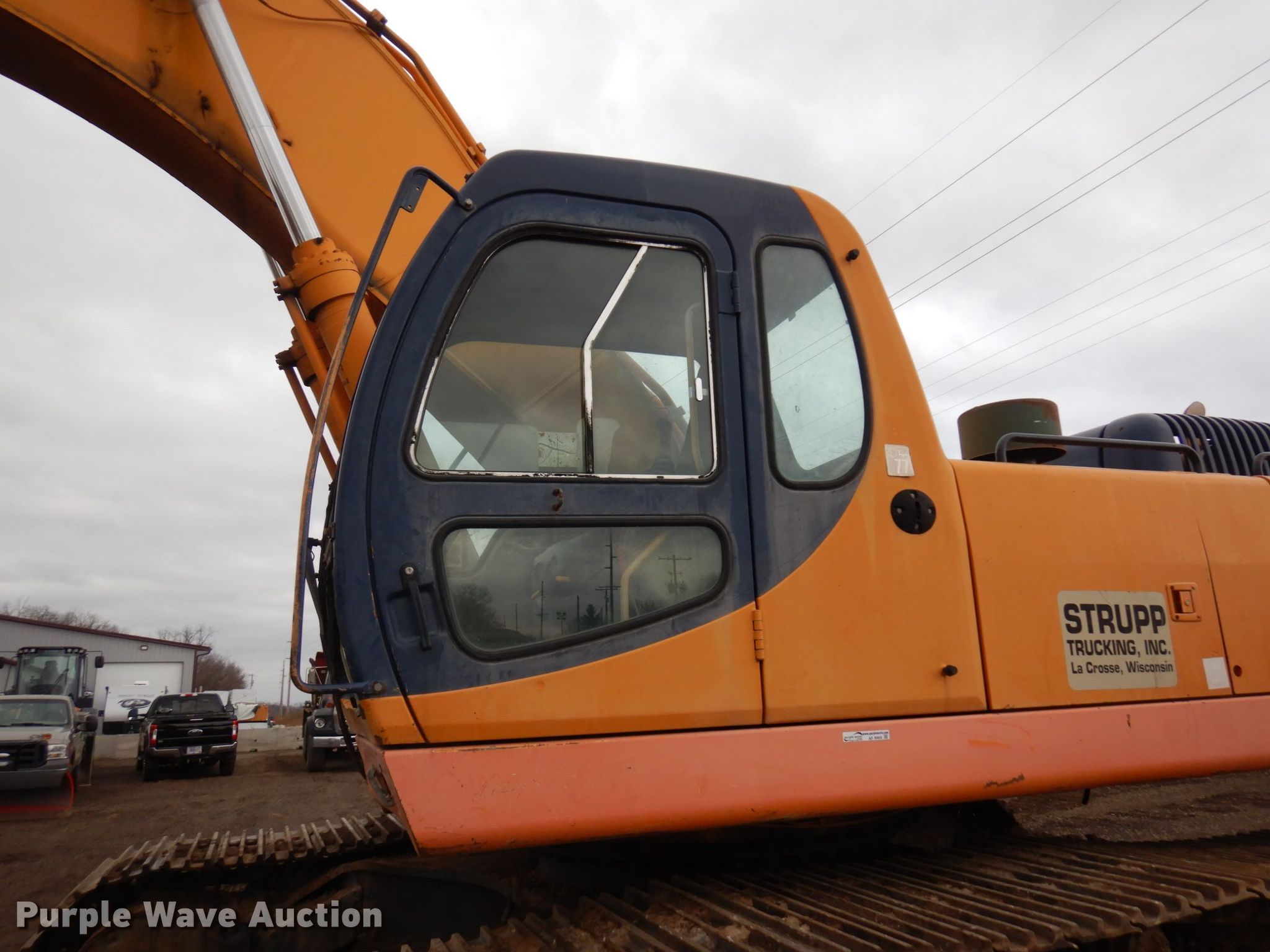 1999 Samsung SE450LC-3 excavator. Hours: 10,199 on meter, Serial: KCY0039. Engine Cummins, Cylinders: 6, Fuel type: Diesel, kW: 221. Transmission Hydrostatic, Two speed travel. Operators station Enclosed cab, Heat. Features Standard, Boom Standard, Stick Stick length: 12' 9", Bucket Width: 72", Cutting edge: Bolt-on, Teeth: 7. Tracks Width: 35", Steel, Grouser pads: Triple. Notes Non-operational gauges, Glass cracked, Dead battery, Lower windshield missing. Strupp Trucking. N6200 County Road XX. Onalaska, WI 54650