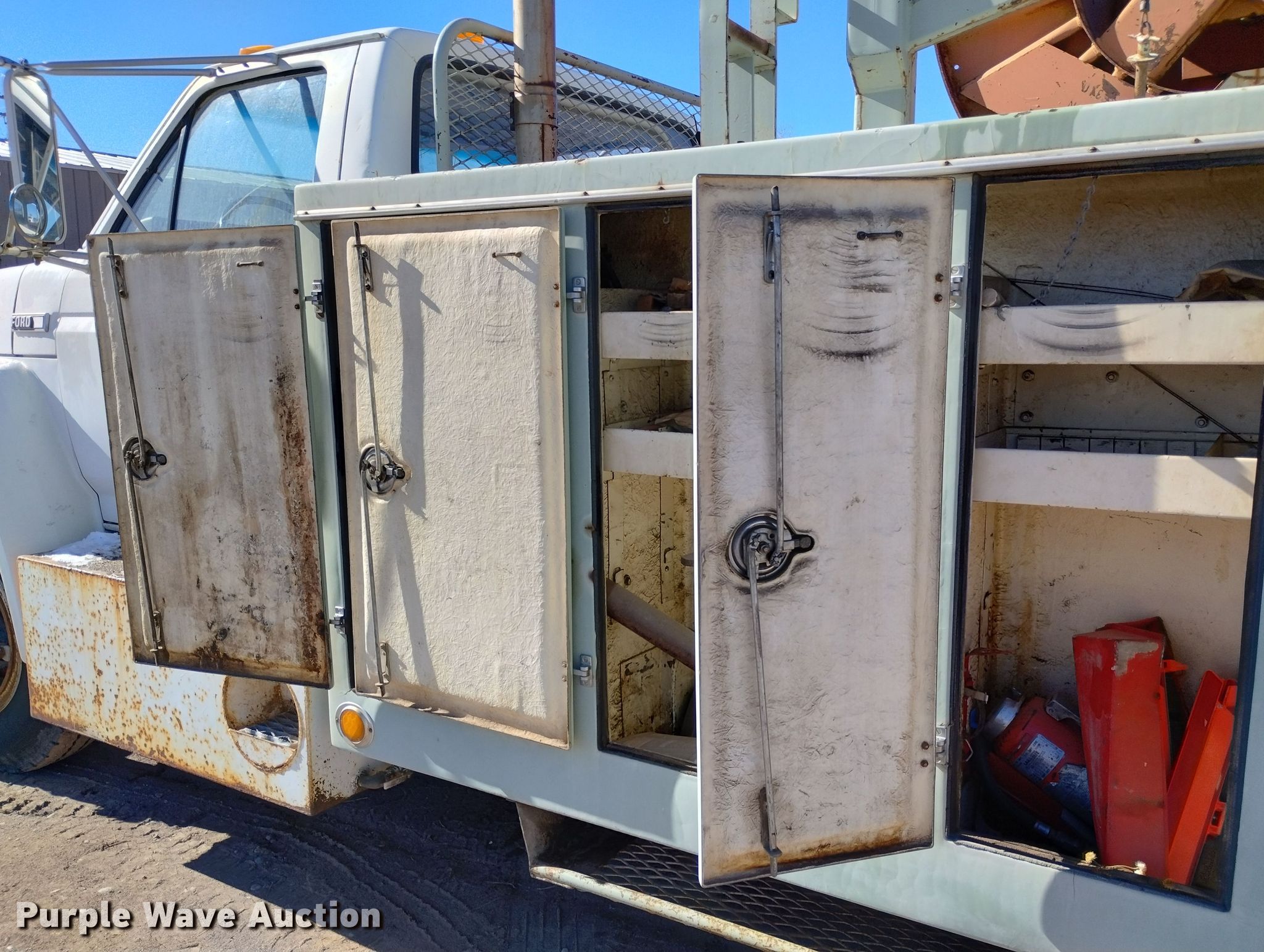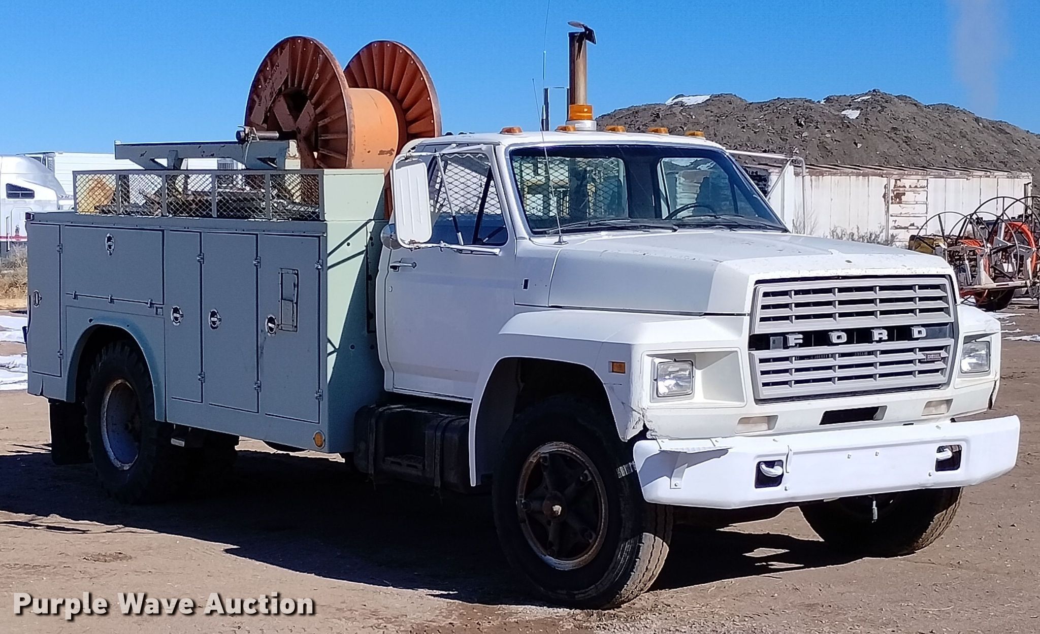 Purple Wave is selling a used Service Truck in Colorado. This item is a 1981 Ford F800 utility / service truck with reel carrier with the following: Miles: 5,288 on odometer, VIN: 1FDPK84N8BVJ16252