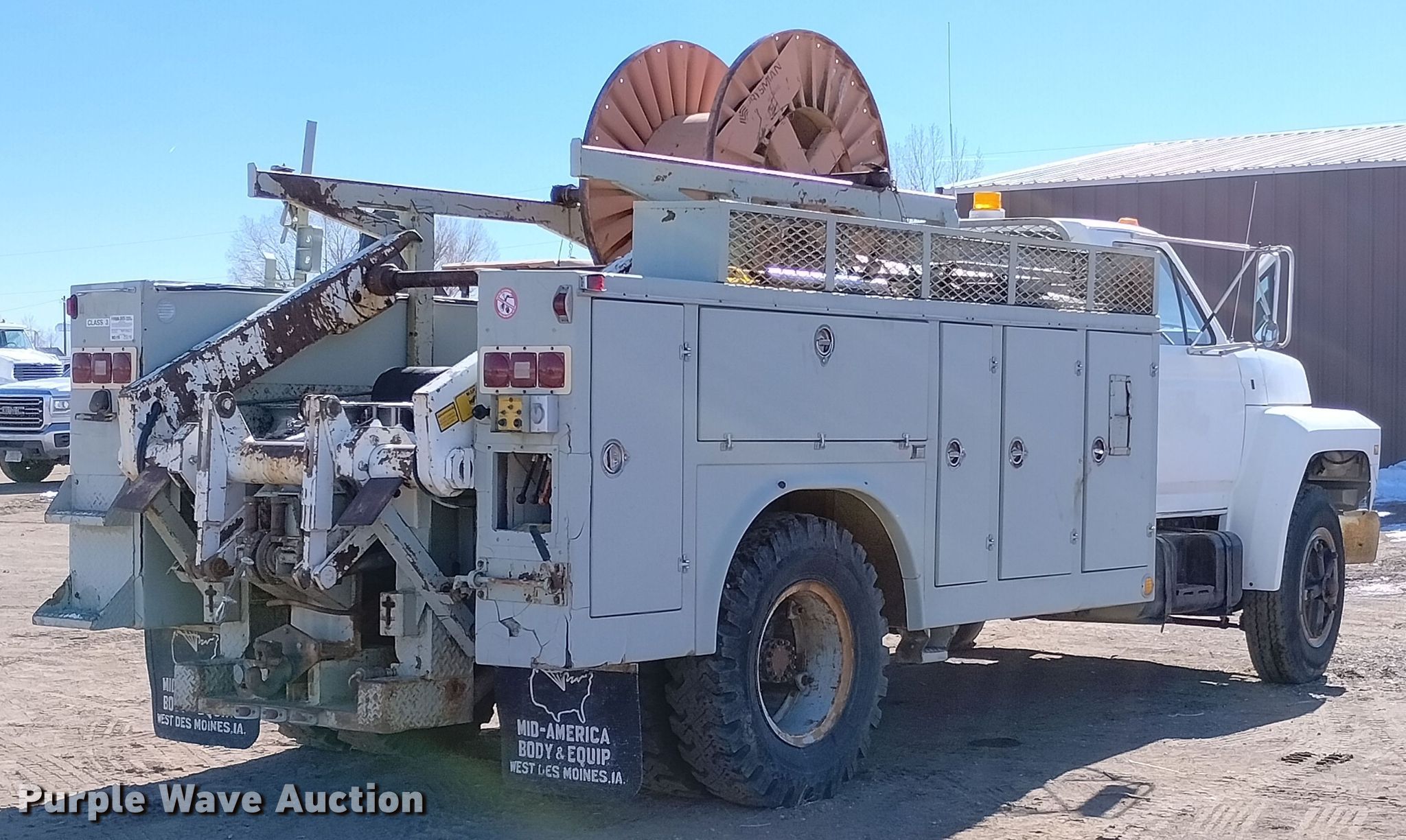 1981 Ford F800 utility / service truck with reel carrier | SOLD! December 29 Construction Equipment Auction