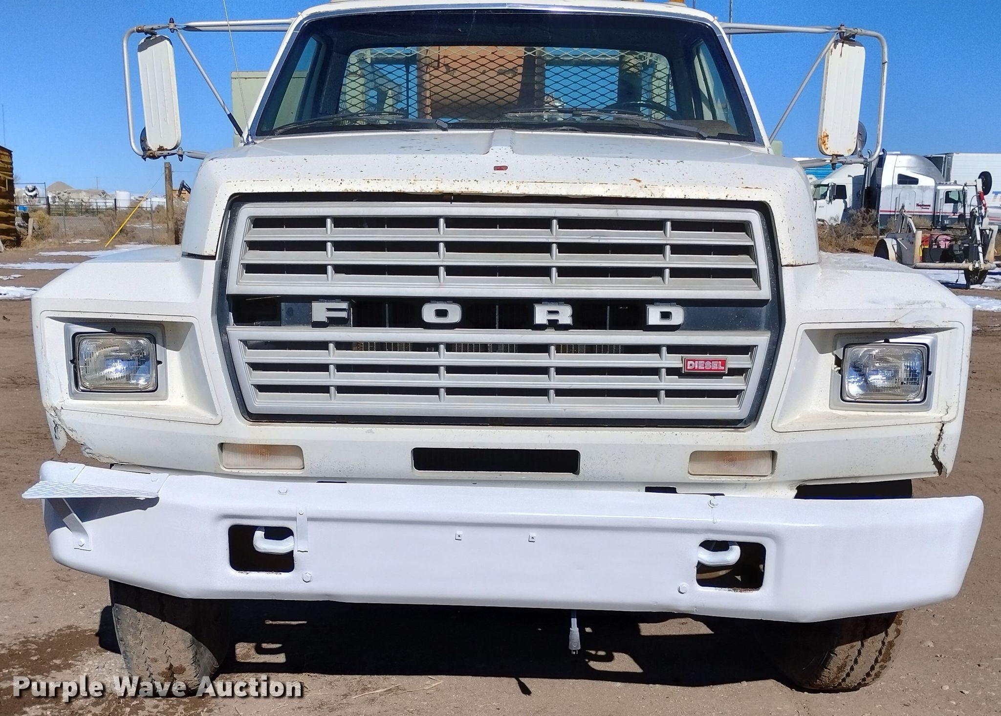 1981 Ford F800 utility / service truck with reel carrier. Miles: 5,288 on odometer, VIN: 1FDPK84N8BVJ16252. Engine Detroit Diesel, Displacement: 8.2L, Cylinders: 8, Fuel type: Diesel. Transmission Manual, Speed: 5, plus 2. Chassis Axles: Single, Suspension: Spring, Brakes: Hydraulic, PTO, GVWR: 27,500 lbs, Wheelbase: 153". Interior Heat, Brake controller. Features Bed 13' L x 96" W, Oil/lube system Reservoirs Hydraulic fluid, Adams T-8-111-LA1 rear winch. Tires Front: 9.00-20, Rear: 10.00-20. Notes Contents not included. Montana title. Mileage has not been verified. Exempt will be written in the odometer disclosure on the title. Title distribution may be delayed up to 14 days from verification of funds. PUSH Incorporated/JKL Associates. 6701 Malouff Road. Alamosa, CO 81101