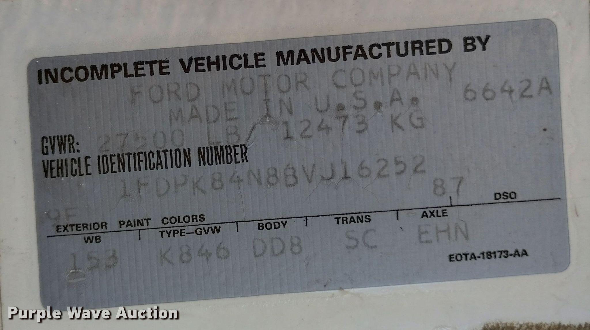 - VIN: 1FDPK84N8BVJ16252