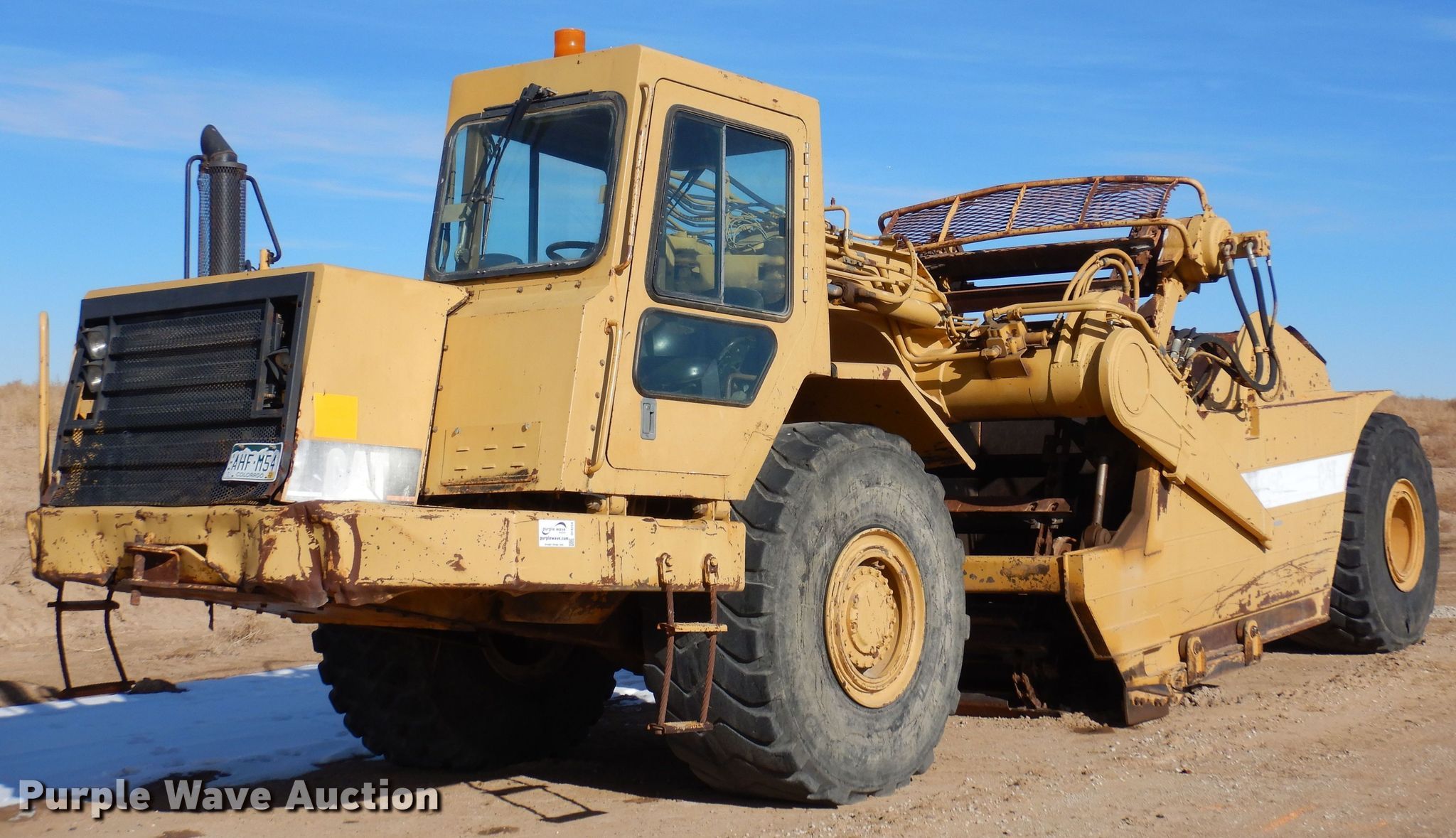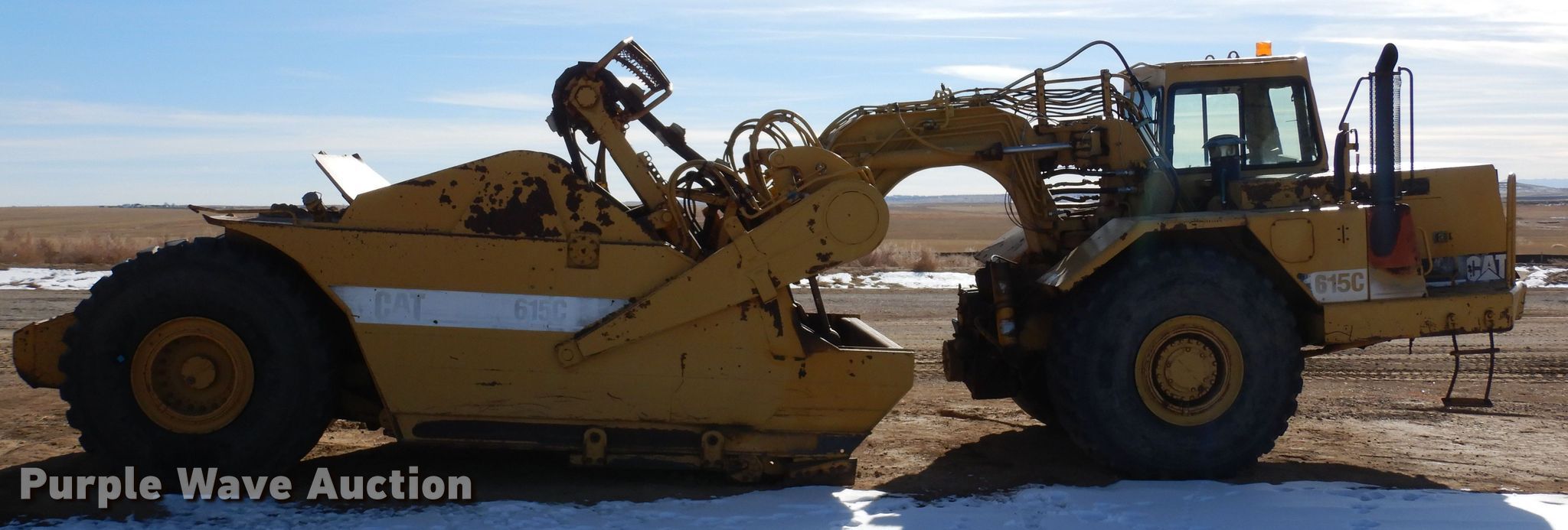 Purple Wave is selling a used Elevating Scraper in Colorado. This item is a 2000 Caterpillar 615C elevating scraper with the following: Hours: 7,869 on meter, Serial: 9XG01388