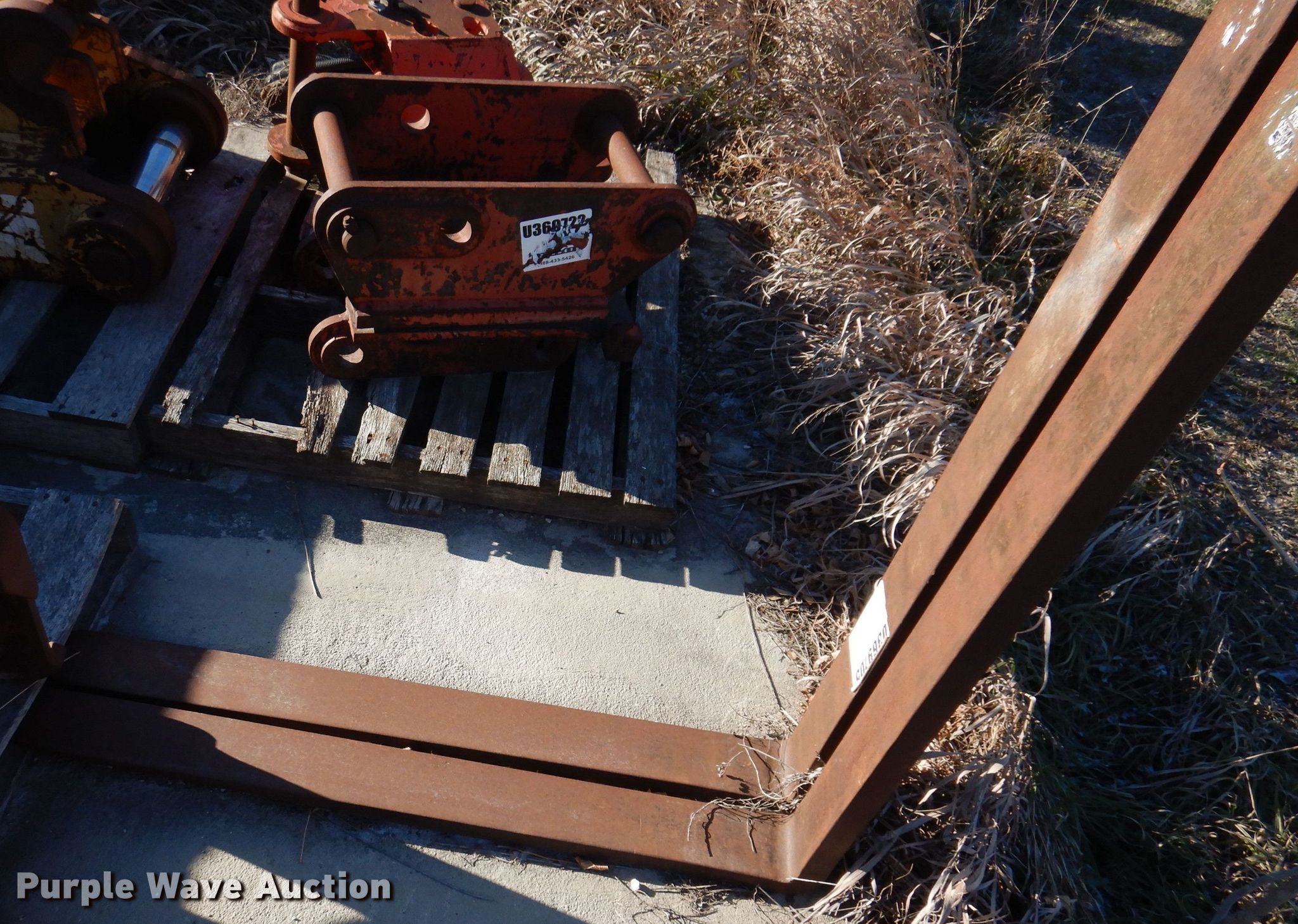 Purple Wave is selling a used Backhoe Attach. in Iowa. This item is a Backhoe attachments with the following: Backhoe bucket, Width: 24", Cutting edge: Weld-on, Teeth: 4, Forks: 43" L