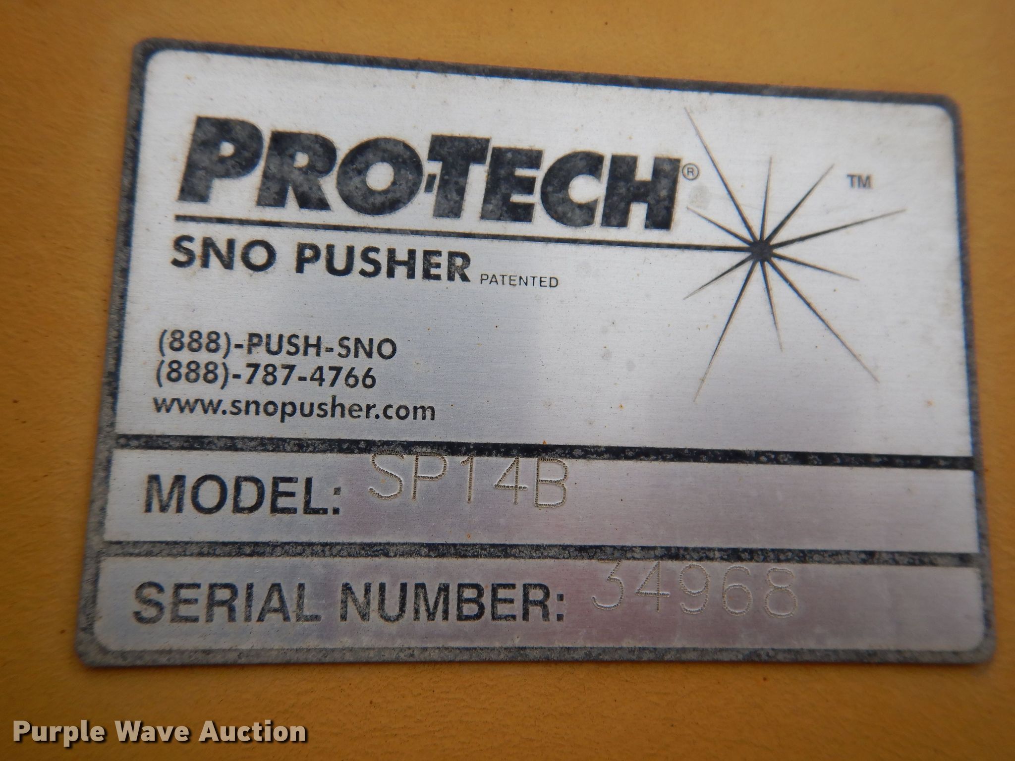 Pro-Tech SP14B snow pusher. Width: 166", Serial: 34968. 4600 Vandalia Drive. Pleasant Hill, IA 50327