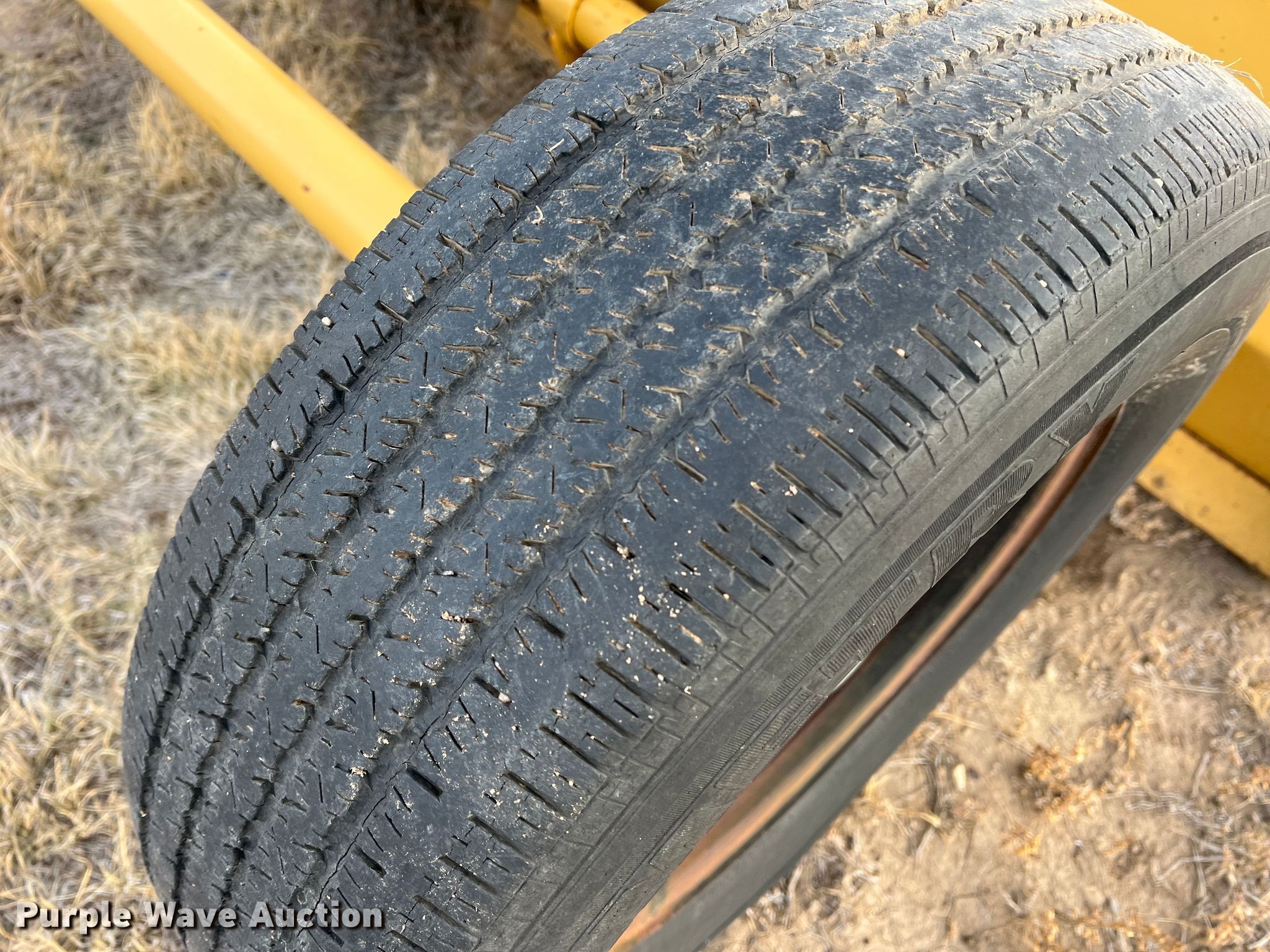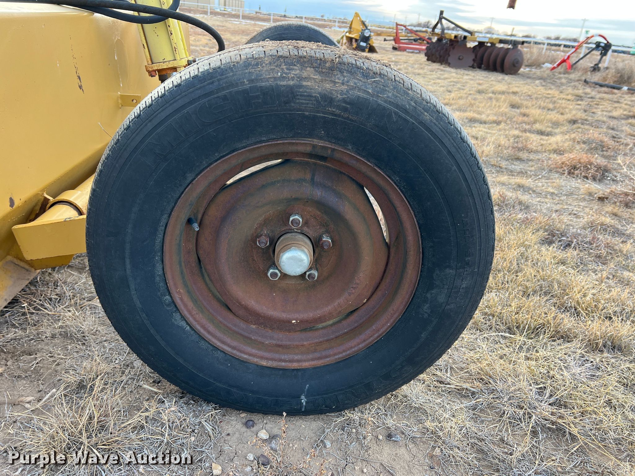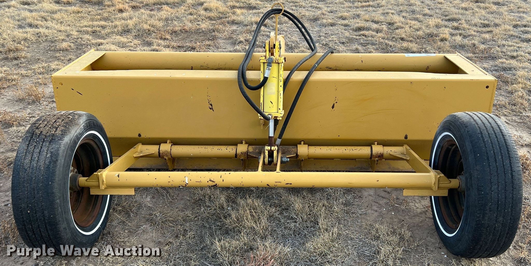 Brown DSU8 8'W box blade. Hydraulic lift , Tires 215/70R15, Serial: 06065. Kynco LLC. 914 Commissionary Ave. Hugoton, KS 67951