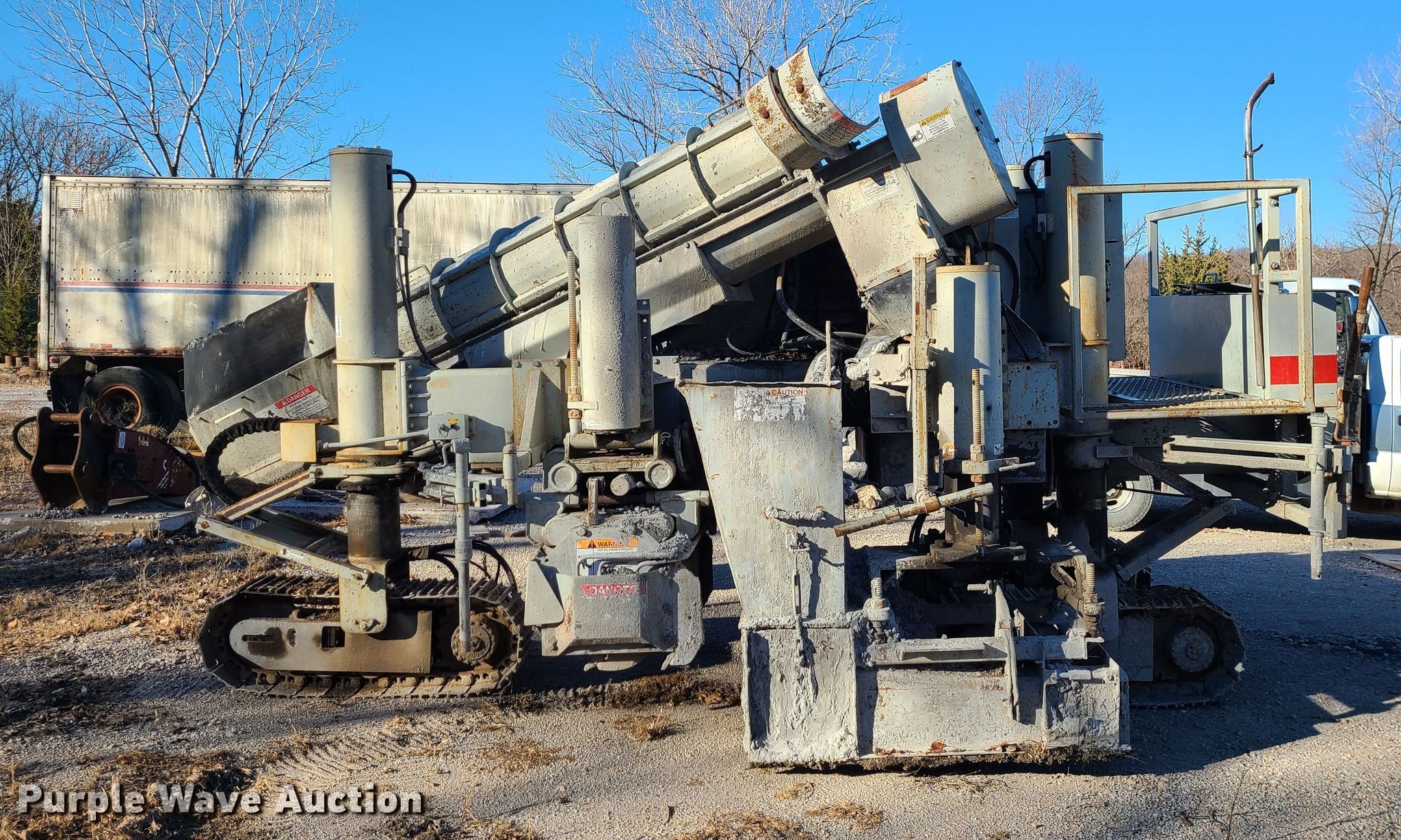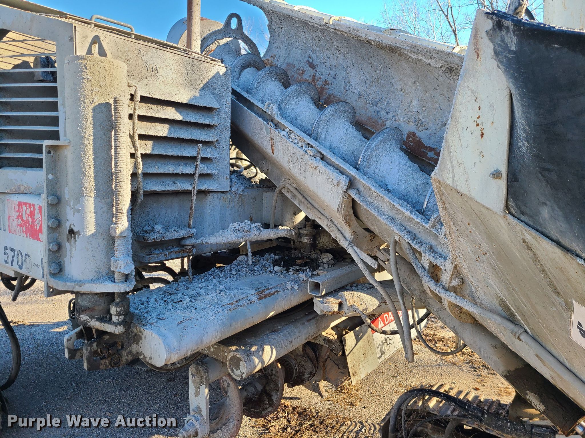 Power Curber 5700B curb machine. Serial: 57B6991054, Hours: 2,854 on meter. Engine Cylinders: 4, Fuel type: Diesel. Features Hydraulic height adjustment, Feed auger: 13", Trim auger: 16". Tracks Grousers: Triple, Width: 12", Steel. Rockridge Quarry. 9001 Hickman Mills Drive. Kansas City, MO 64132