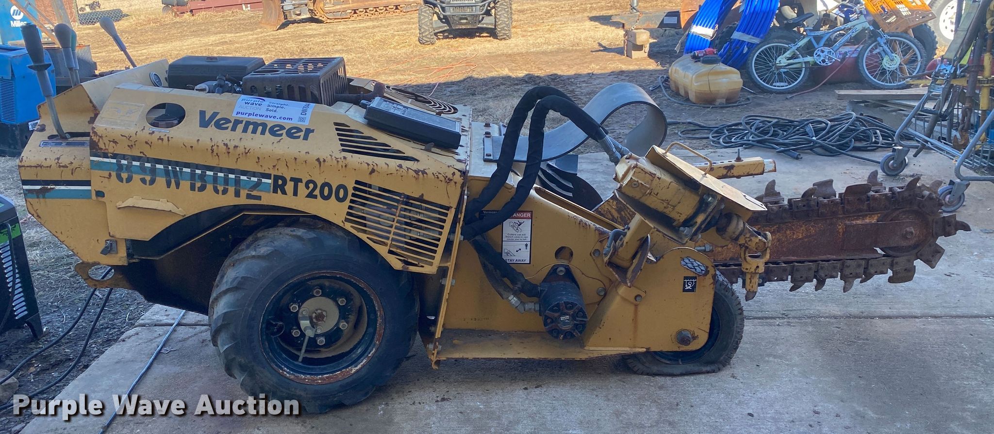 Purple Wave is selling a used Trencher or Rock Saw in Oklahoma. This item is a 2003 Vermeer RT200 trencher with the following: Hours: 148 on meter, Serial: 1VRX040K031000439