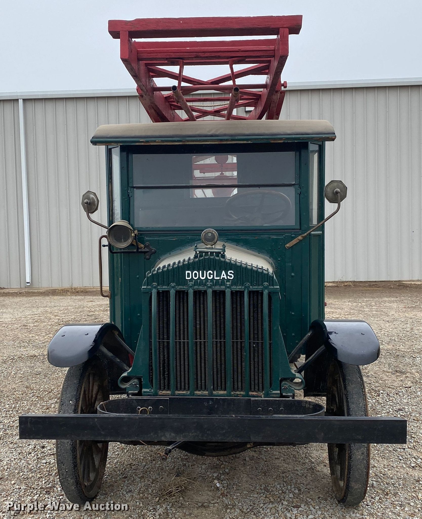 1917 Douglas WTU drilling rig truck. VIN: G106. Engine Buda, Cylinders: 4, Fuel type: Gas. Transmission Manual, Speed: 3. Chassis Axles: Single, Suspension: Spring. Features Bed/ drill Length: 12', Width: 68", Engine Drill bit stems Total length: 18', Diameter: 1.5".. Tires Front: 32" diameter, Rear: 29" diameter, Solid rubber. Notes Additional axles included. Oklahoma classic title. Title distribution may be delayed up to 14 days from verification of funds. Arkoma, OK 74901