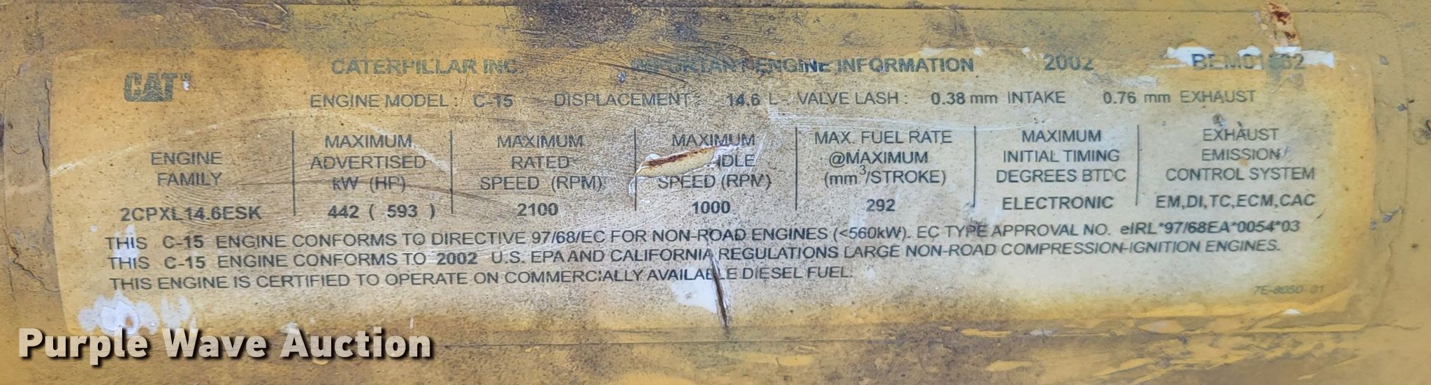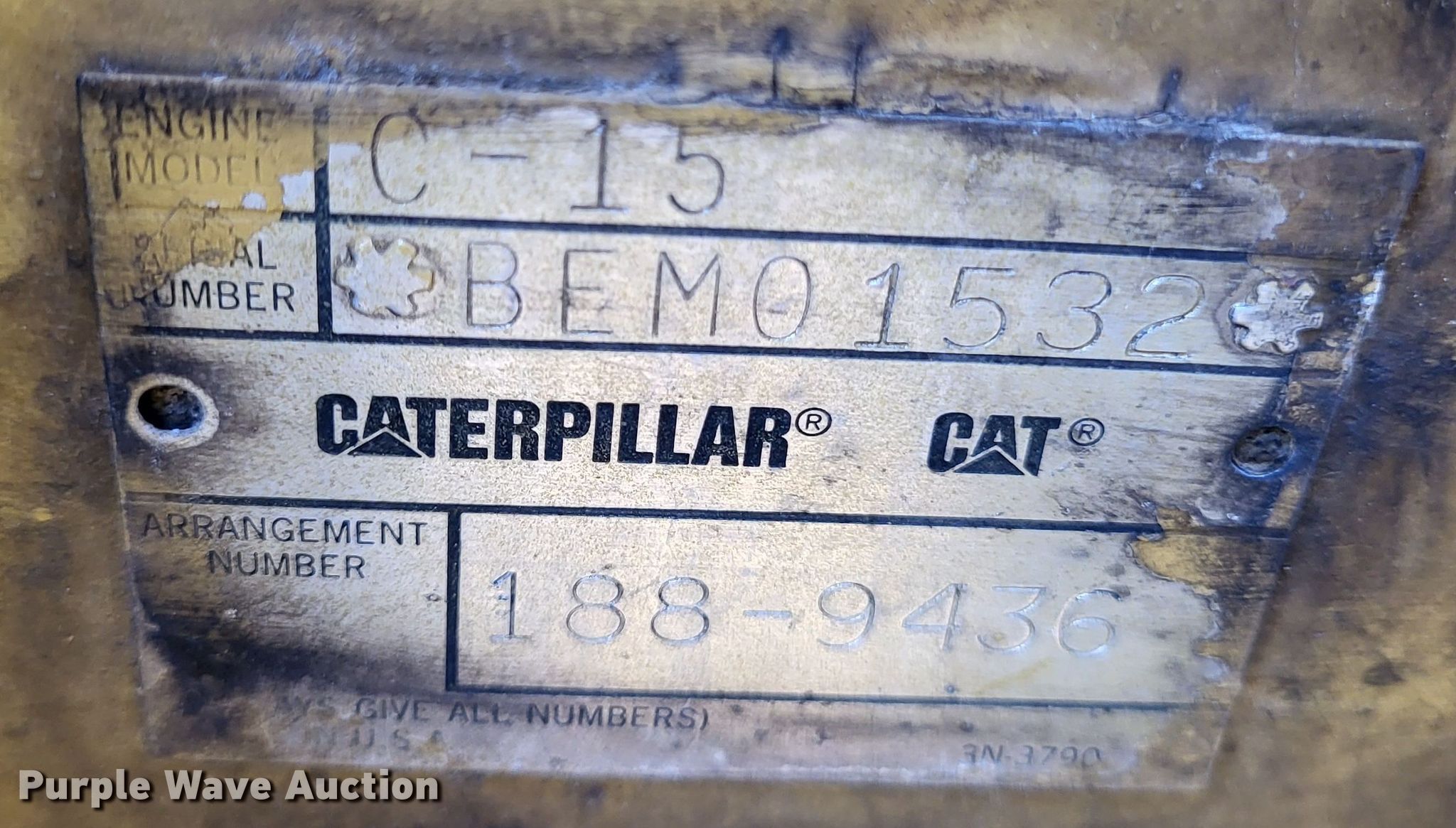 Vermeer HG525 horizontal grinder. Hours: 5,077 on meter. Engine Caterpillar C-15 , Cylinders: 6, Fuel type: Diesel , Serial: BEMO1532. Features Feed conveyor 56", Mulching roller 62", Discharge belt 31" W. Chassis Axles: Triple, Brakes: Air. Tires 215/75R17.5, Duals. Notes Additional concave screens included. Duncan's Service. 9204 Missouri 32. Ste. Genevieve, MO 63670