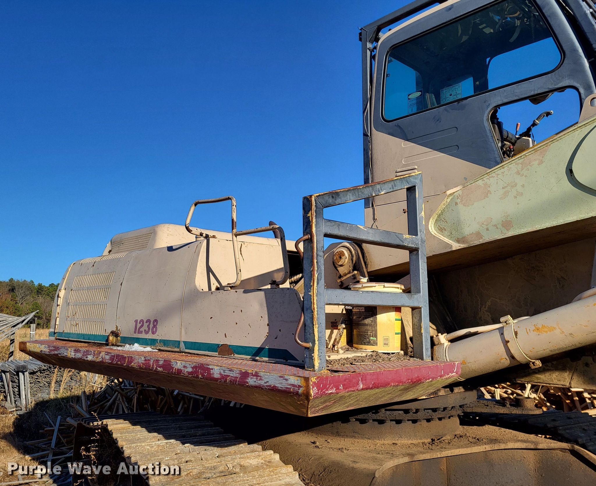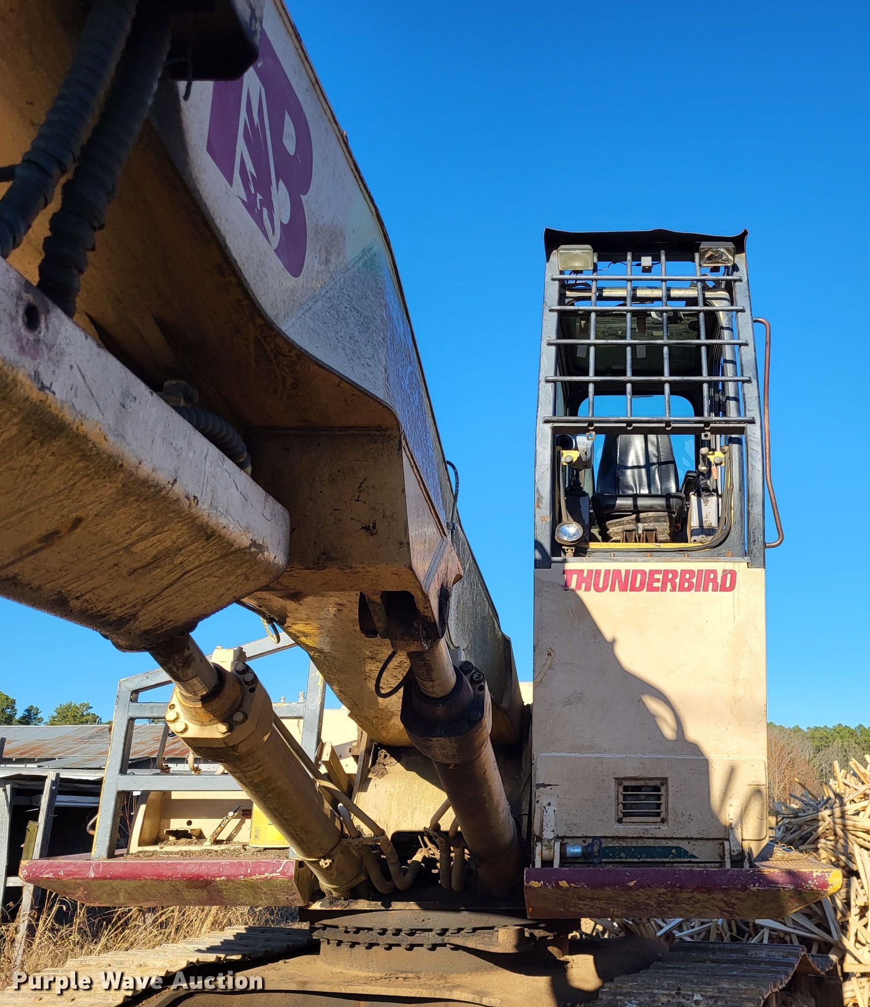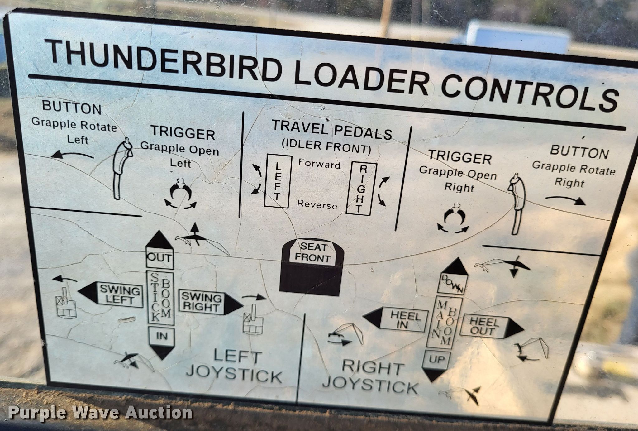 Thunderbird 1238L log loader. Hours: 1,354 on meter, Serial: E0321. Engine Cummins, Displacement: 8.3L, Cylinders: 6, Fuel type: Diesel. Operators station Enclosed cab, AC, Heat. Transmission Hydrostatic. Features Rotating grapple. Tracks Steel, Grouser pads: Double, Width: 28". Notes Glass cracked or missing. Ozark Transportation. 9402 Highway 32. Ste. Genevieve, MO 63670