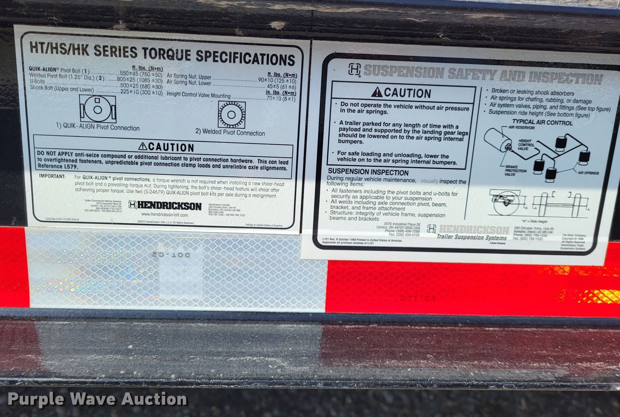 2021 Trail King TK60LP equipment trailer. VIN: 1TKC03736MR125805. Dimensions Deck: 25' L x 8' 6" W, Deck height: 35", Tail length: 5', Ramps: Pneumatic Length: 6' 2". Features Deck type: Wood. Chassis Hitch: Pintle, Landing gear: Dual, Two speed, Suspension: Spring, Brakes: Air, Axles: Triple, GVWR: 72,280 lbs, GAWR: 20,000 lbs. Tires Steel wheels, Size: 235/75R17.5. Notes Contents not included. Missouri title. Title distribution may be delayed up to 14 days from verification of funds. Little River Drainage District. 1312 County Rd 242. Chaffee, MO 63740