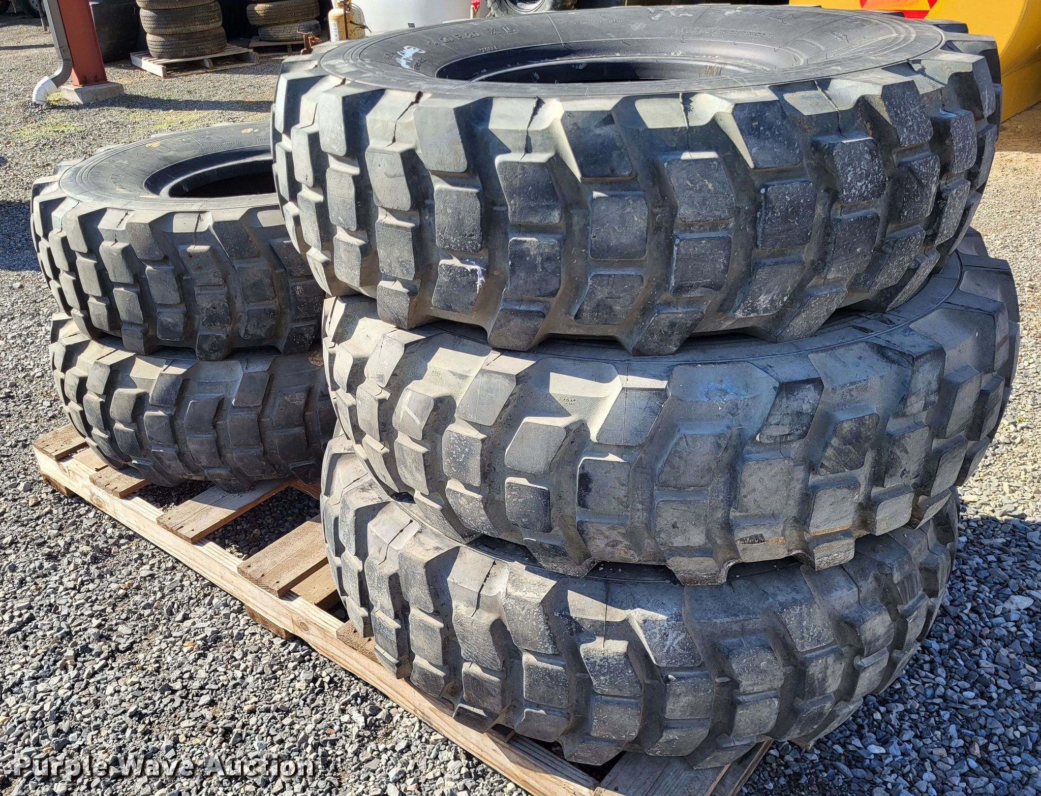 Purple Wave is selling a used Fleet Tires in Missouri. This item is a (11) tires and wheels with the following: (5) 14.00R20, (10) 11.00-20, (2) mounted on wheels, 11.00R20 mounted on wheel