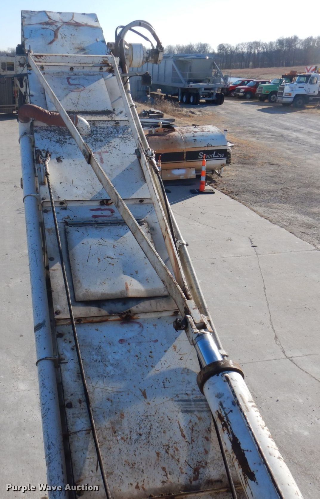 1999 Roadtec SB2500B shuttle buggy material transfer vehicle. Hours: 5,107 on meter, Serial: 493. Engine Cylinders: 6, Fuel type: Diesel. Transmission Hydrostatic, 2F - 2R. Features Material conveyor Width: 32", Feed hopper: 9' 4" L, Discharge conveyor: Approx. 23' L, Mixing hopper: Approx. 9' 8" L. Tires Size: 21.00-25. Emery Sapp & Sons, Inc. 6739 Co Rd 423. Palmyra, MO 63461