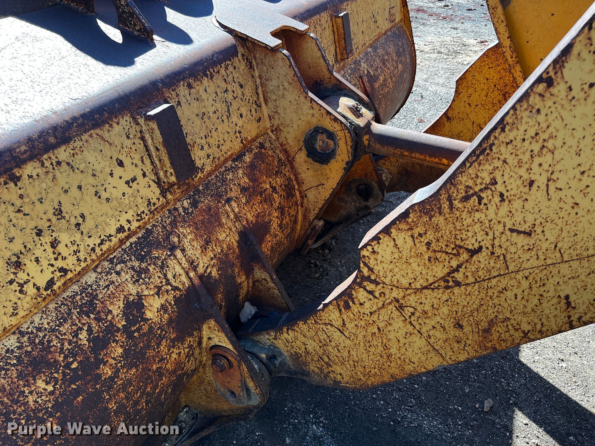 1981 Caterpillar 950B wheel loader. Hours: 10,003 on meter, Serial: 22Z00529. Engine Caterpillar, Cylinders: 4, Fuel type: Diesel. Transmission Powershift, 4F - 4R. Operators station Bucket controls: Two-lever. Features Counter weights, Bucket Width: 114", Cutting edge: Bolt-on, Forks Length: 48". Tires Size: 20.5-25. Haegelin Construction. 15311 Burnet Rd. Austin, TX 78727