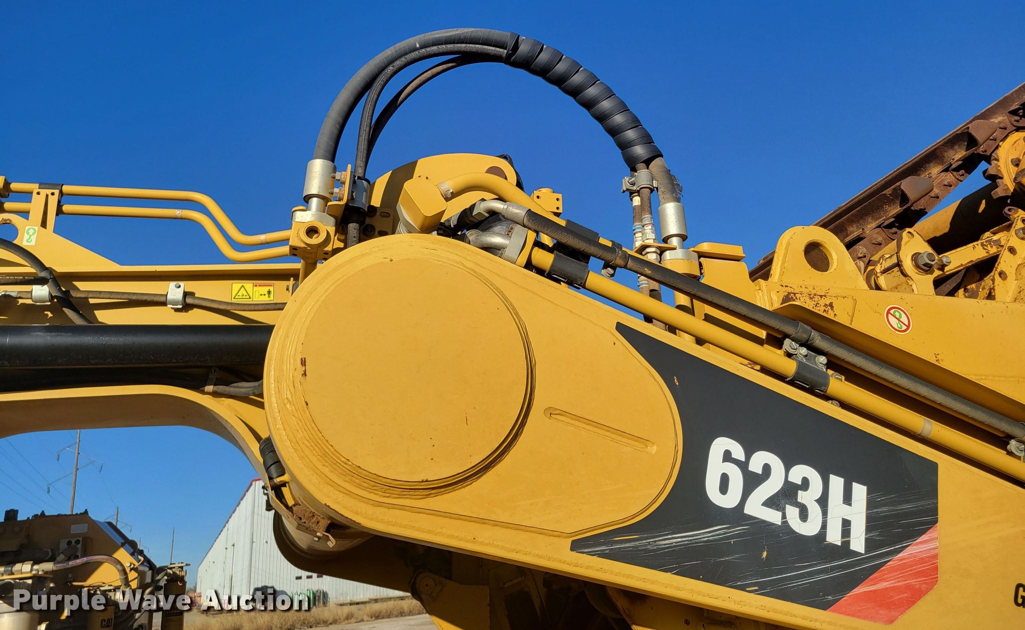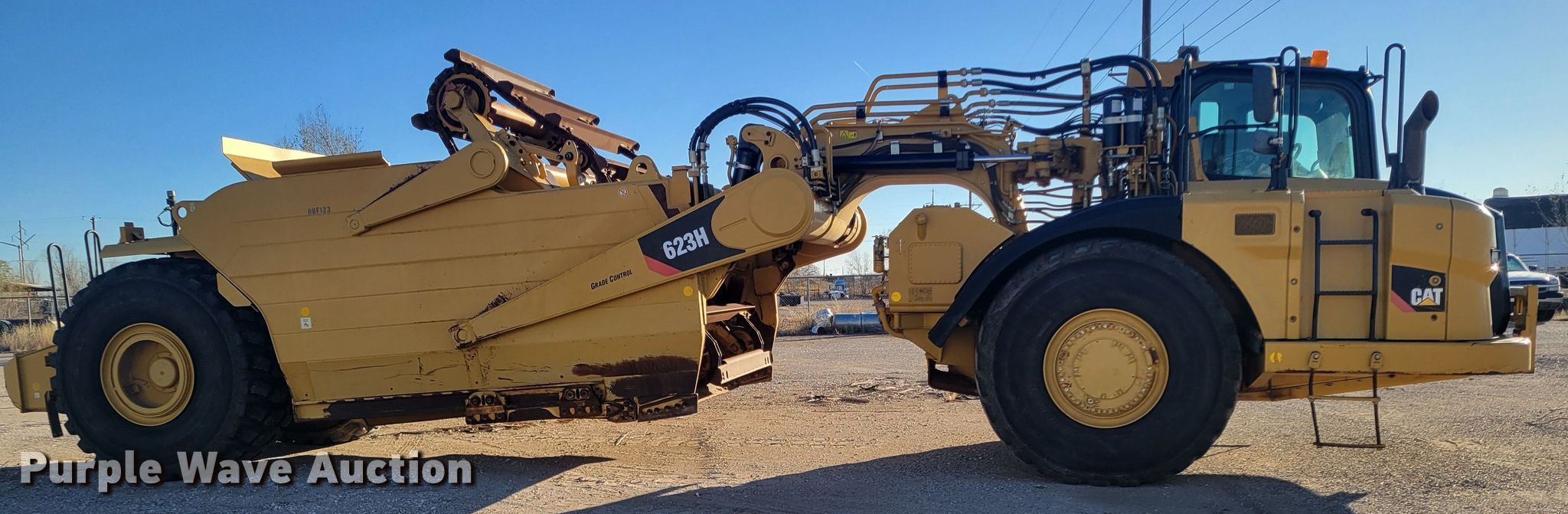 Purple Wave is selling a used Elevating Scraper in Texas. This item is a 2013 Caterpillar 623H elevating scraper with the following: Hours: 6,513 on meter, Serial: CAT0623HCDBF00123