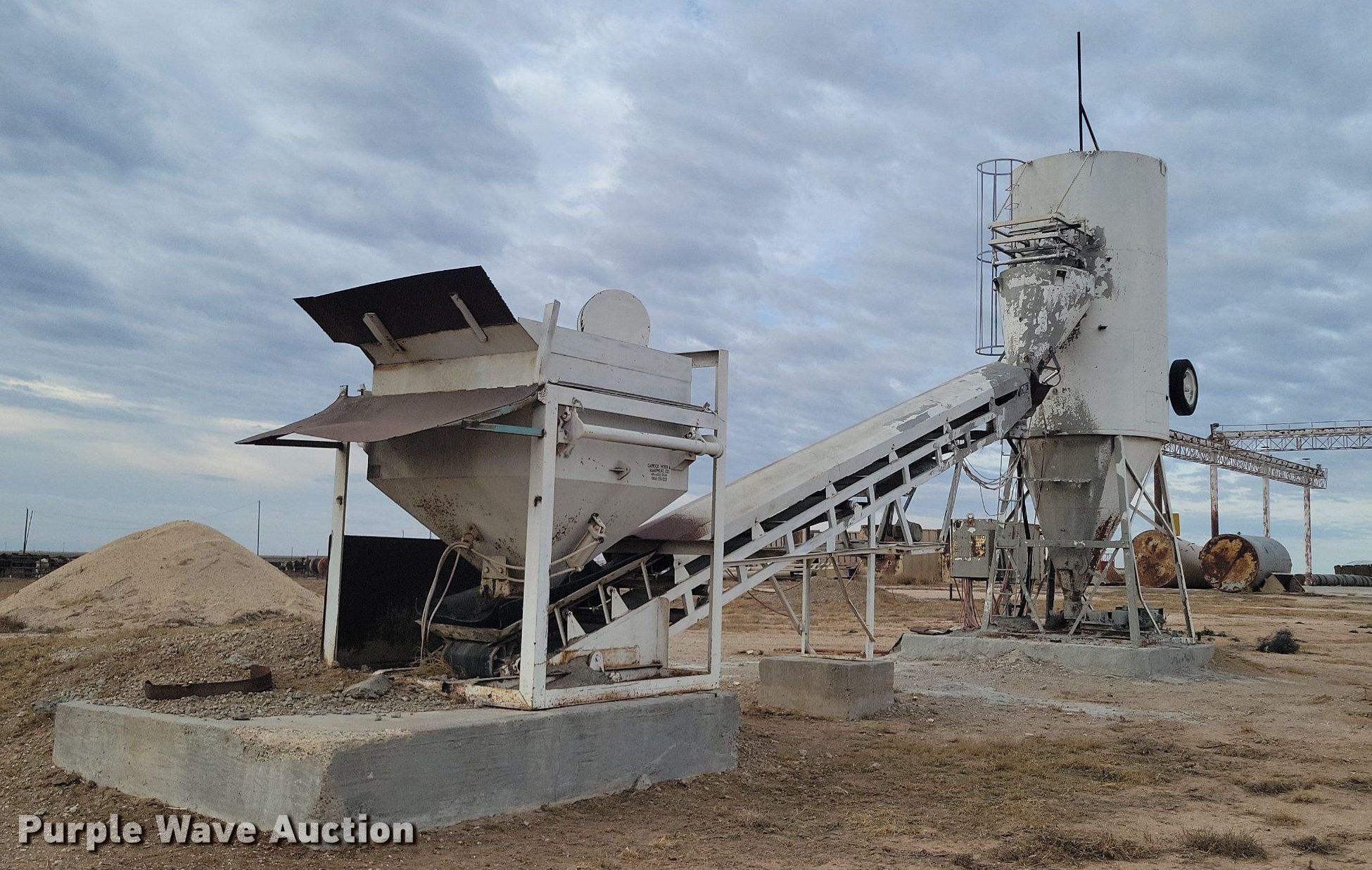 Purple Wave is selling a used Concrete Plant in Texas. This item is a Caprock Mixer & Equipment concrete batch plant with the following: 6' x 6' hopper, 34' L conveyor, 21.5"W belt, 23' 7" L x 92" W bulk tank
