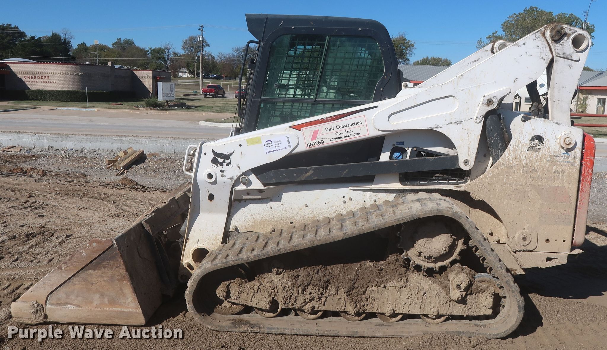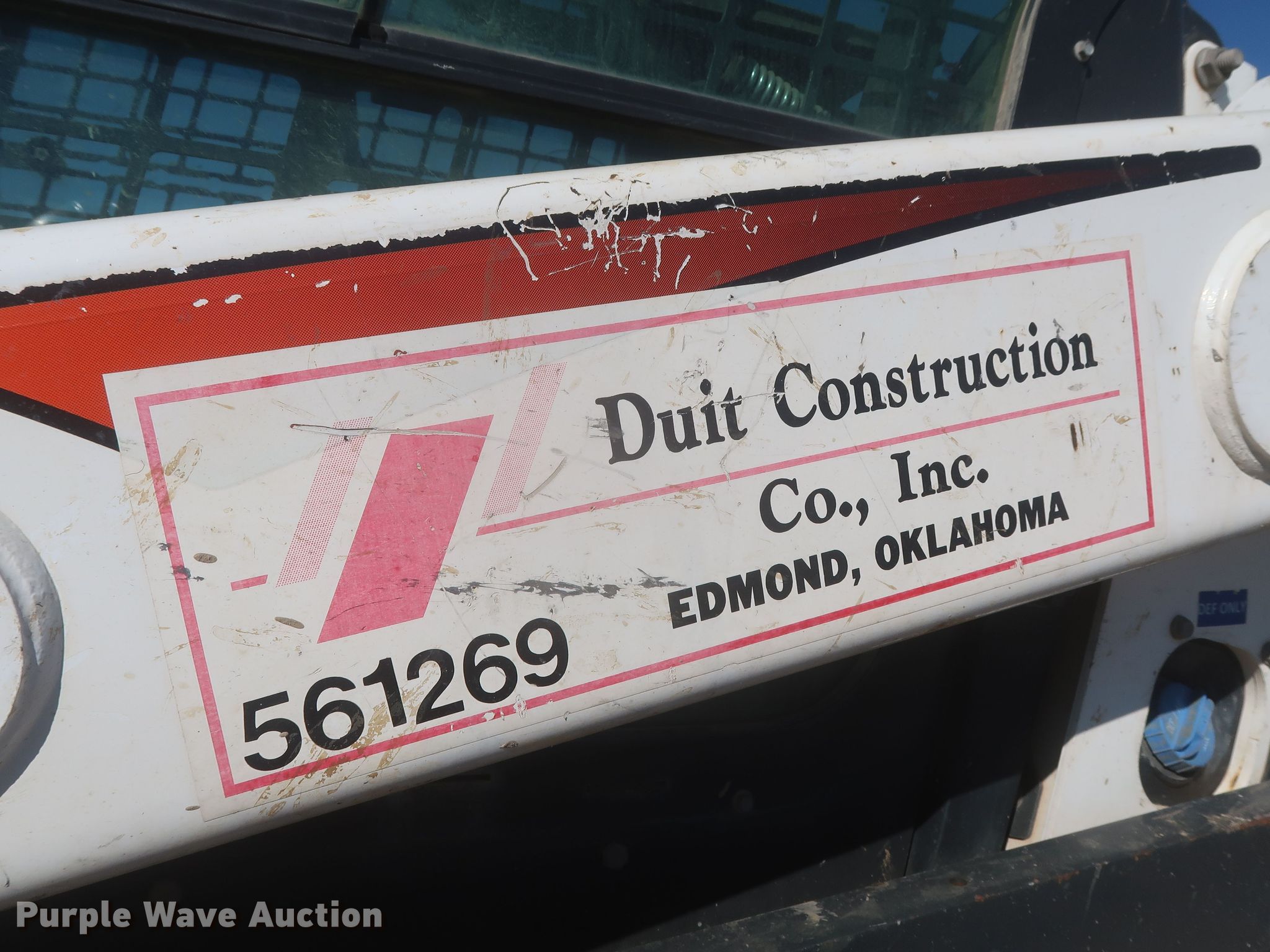 2018 Bobcat T870 tracked skid steer loader. Hours: 3,969 on meter, Miles or hours may vary, unit still in use, Serial: B47C12395, Unit #: 561.269. Engine Doosan D34P, Displacement: 3.4L, Cylinders: 4, Fuel type: Diesel, HP: 100. Transmission Hydrostatic, Two speed travel. Operators station EROPS, AC, Heat, Bucket control: Hand, Electronic Monitoring System panel. Features Auxiliary hydraulics, Auxiliary electrical outlet, Quick coupler: Hydraulic, Bucket Width: 84", Cutting edge: Bolt-on. Tracks Width: 17.7". Duit Holdings, Inc.. Durant, OK 74730