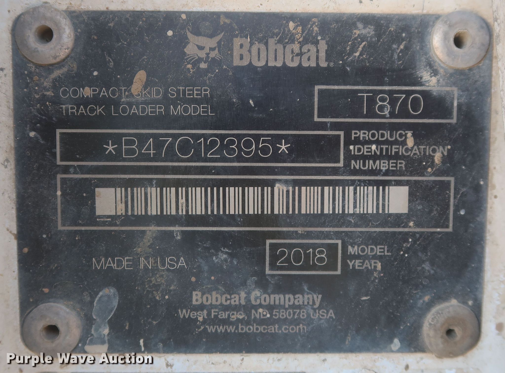 Purple Wave is selling a used Tracked Skid Steer Loader in Oklahoma. This item is a 2018 Bobcat T870 tracked skid steer loader with the following: Hours: 3,969 on meter, Miles or hours may vary, unit still in use, Serial: B47C12395, Unit #: 561.269