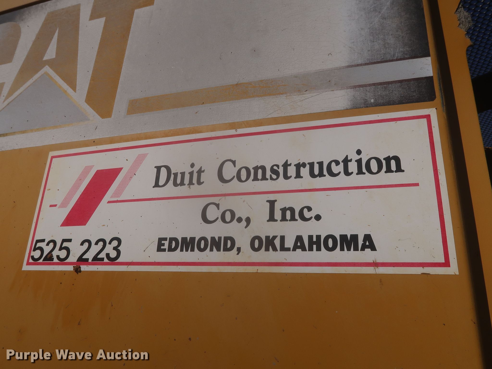 2003 Caterpillar 938G Series II wheel loader. Hours: 15,495 on meter, Miles or hours may vary, unit still in use, Serial: CAT0938GTCRD00503, Unit #: 525.223. Engine Caterpillar 3126, Displacement: 7.2L, Cylinders: 6, Fuel type: Diesel, HP: 180. Transmission Powershift, 4F - 3R. Operators station Enclosed cab, AC, Heat, Bucket controls: Two-lever. Features Bucket Caterpillar, Width: 108", Cutting edge: Bolt-on. Tires Front: 20.5R25. Notes Glass cracked. Duit Holdings, Inc.. Durant, OK 74730