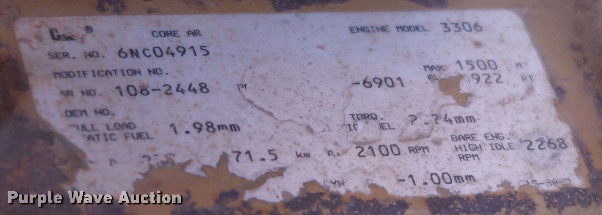 1998 Caterpillar D7R dozer. Hours: 14,629 on meter, Serial: 2EN00632, Unit #: 251.296. Engine Cylinders: 6, Fuel type: Diesel. Transmission Powershift, 3F - 3R. Operators station Heat, Steering: Differential. Features Dozer blade Type: Semi-U, Single-tilt, Width: 137" W, Attachments Ripper Vail, Shanks: 1.. Tracks Width: 24", Grouser pads: Single, Bottom rollers: 7. Duit Holdings, Inc. - Open Inspection Dec. 28. 7183 E Waterloo Industrial Road. Edmond, OK 73034